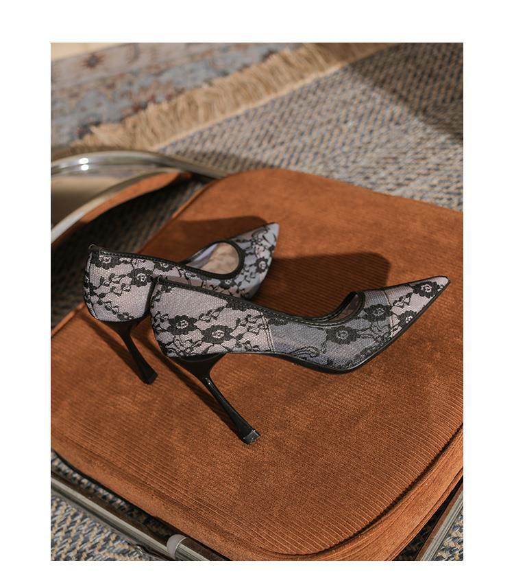 HH-356975072914 Women's Breathable Lace Mesh Stiletto High Heeled Shoes