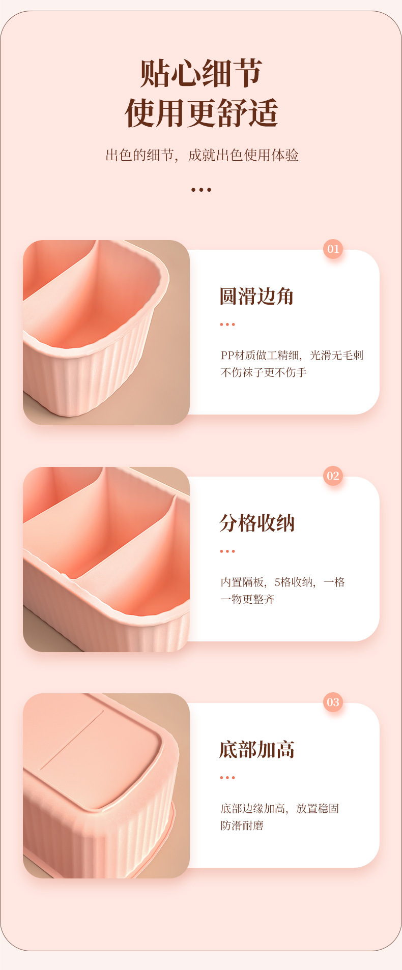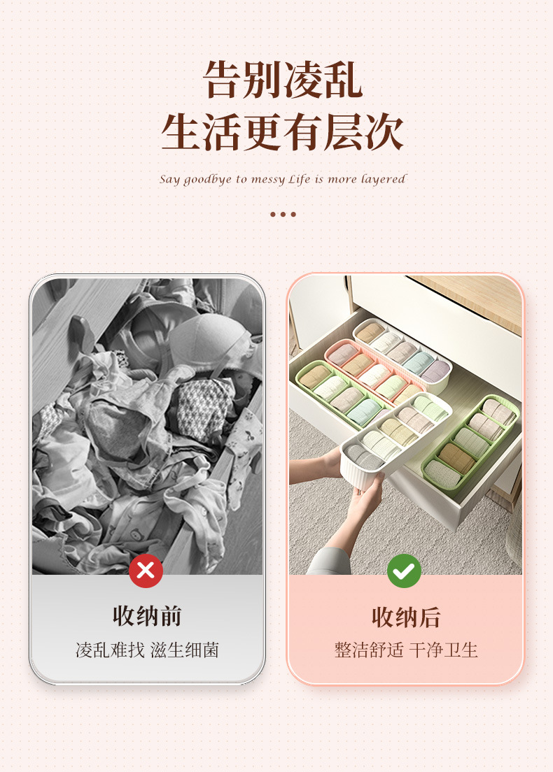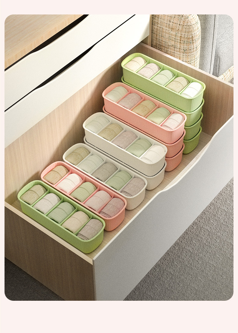 3353 5 Grids Underwear Storage Box Plastic Closet Organizers For Ties Socks Panties Drawer Divider Jewelry Desktop Organizer Boxes