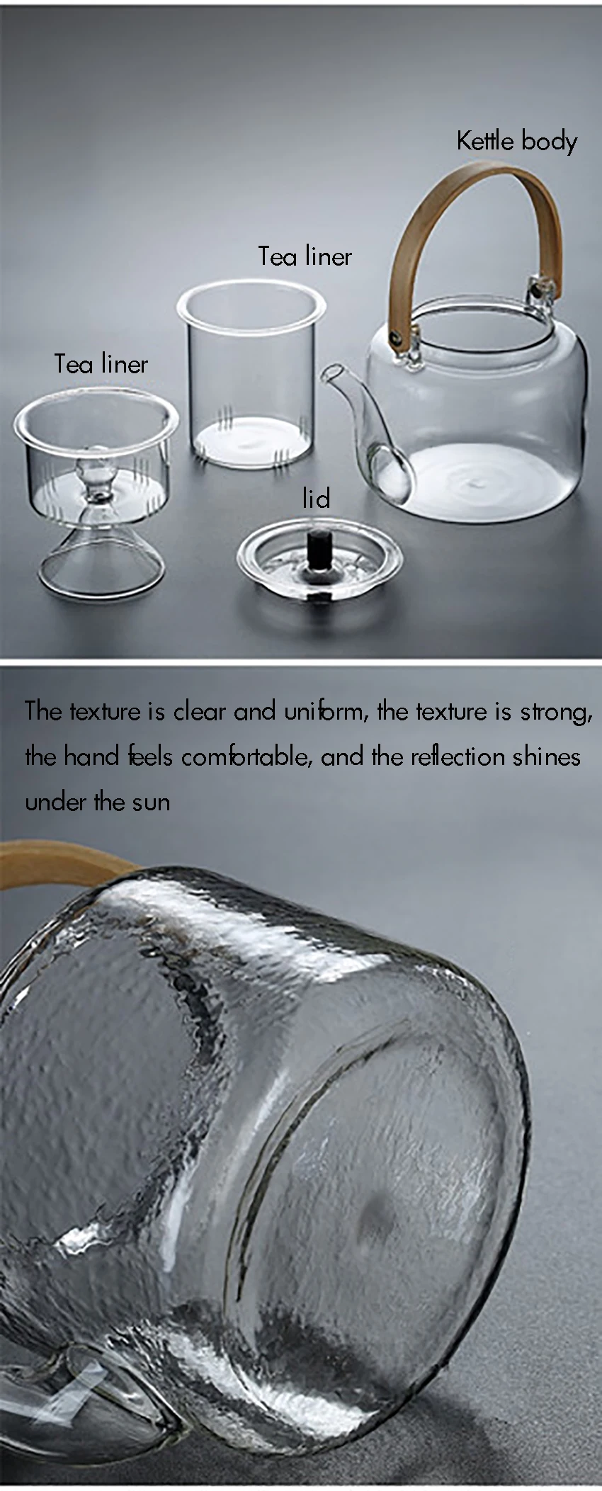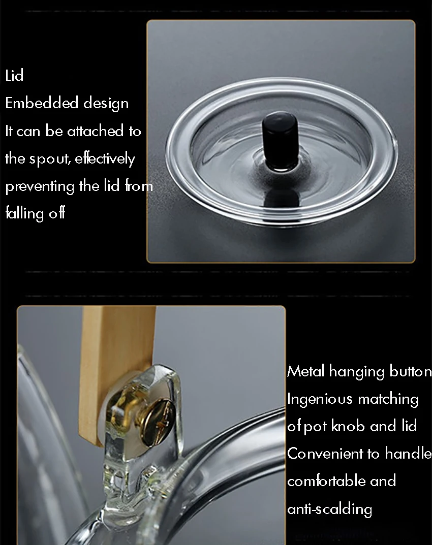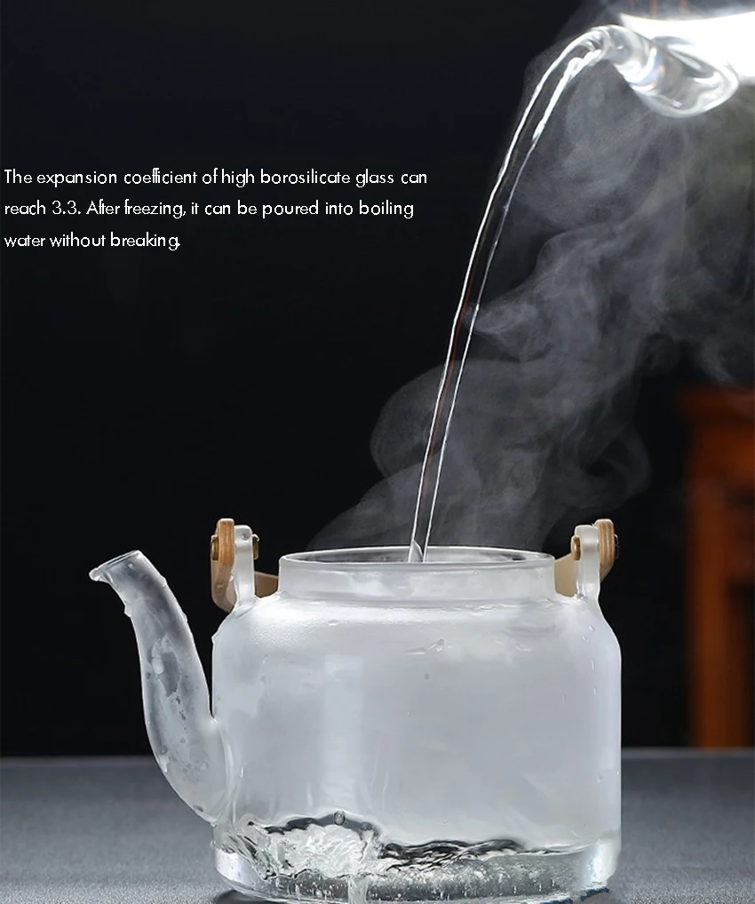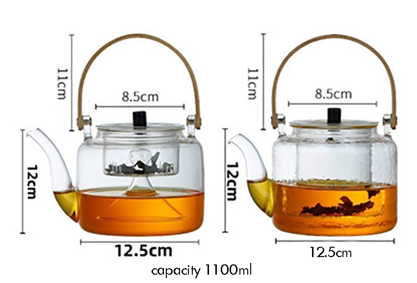1000ml Glass Teapot, Stove Top Safe, Borosilicate Glass Kettle with Removable Infuser, Heat Resistant Wood Handle for Blooming Flower Tea