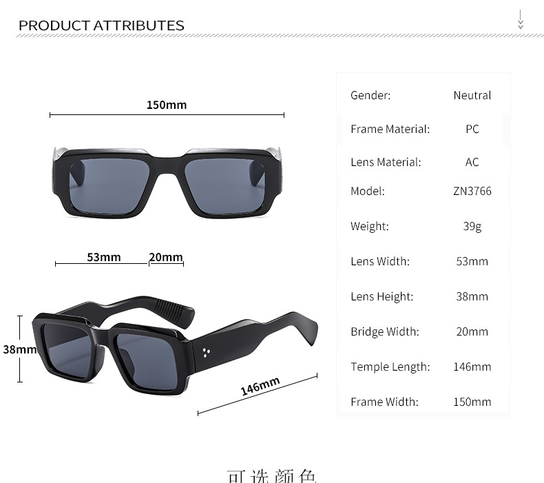 3766 Retro Small Square Sunglasses Women Designer Thick Frames Sunglasses for Ladies
