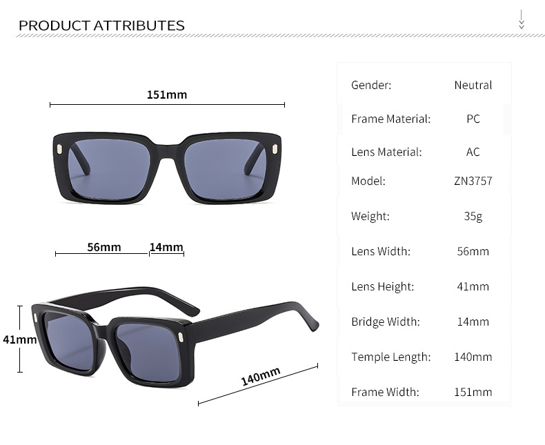 3757 Women Black Square Shades Ins Ladies Fashion Eye-wear Stylish Sunglasses Unisex