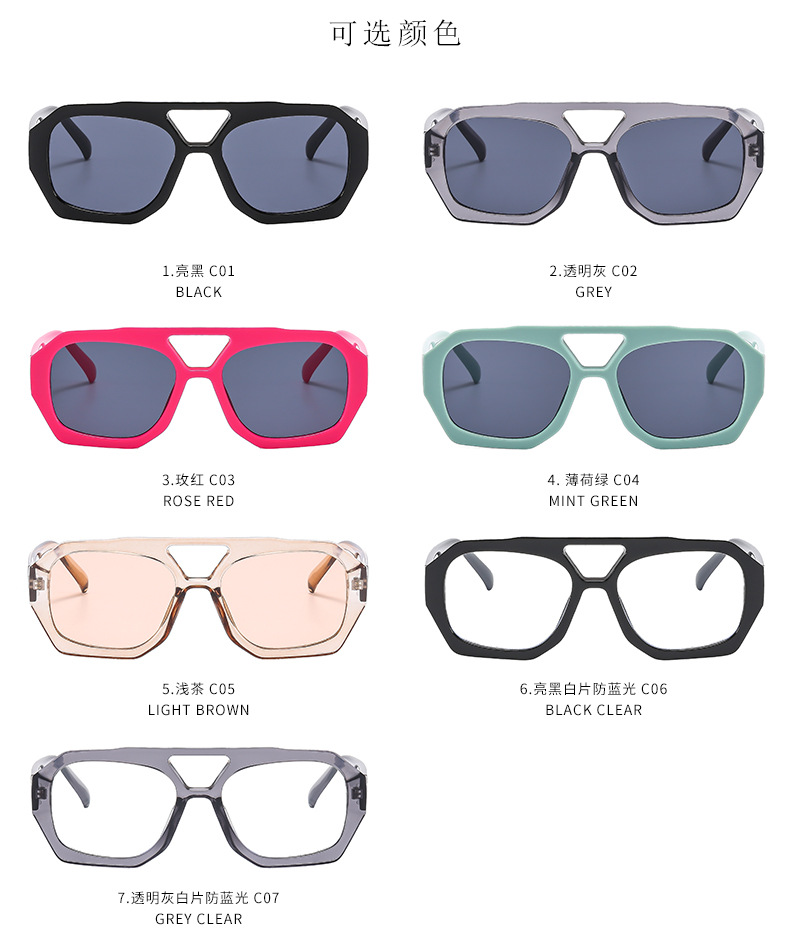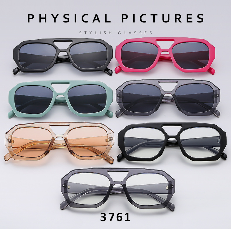 3761 Classic Retro Fashion Sun Glasses Double Bridge Women Candy Jelly Rectangle Sunglasses