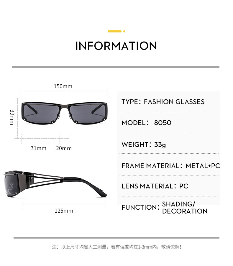 8050 Trendy Hollow Out Y2K Futuristic Sunglasses Fashion Cut Edge Rimless Hip Hop Sun Glasses for Men Women