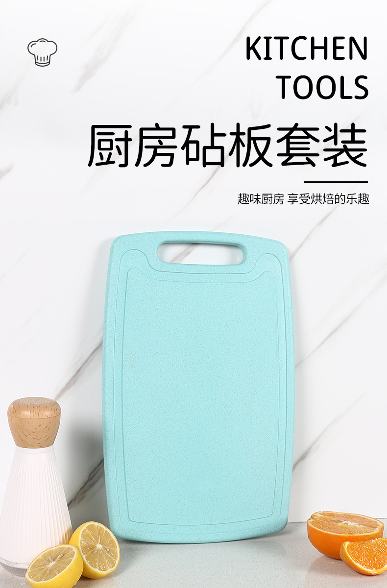 Name: Kitchen Stand Set Size: 33.5*21.4*1.5cm Weight: 566.2g Color: Blue Material: wheat straw + TPE + 3CR14 Usage: Suitable for cutting vegetables and meat, etc