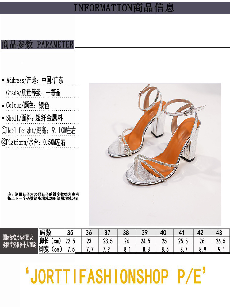 Y5390-28 Peep-Toe Women's Chunky Summer New Square Head Rhinestone Heels Mature Sexy Women High Heels Sandals