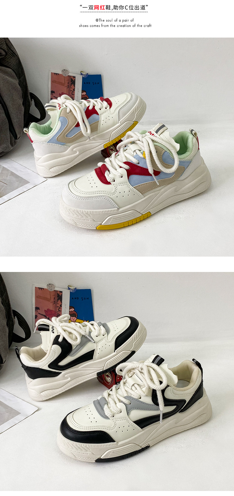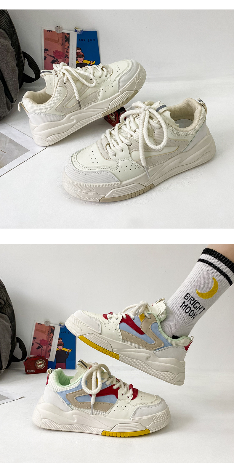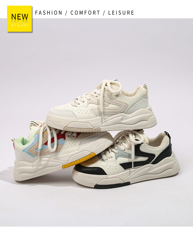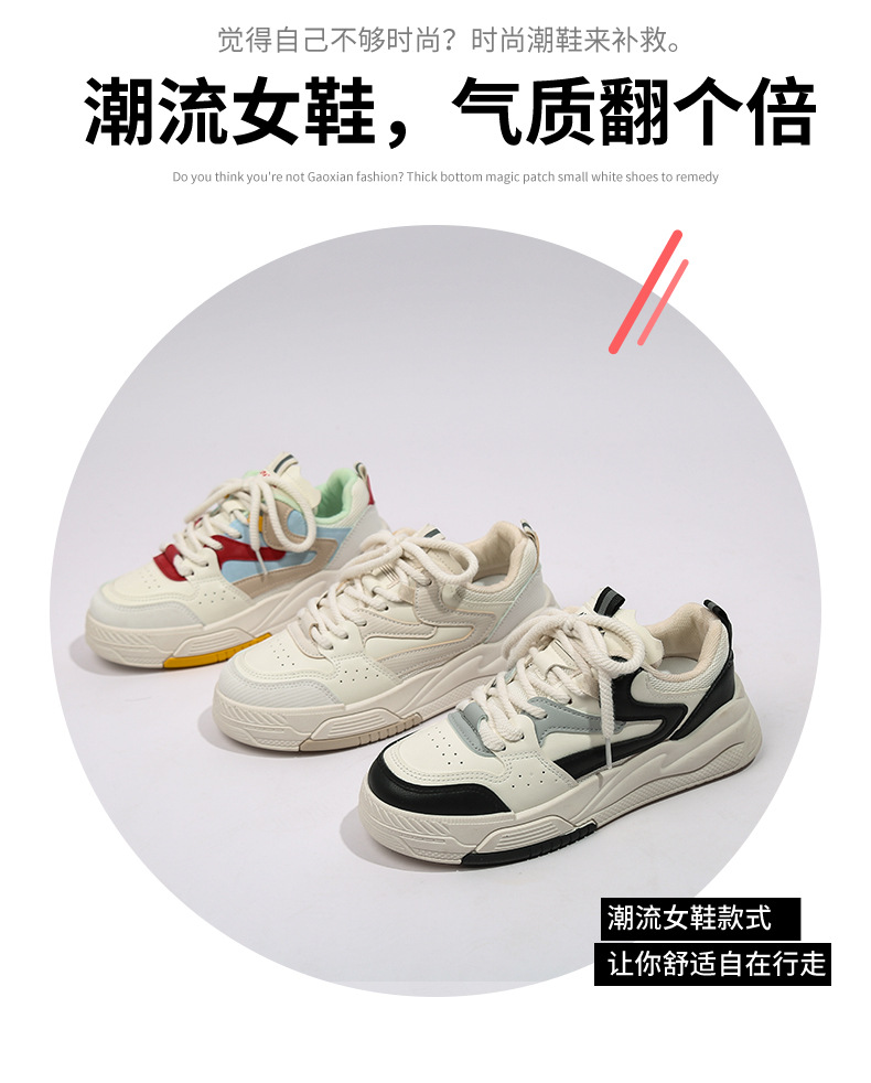 W-1 Thick Sole Small White Shoes For Women New Model Flat Bottomed Breathable Board Shoes Casual Sports Dad Shoes