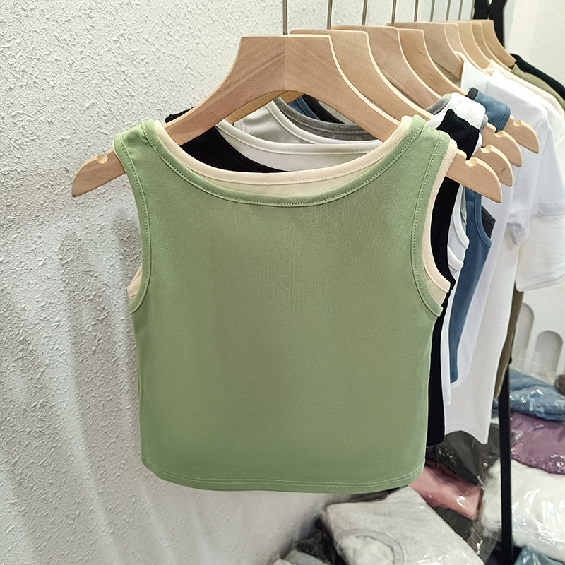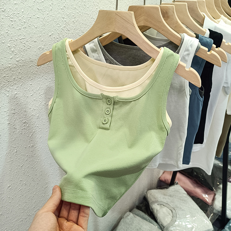 YF7796 Button Women Tank Top Rib Fabric Women Crop Top Spandex Cotton Women Top