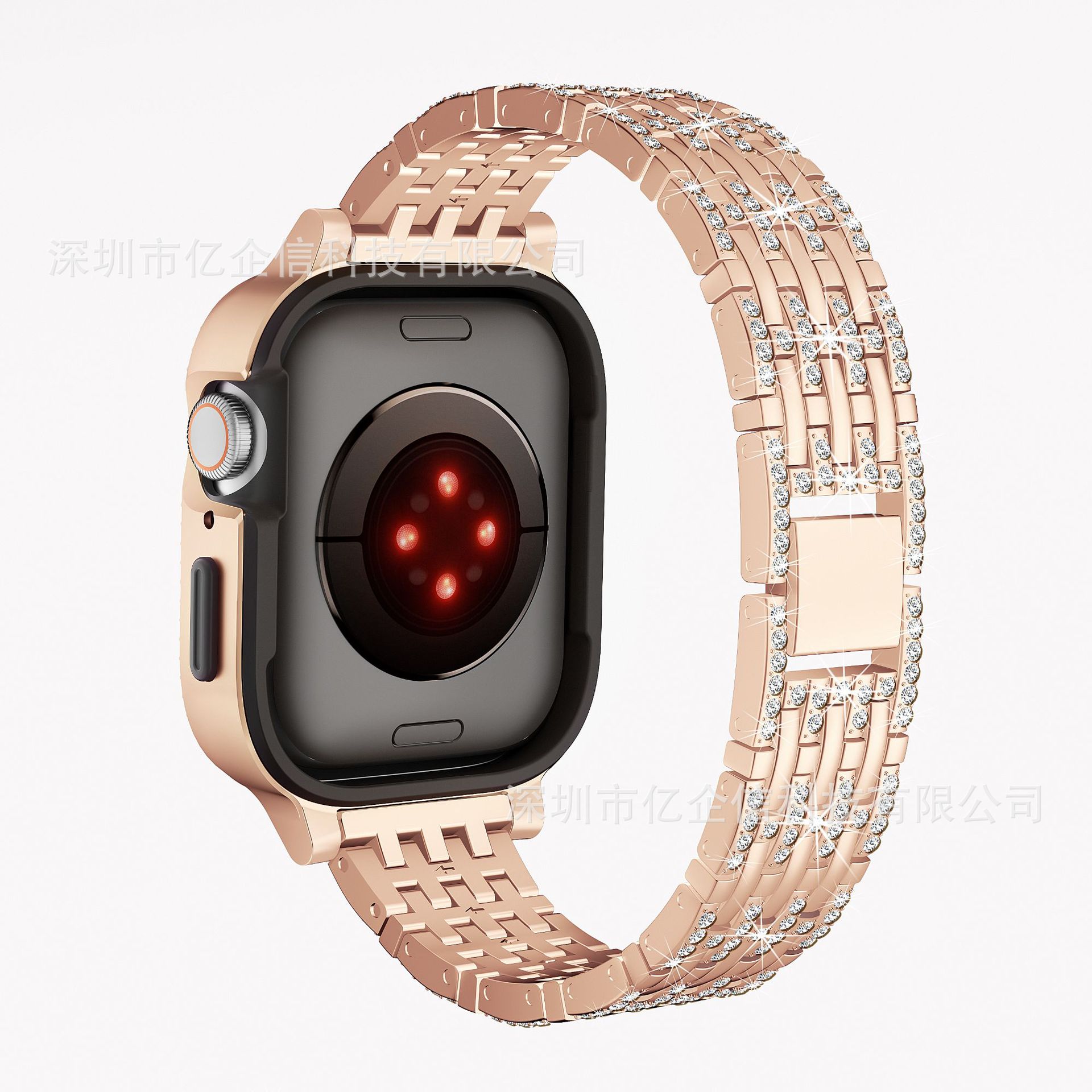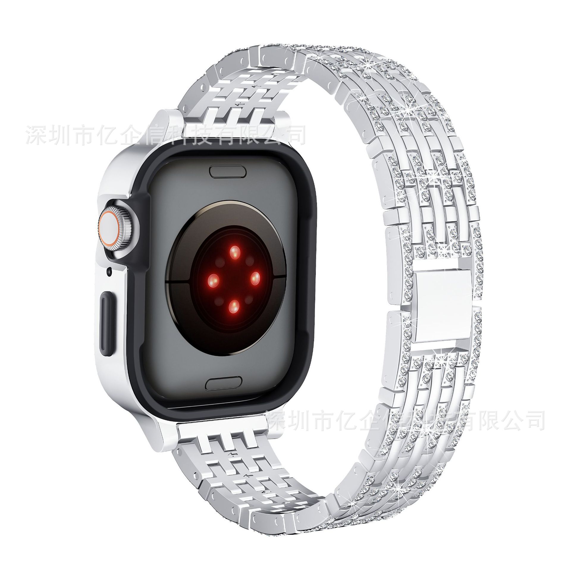 Suitable for Apple Watch with Diamond Fashion Metal Integrated Double Row Full Diamond Stainless Steel Apple iwatch Strap