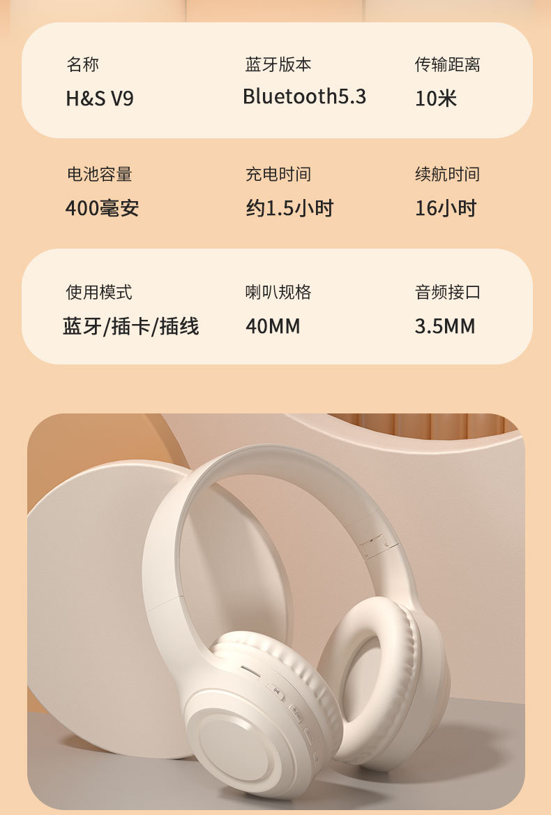 Cross-border new headset V9 game sports wireless Bluetooth headset universal for all mobile phones in stock wholesale