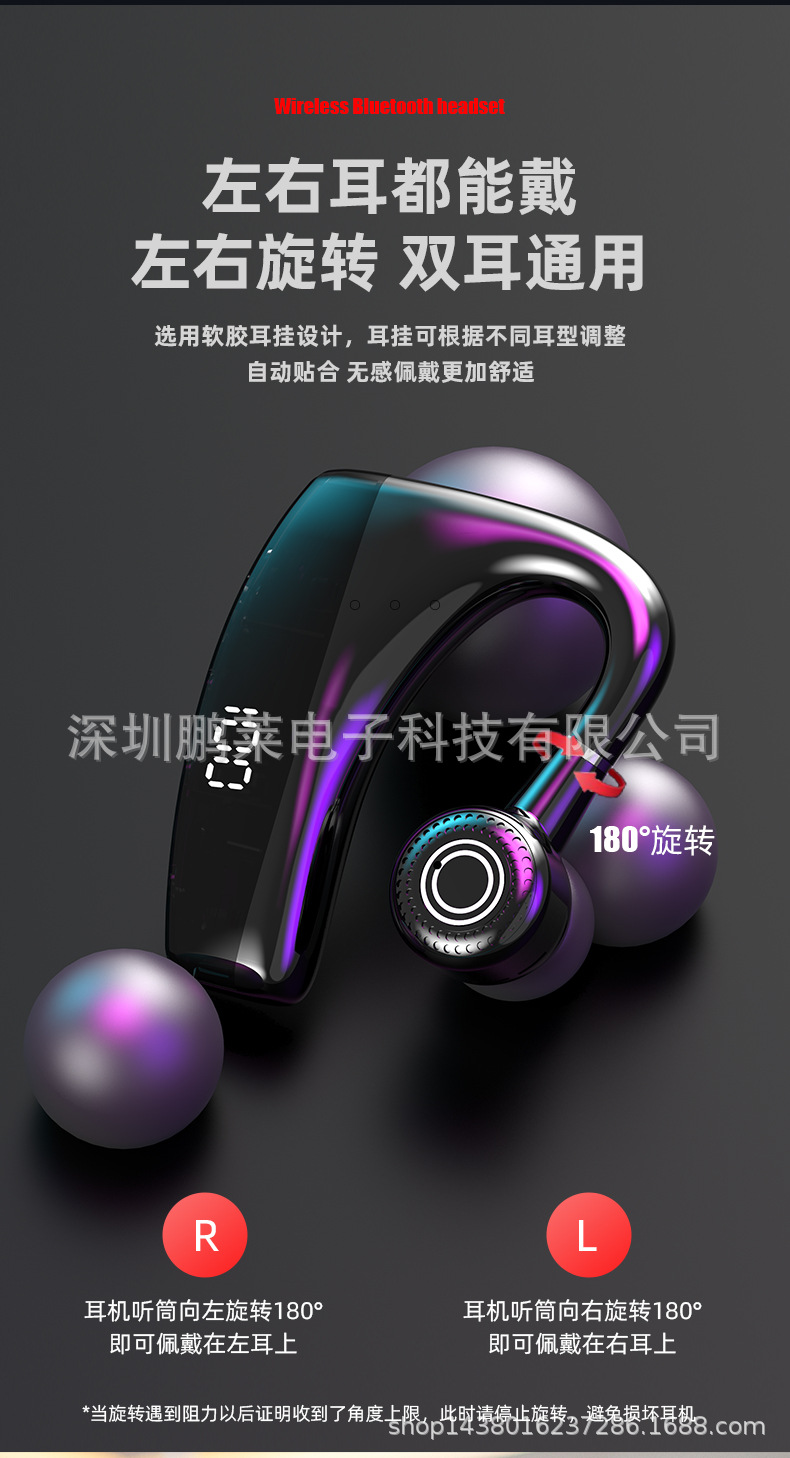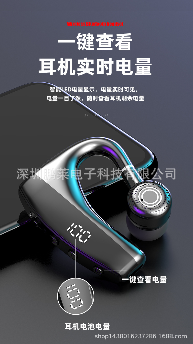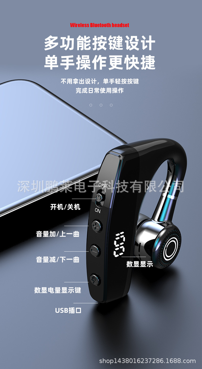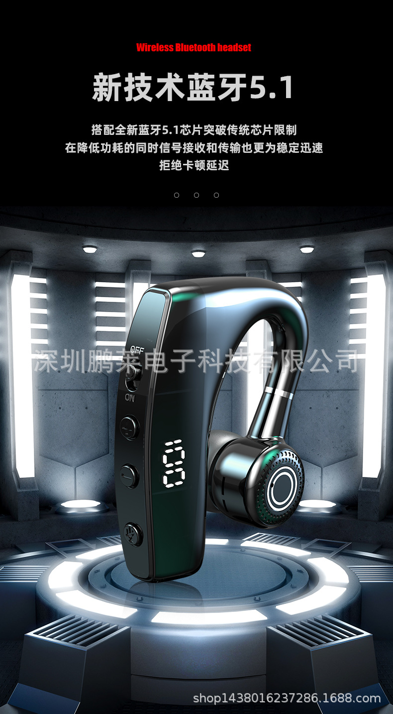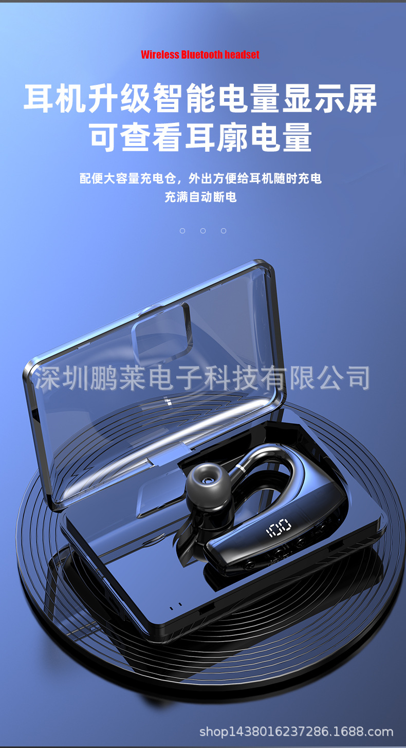 Cross-border private business Bluetooth headset wireless unilateral in-ear black technology Digital Display car Sports Headset