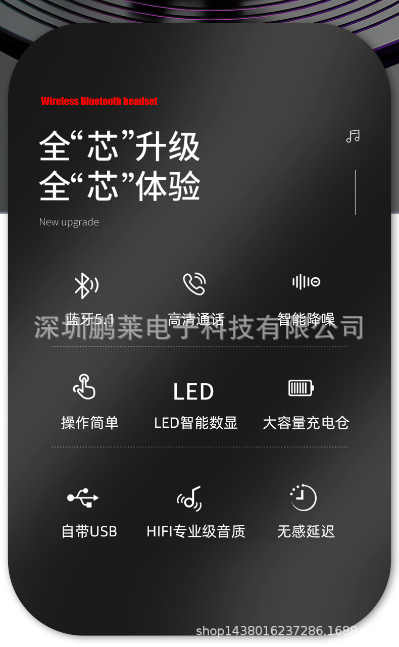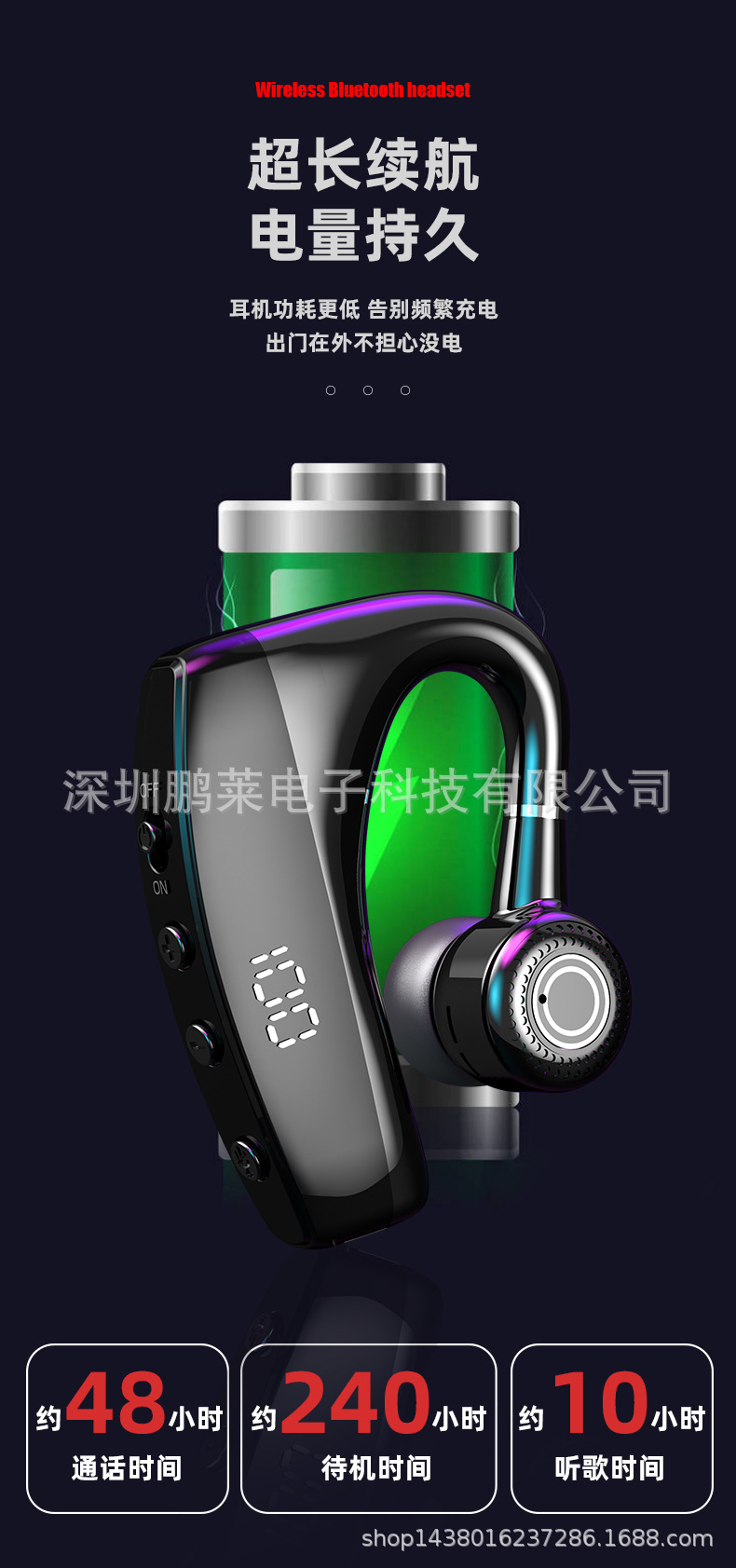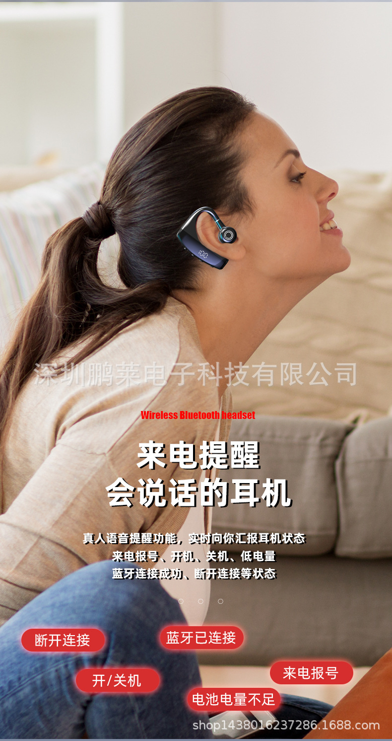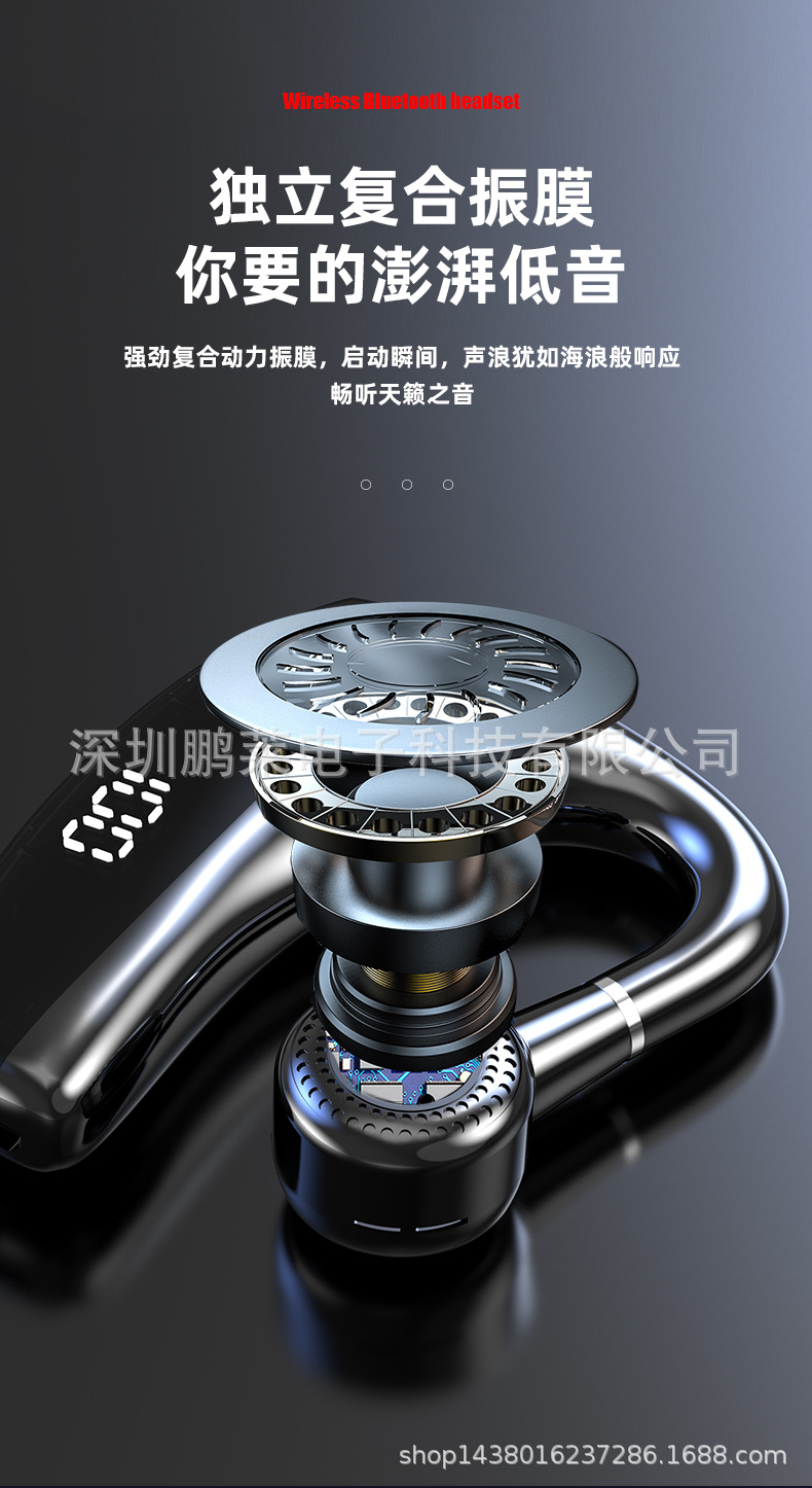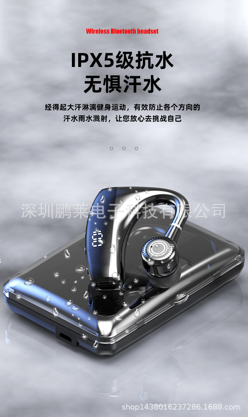 Cross-border private business Bluetooth headset wireless unilateral in-ear black technology Digital Display car Sports Headset