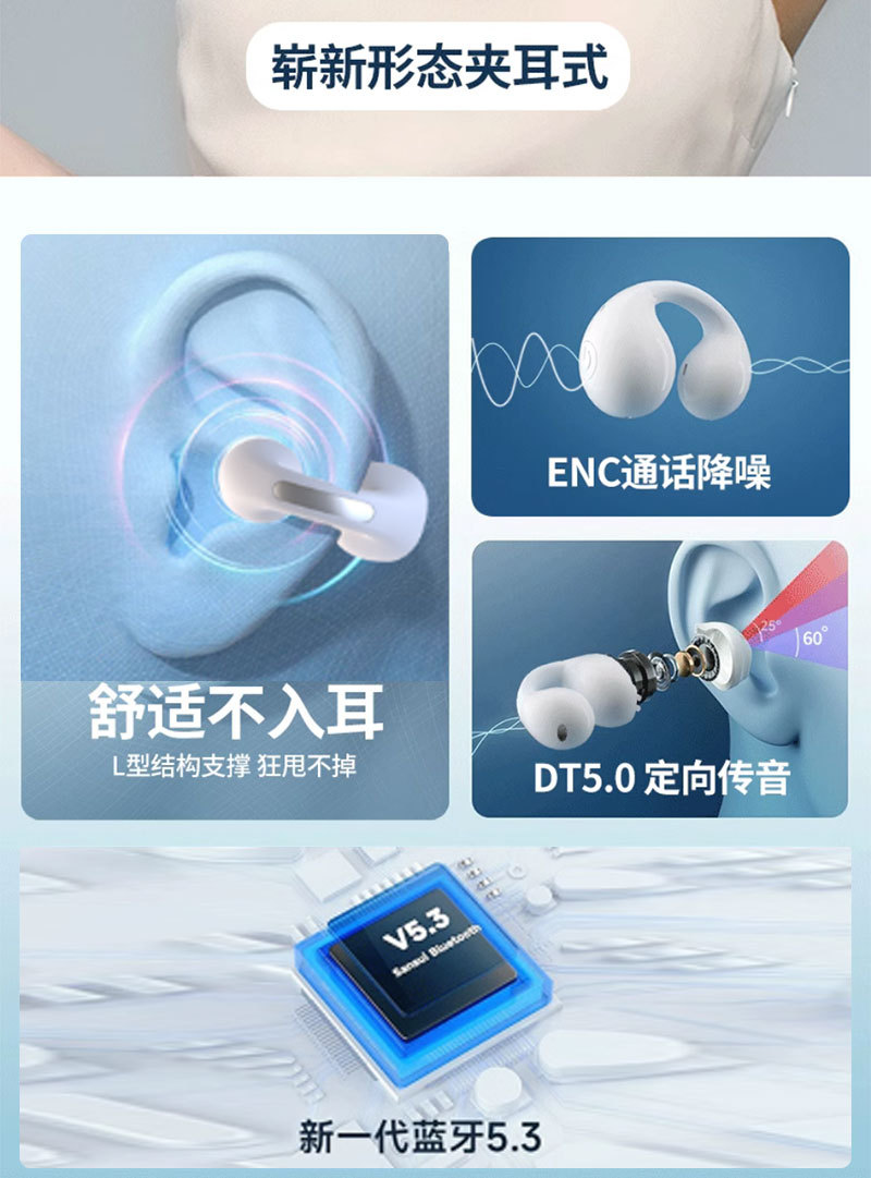 Cross-border new wireless Bluetooth headset double ear clip ear non-ear bone conduction hanging ear long endurance gift