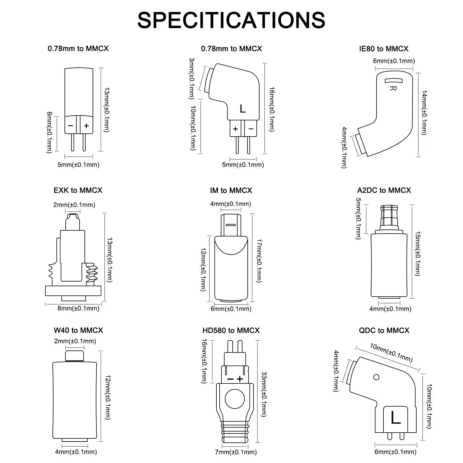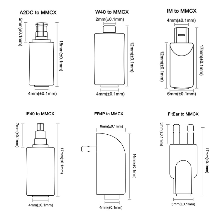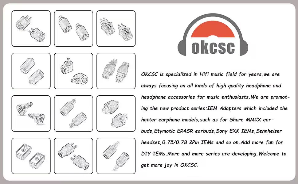 okcsc A2DC/IM/W40/ER4P/IE40 revolution MMCX headphone cord pin adapter male Turnkey