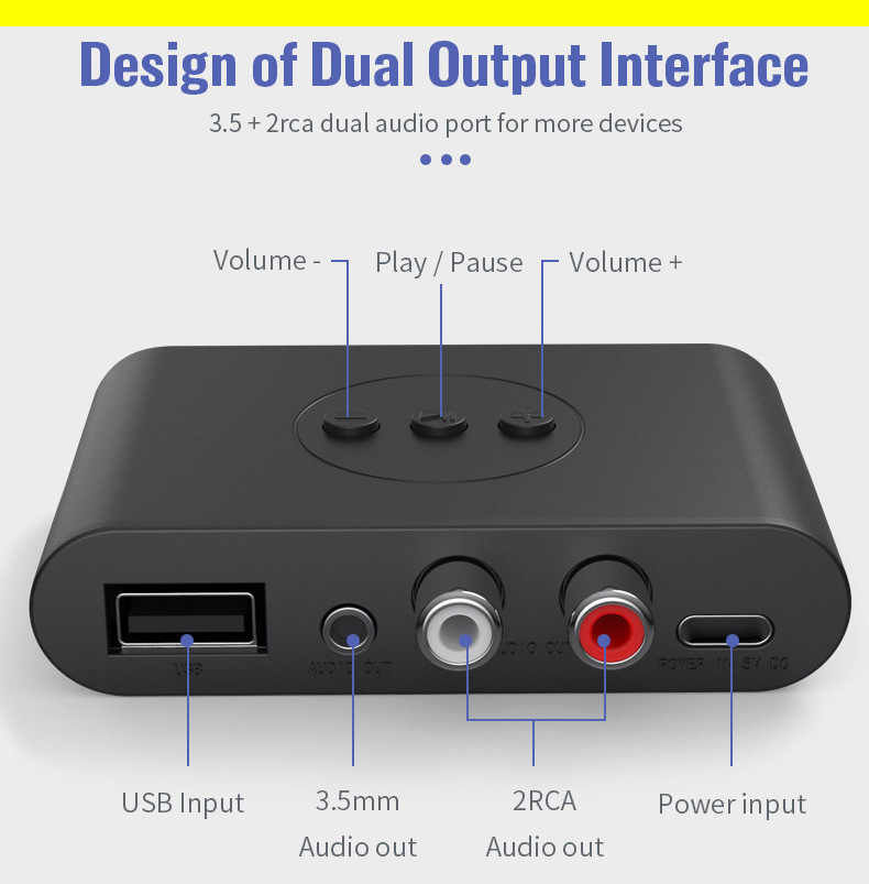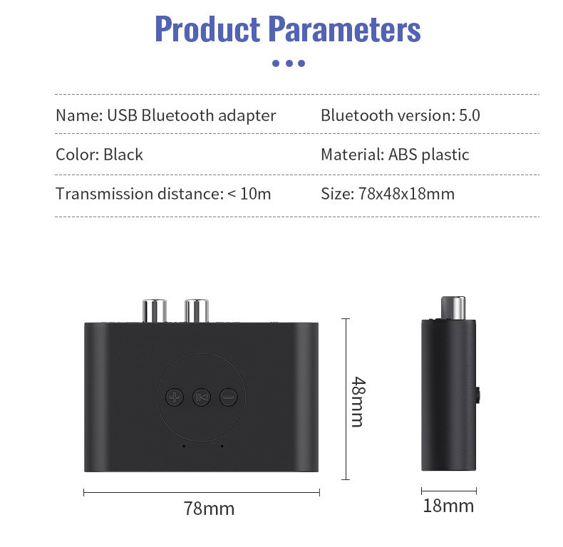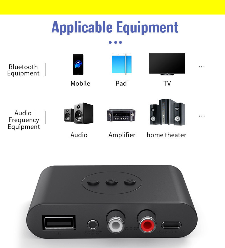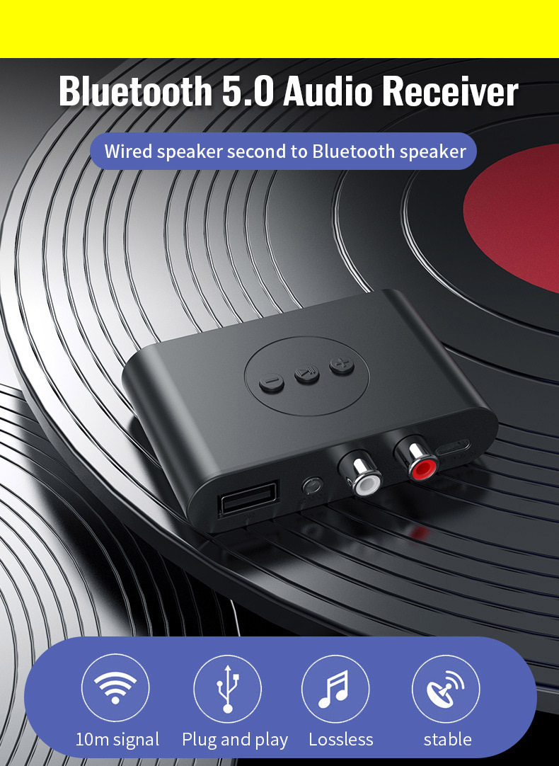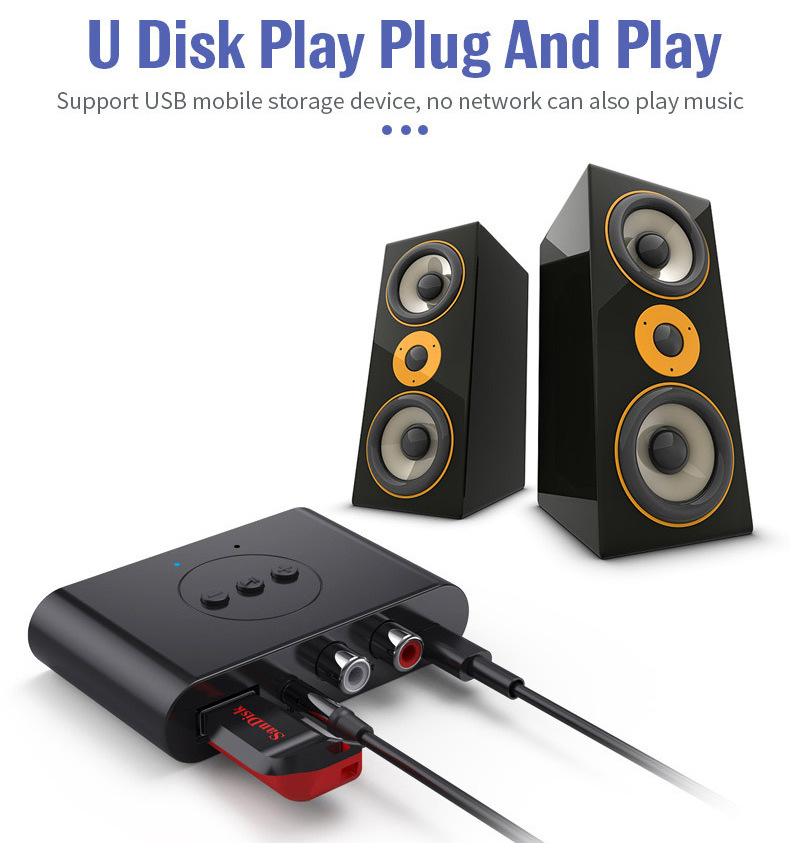 5.2RCA蓝牙接收器3.5AUX车载蓝牙棒USB蓝牙适配器支持音箱功放U盘