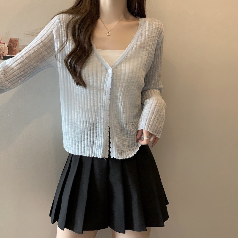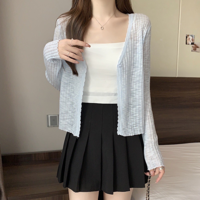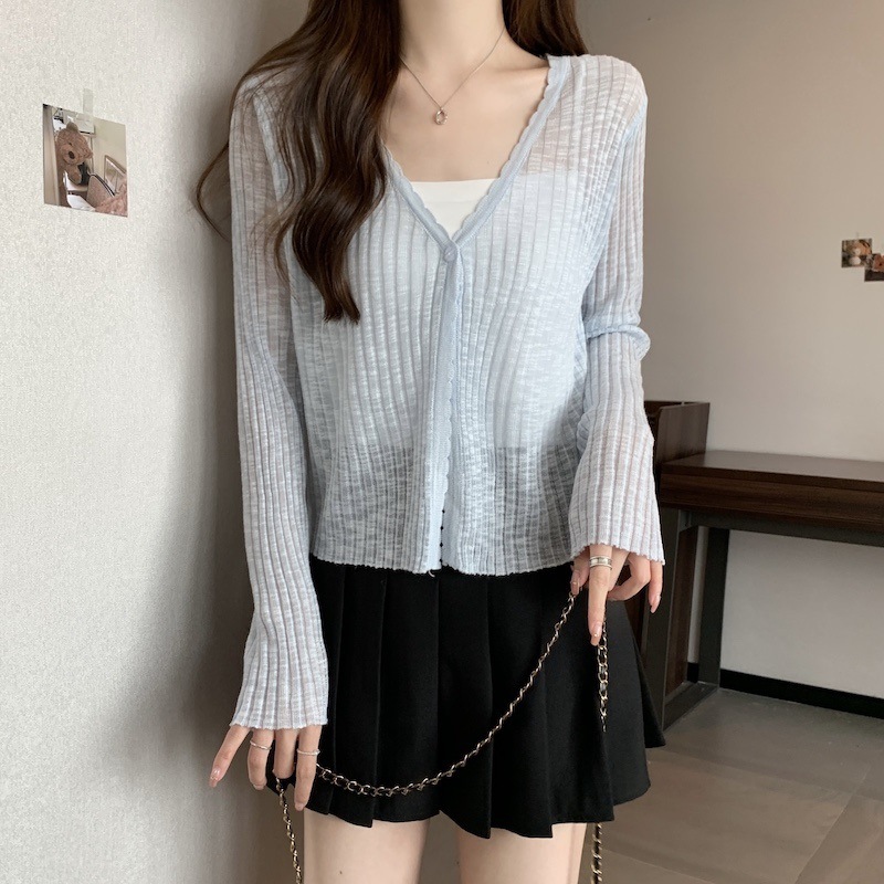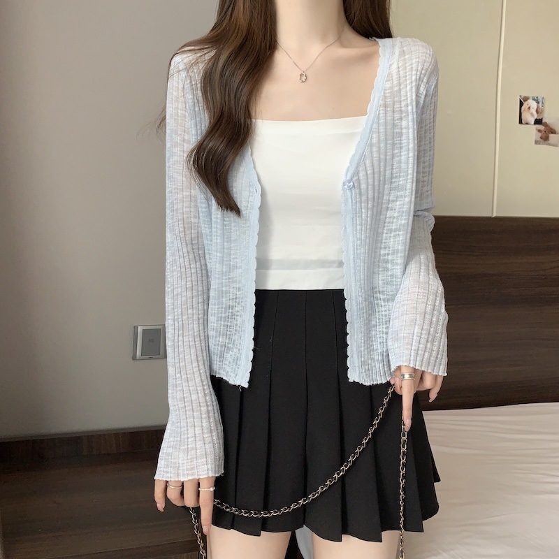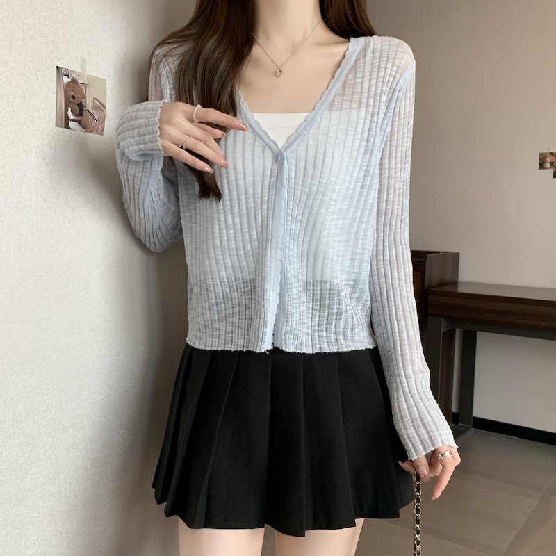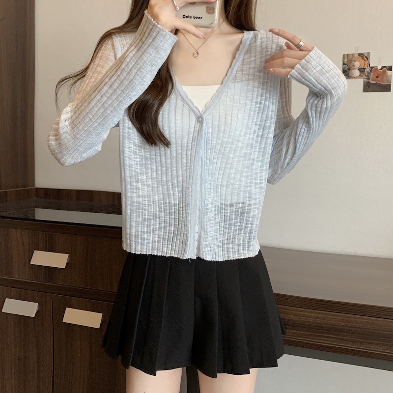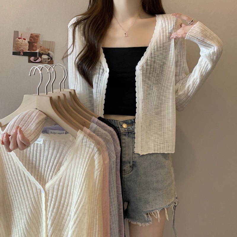 Large Size Chubby Sister Ice Silk Sun Protection Cardigan Women's Thin Summer Shawl Slip Skirt Overshirt Knitted Top Jacket