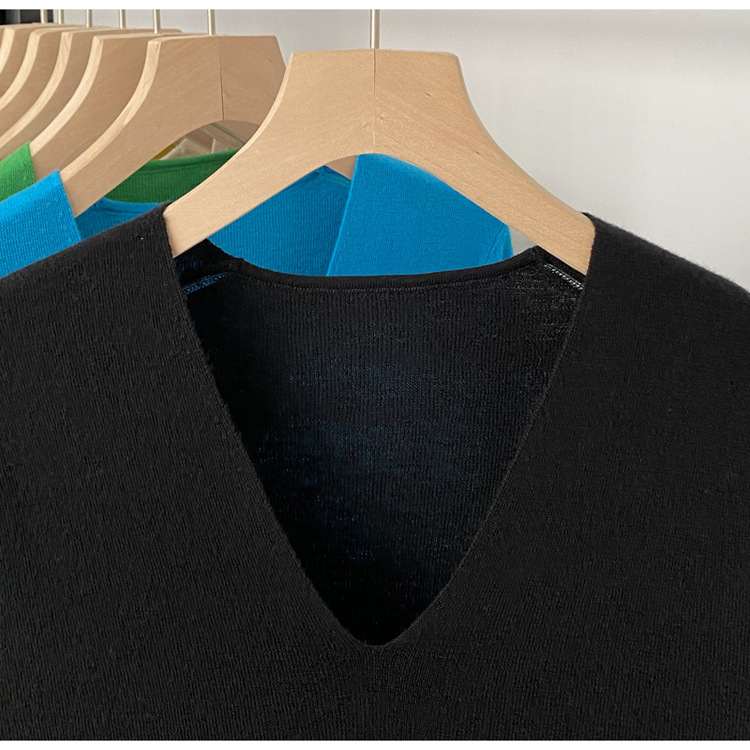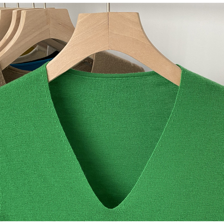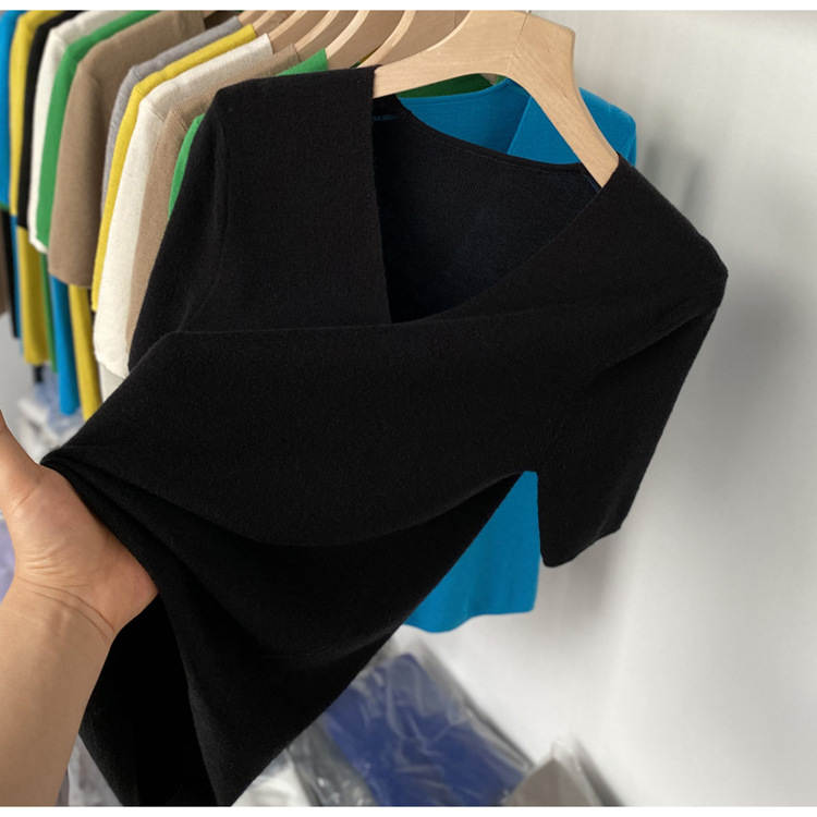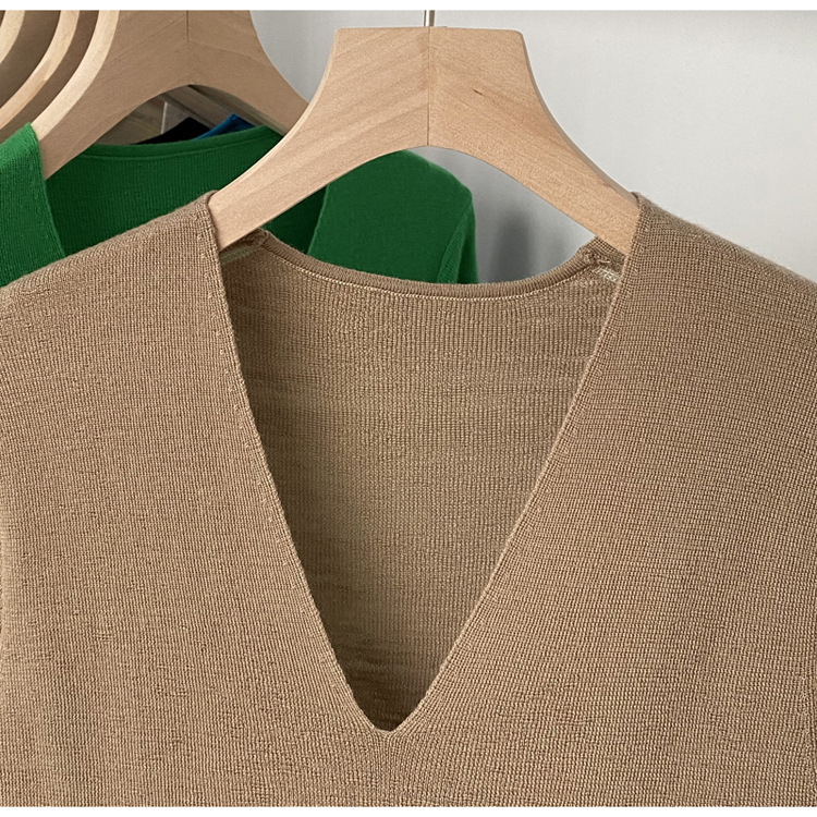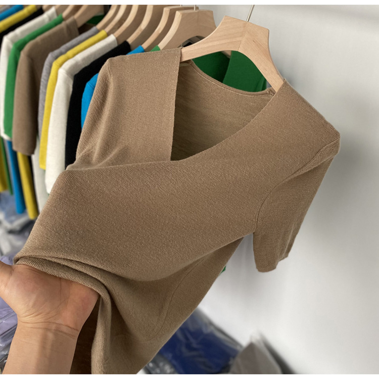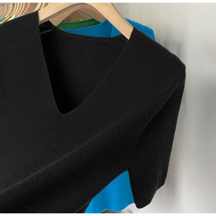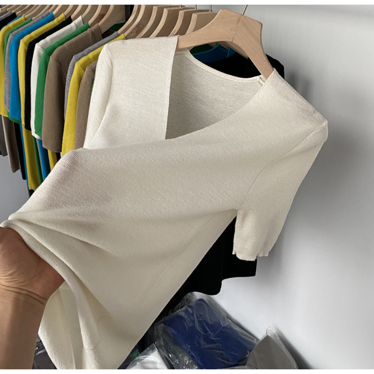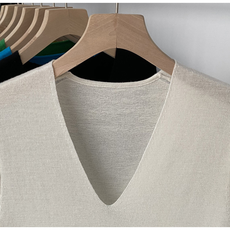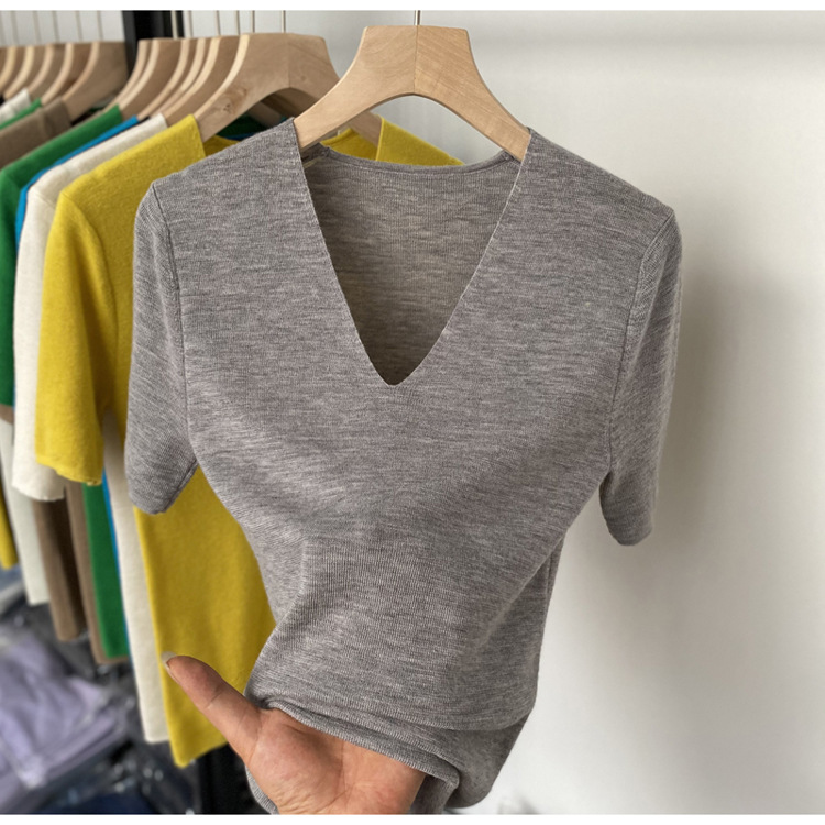 Spring and Summer 2024 New V-neck Elegant Short-sleeved Thin Sweater Women's Breathable Slim-fit Stylish Mid-sleeved Base Top