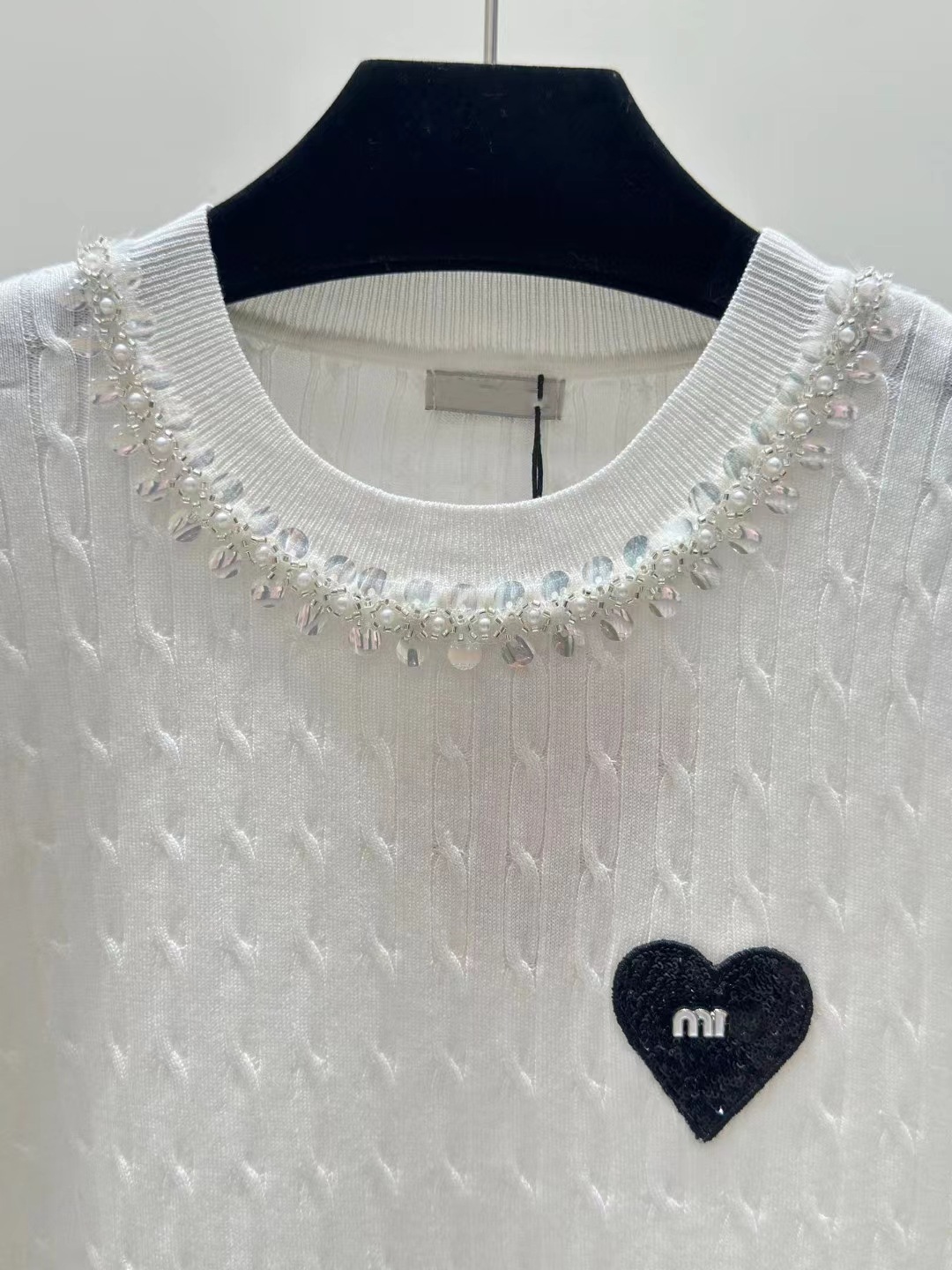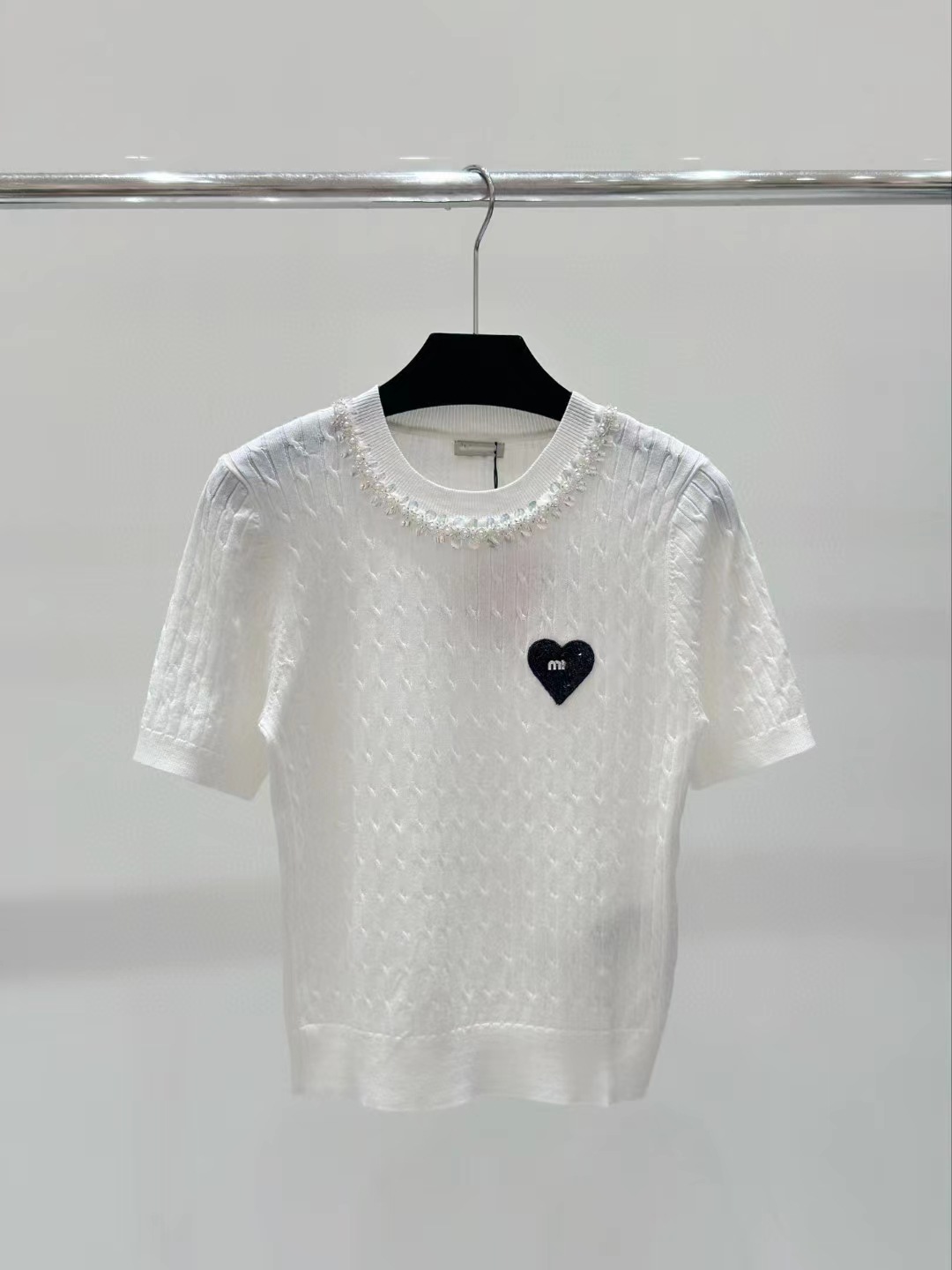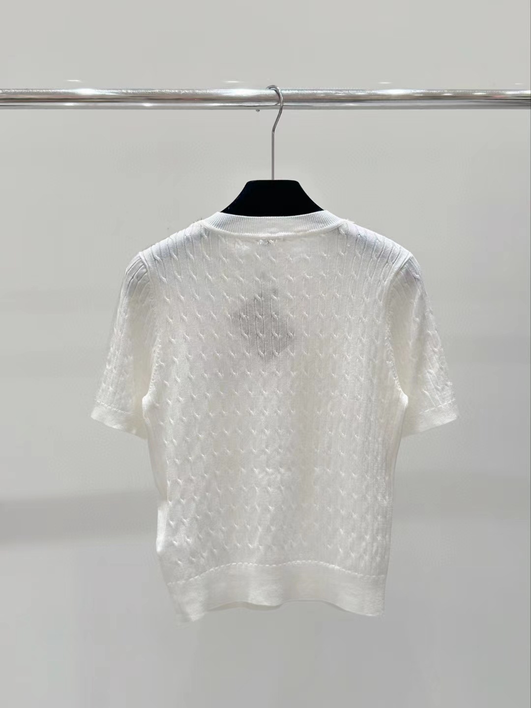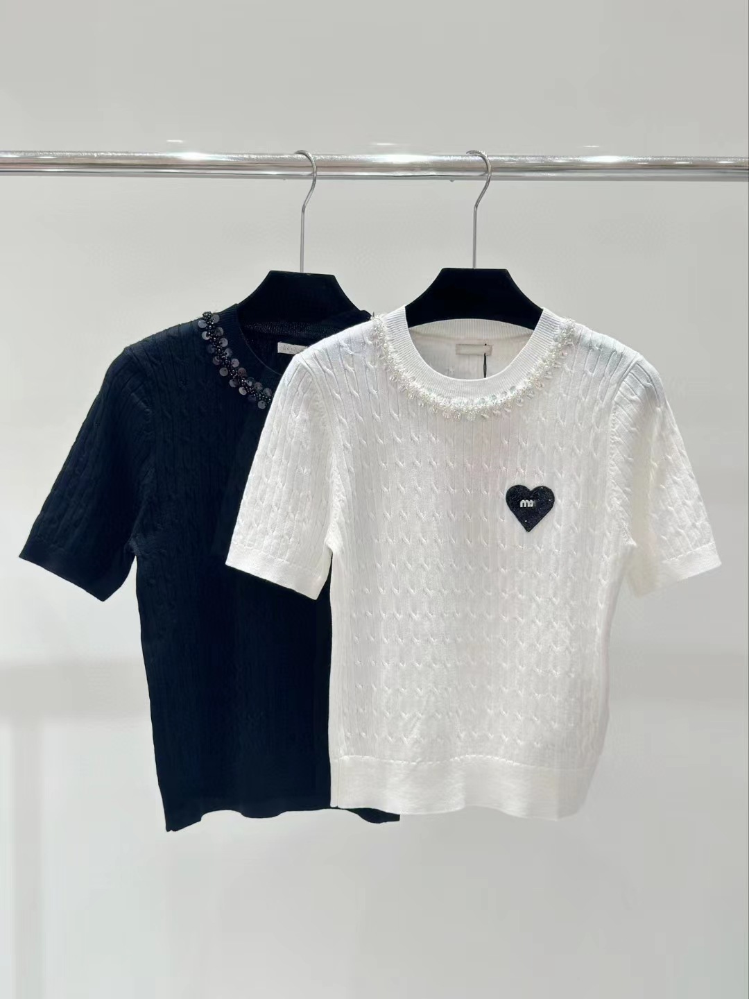 Gao Ding Meow Meow Home 24 Years Summer New Sequin Knitted Shirt Twists Short Sleeve Girl Age-reducing Breathable Thin Jacket for Women