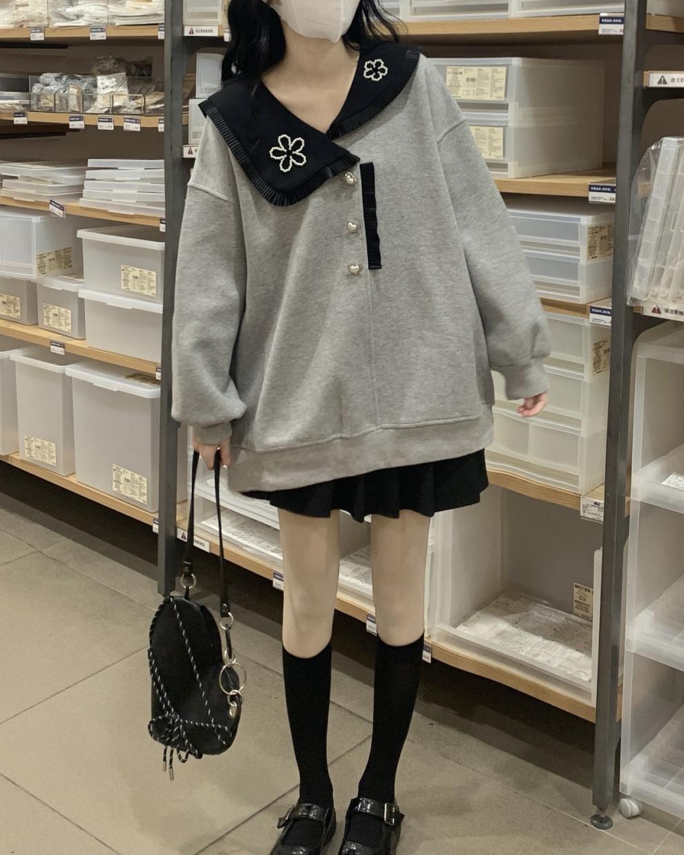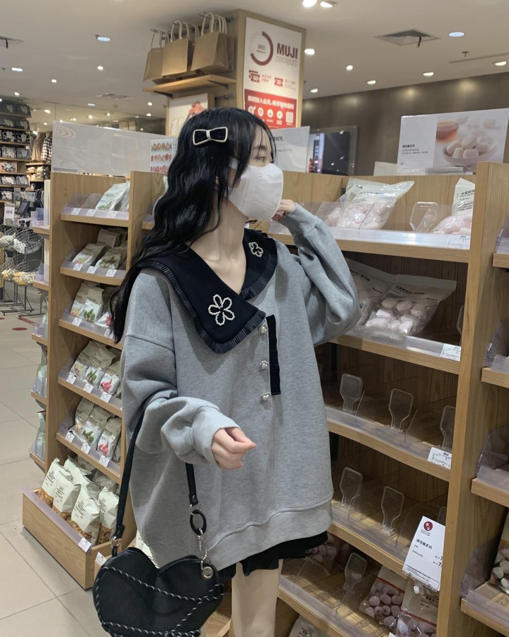 1.00 kg-150.00 kg plus size sweater women's design sense niche spring and autumn new chic doll collar chubby girl top clothes fashion ins