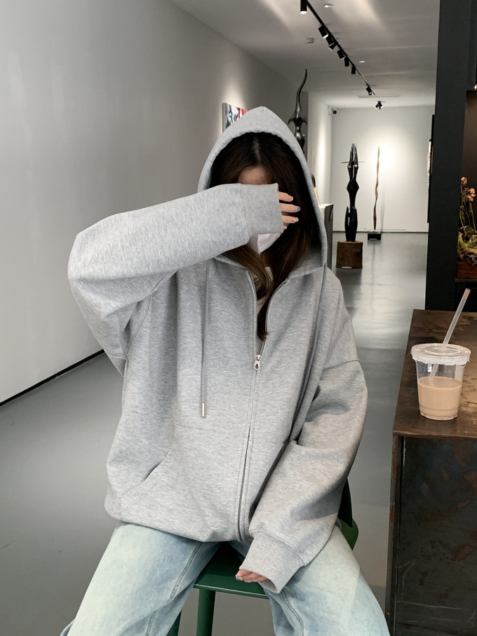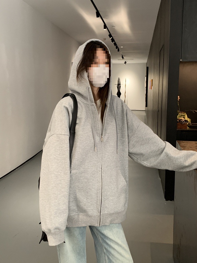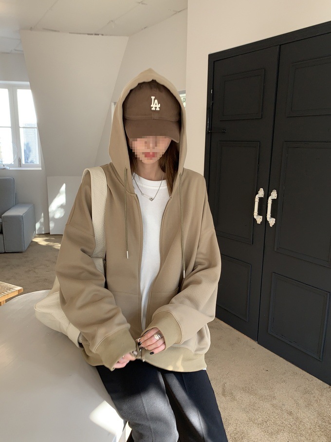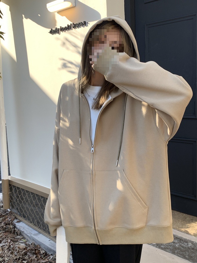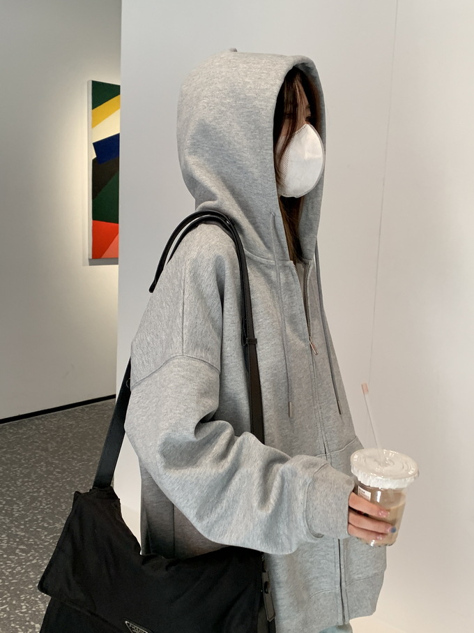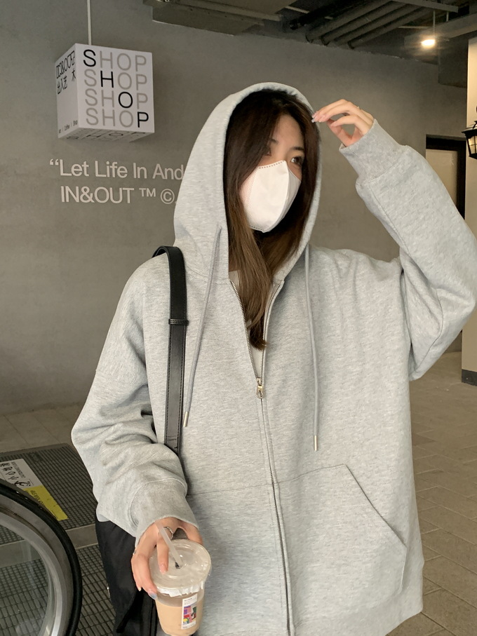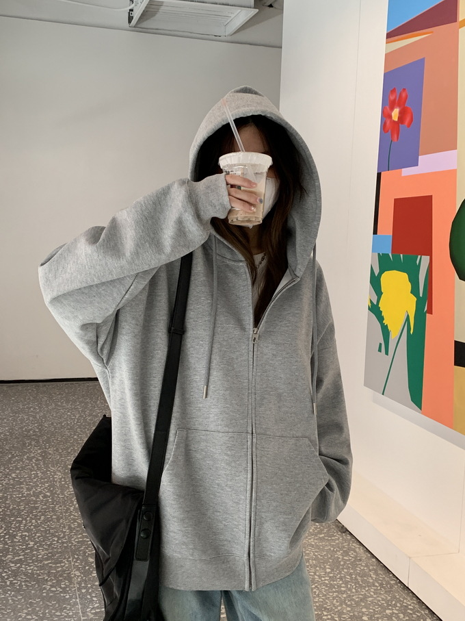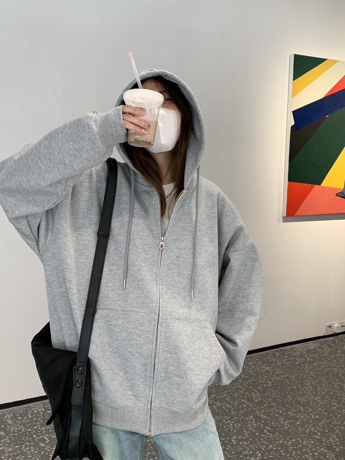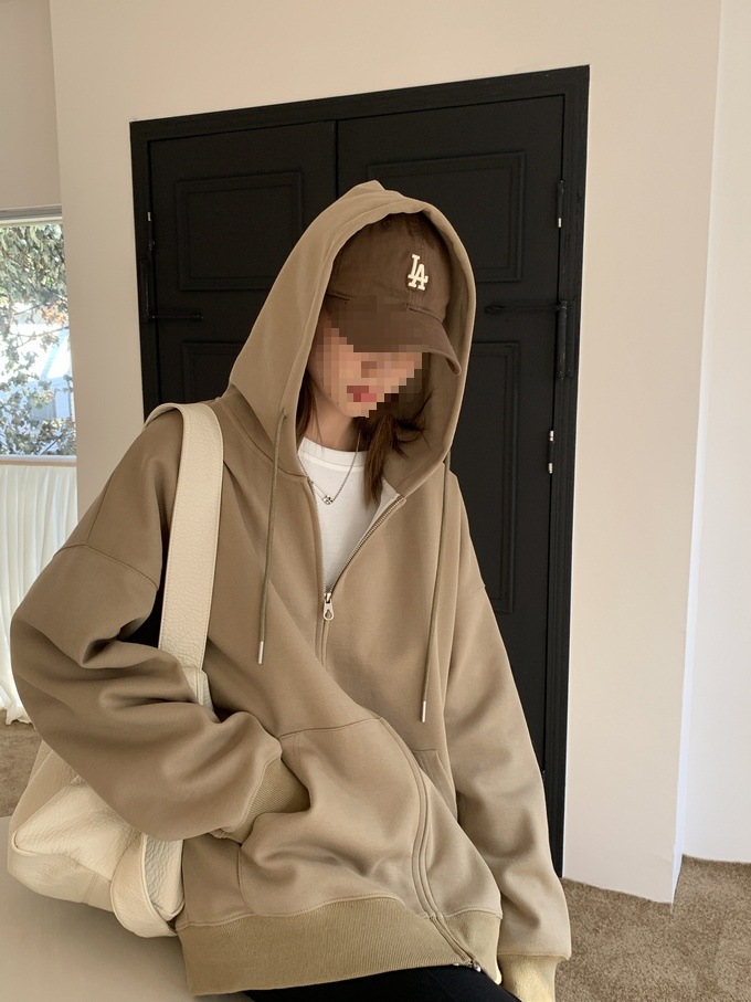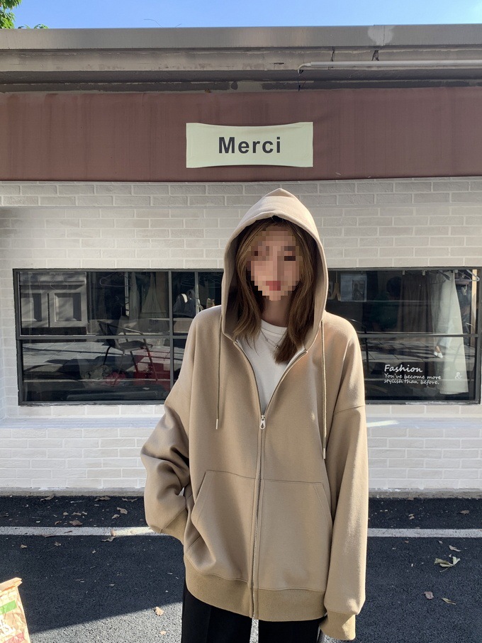 Ayihe lazy sweater women's spring and autumn hooded loose fleece-lined khaki zipper casual cardigan jacket
