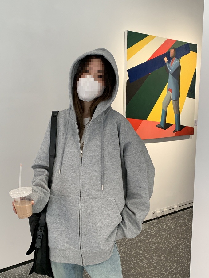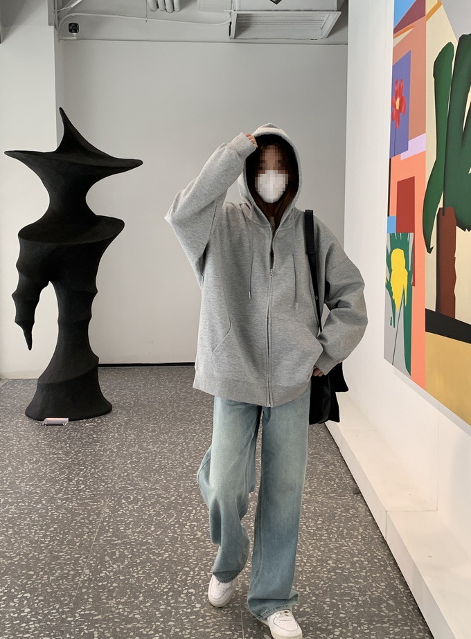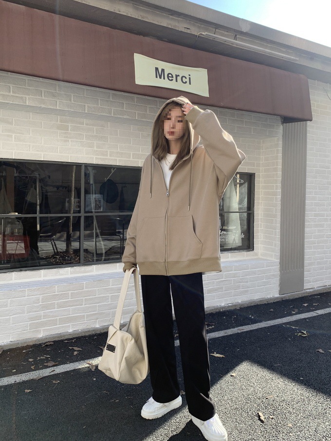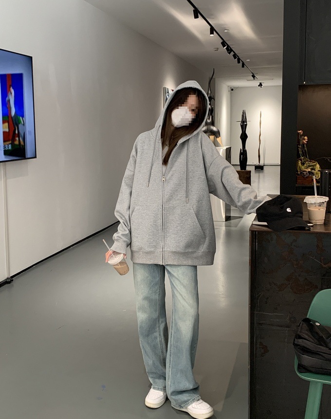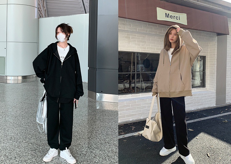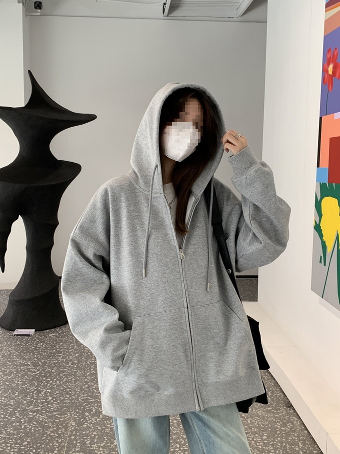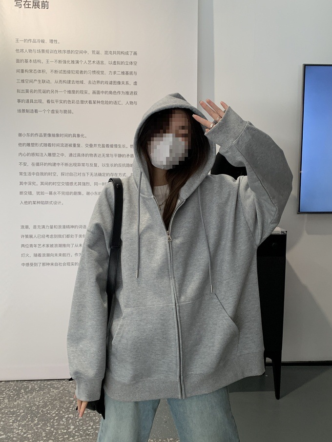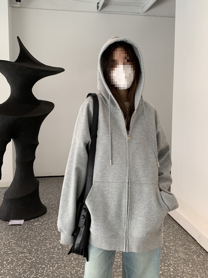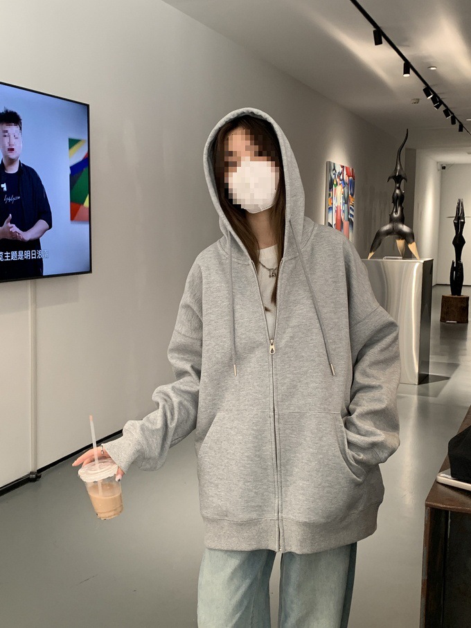 Ayihe lazy sweater women's spring and autumn hooded loose fleece-lined khaki zipper casual cardigan jacket