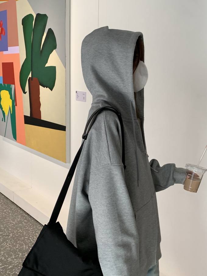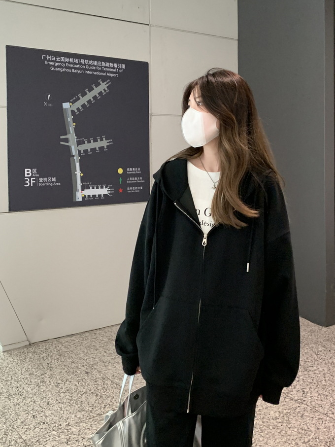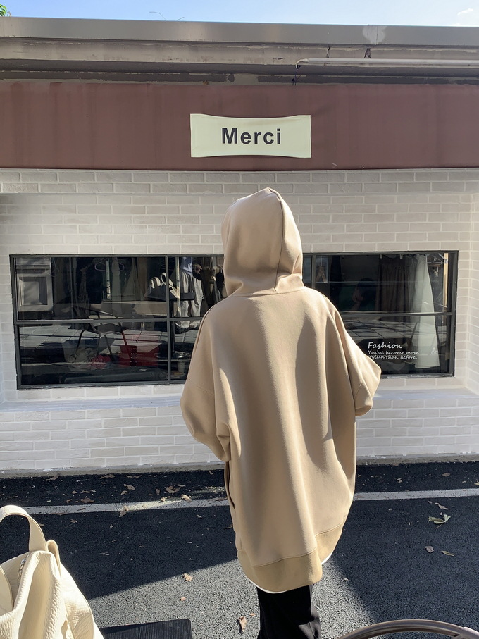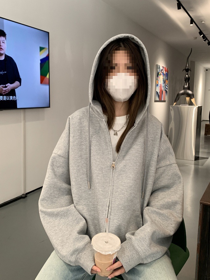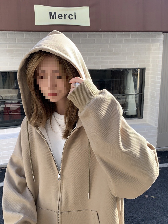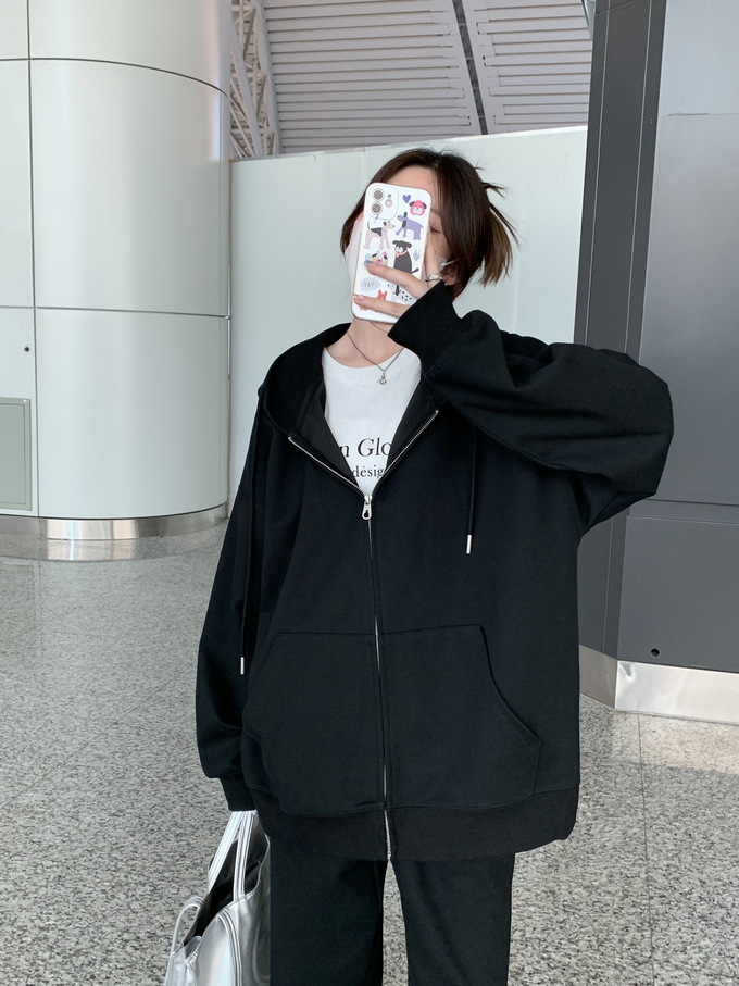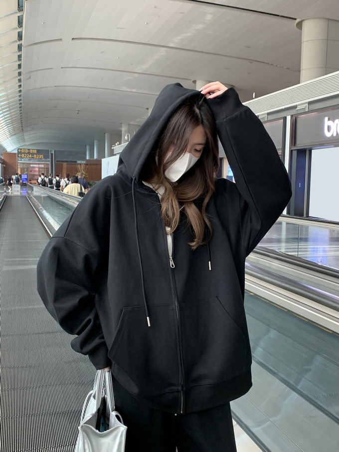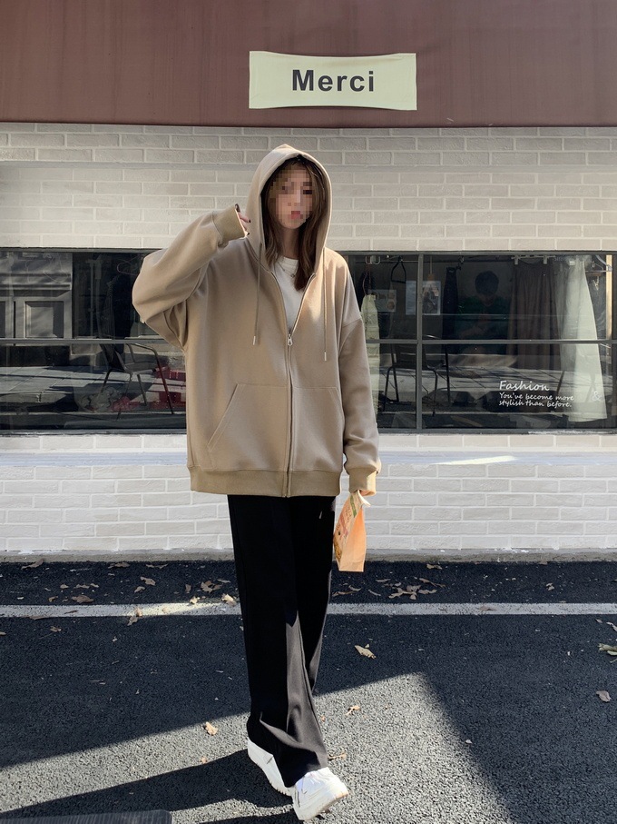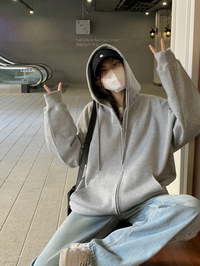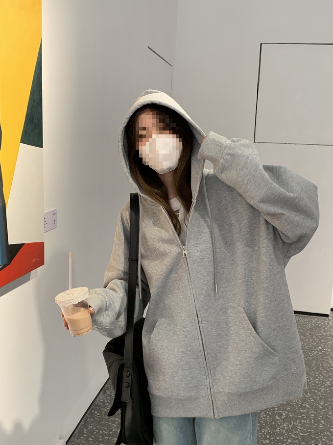 Ayihe lazy sweater women's spring and autumn hooded loose fleece-lined khaki zipper casual cardigan jacket