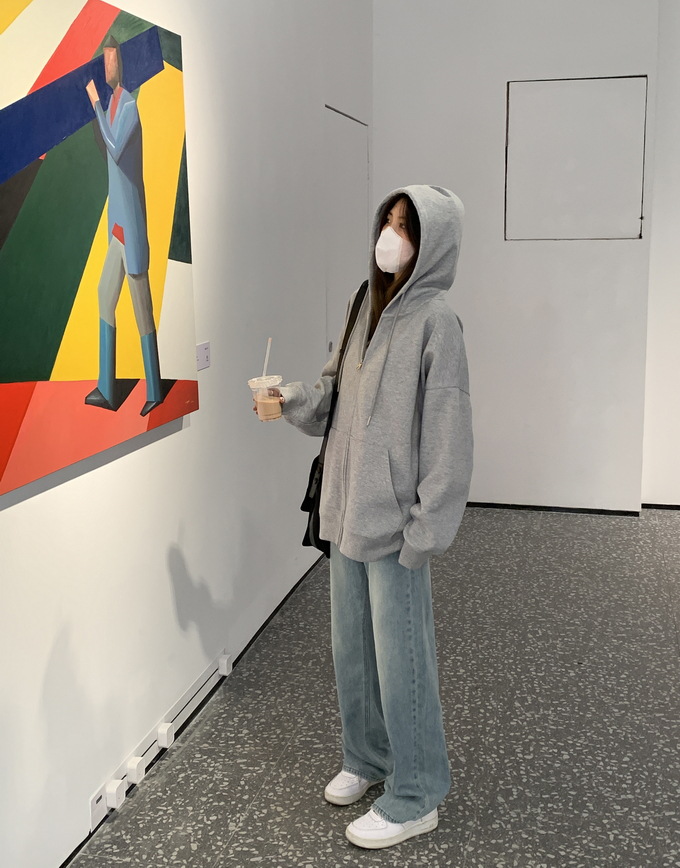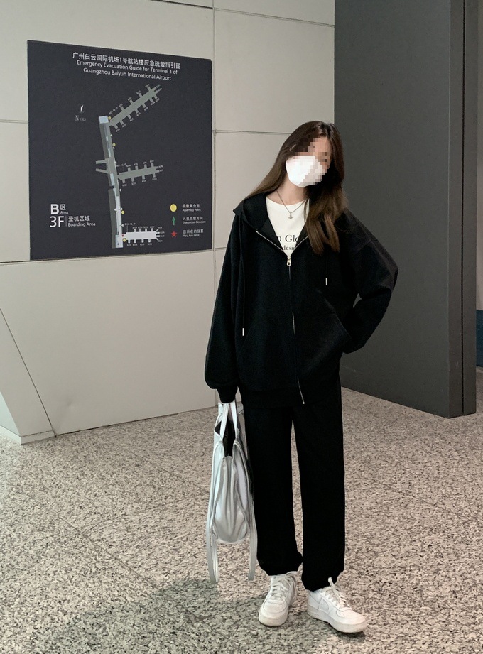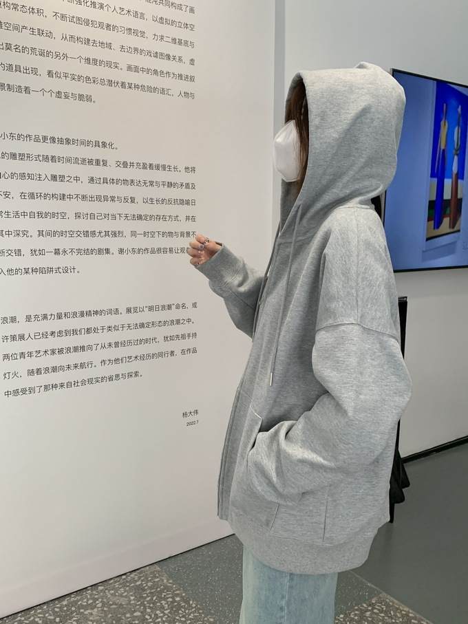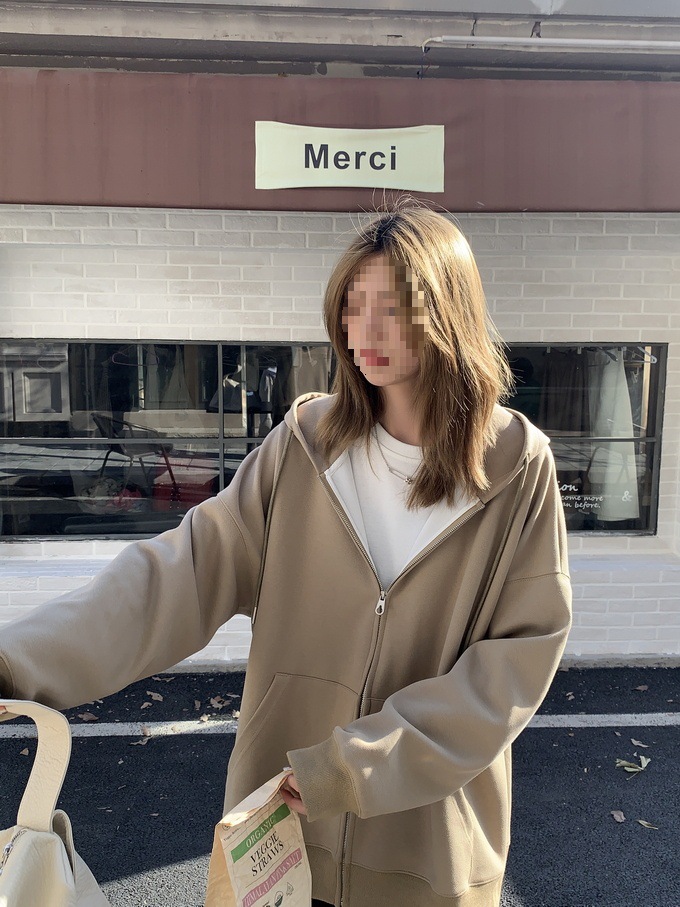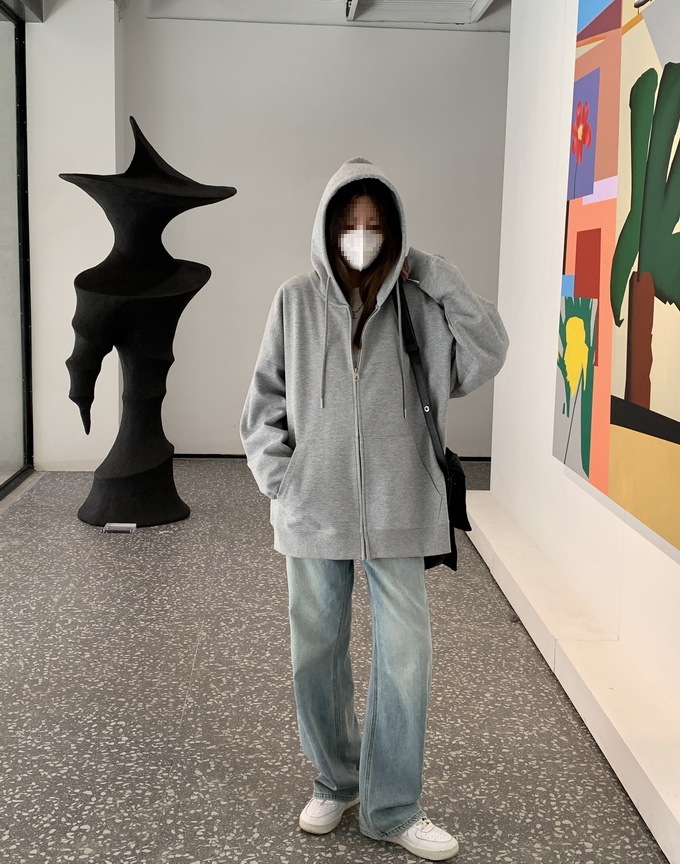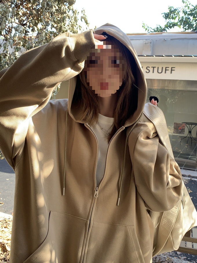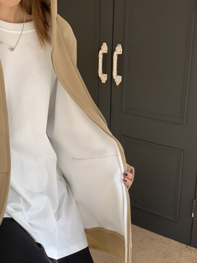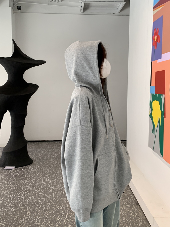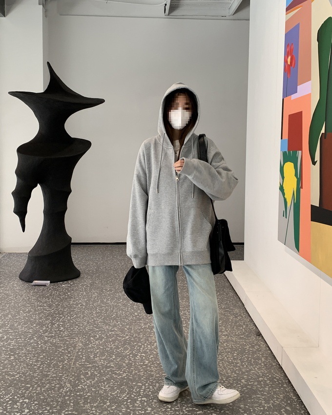 Ayihe lazy sweater women's spring and autumn hooded loose fleece-lined khaki zipper casual cardigan jacket