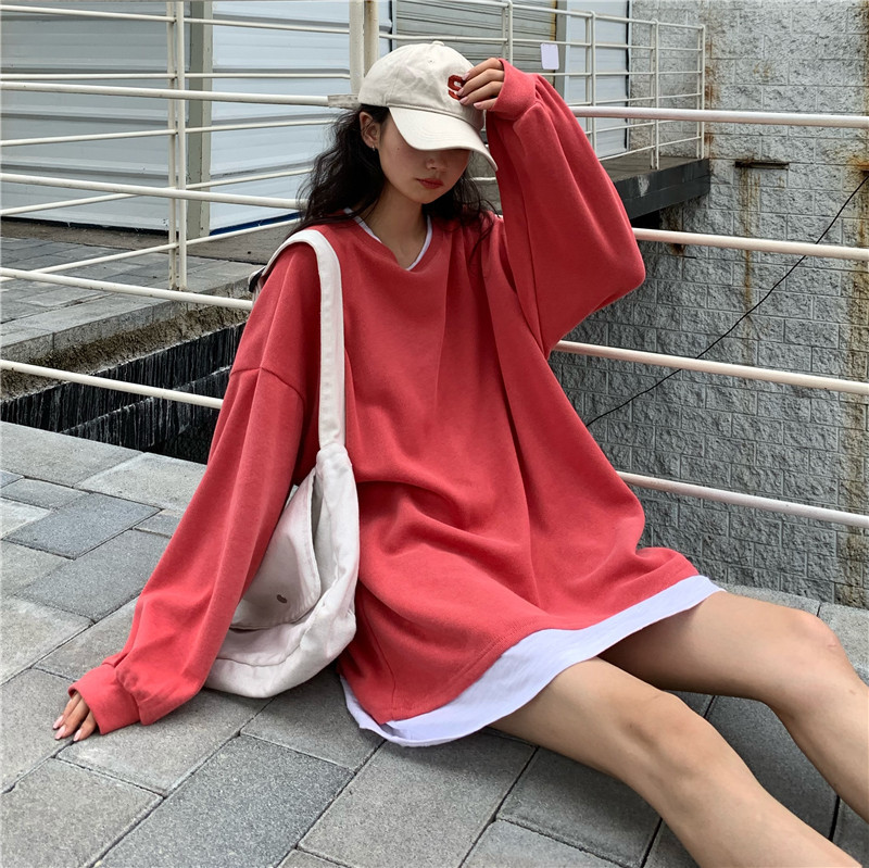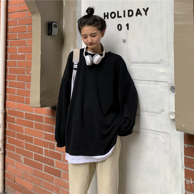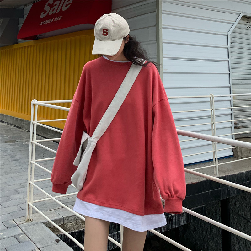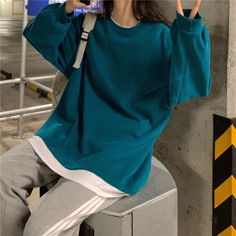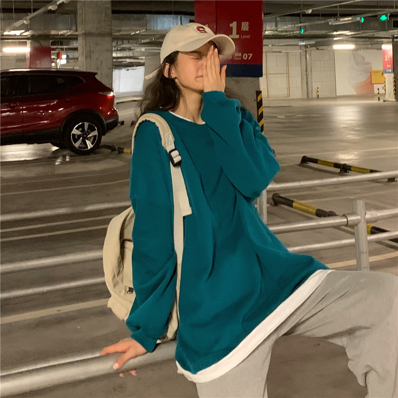 Fake two-piece sweater women's loose Harajuku lazy style early spring new Korean style student long-sleeved top