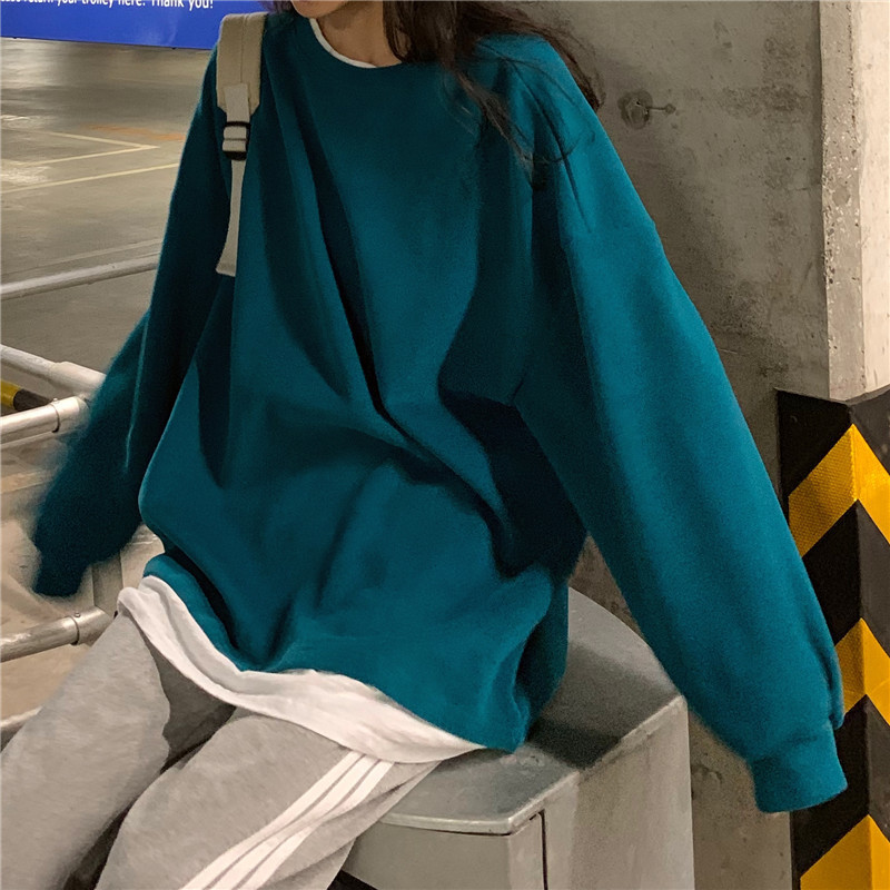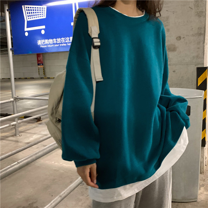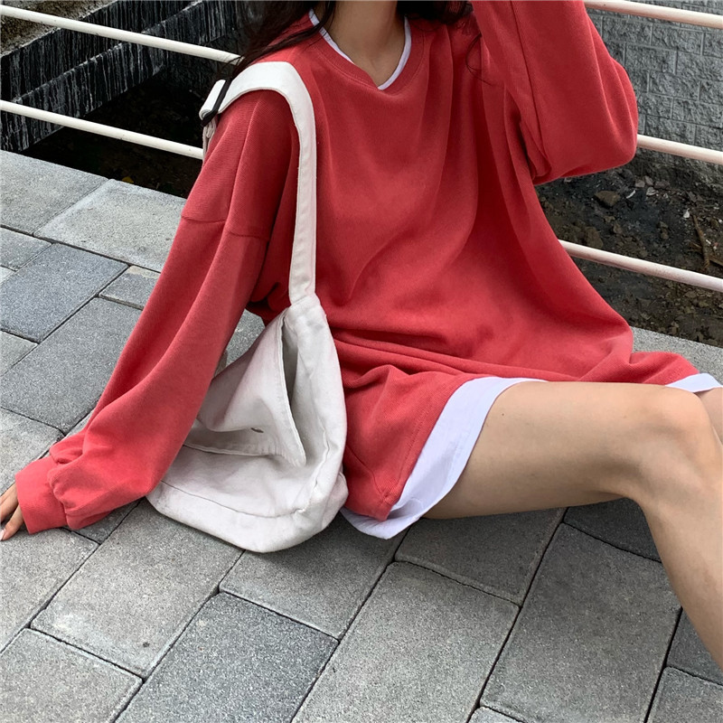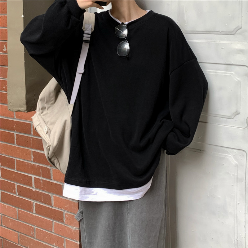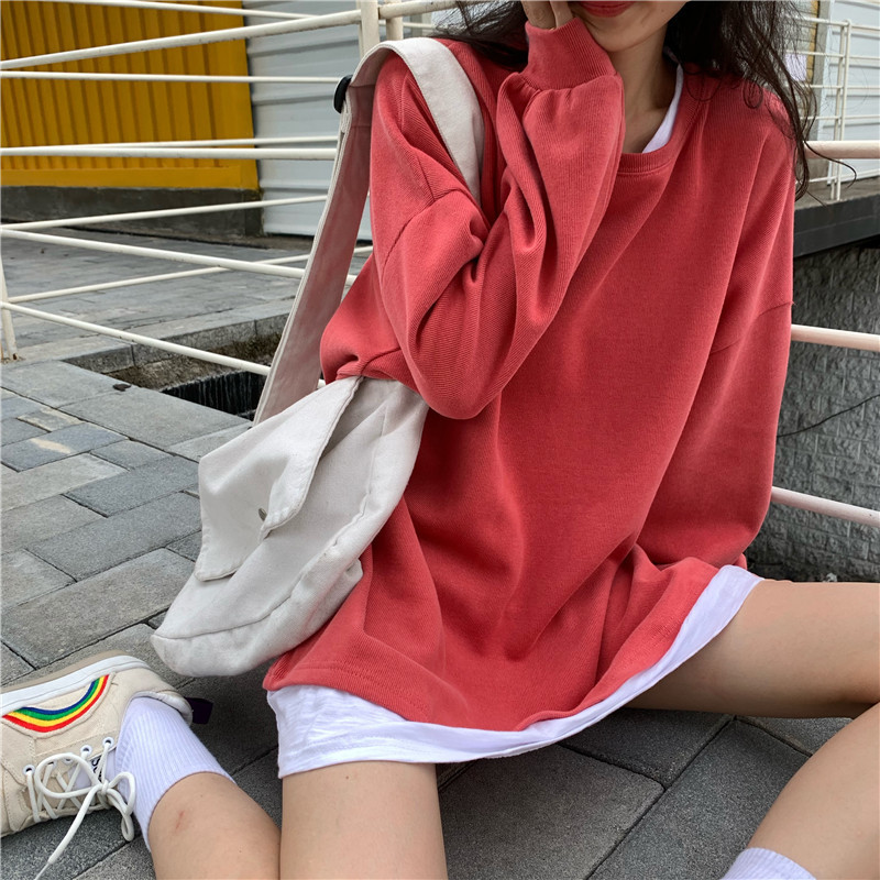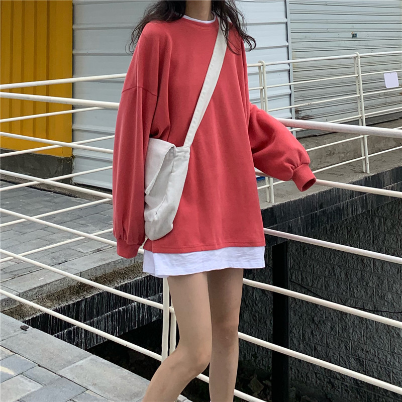 Fake two-piece sweater women's loose Harajuku lazy style early spring new Korean style student long-sleeved top