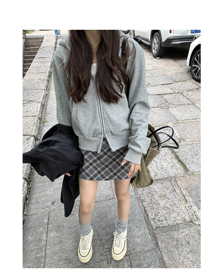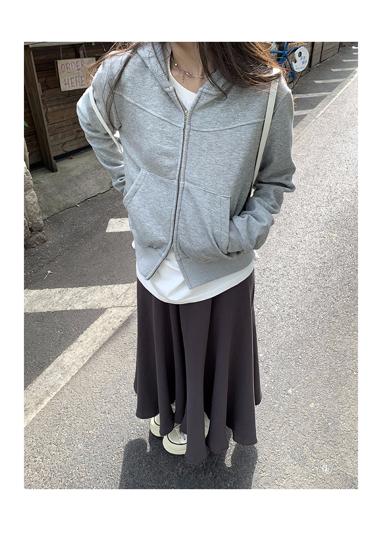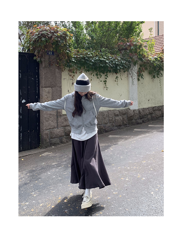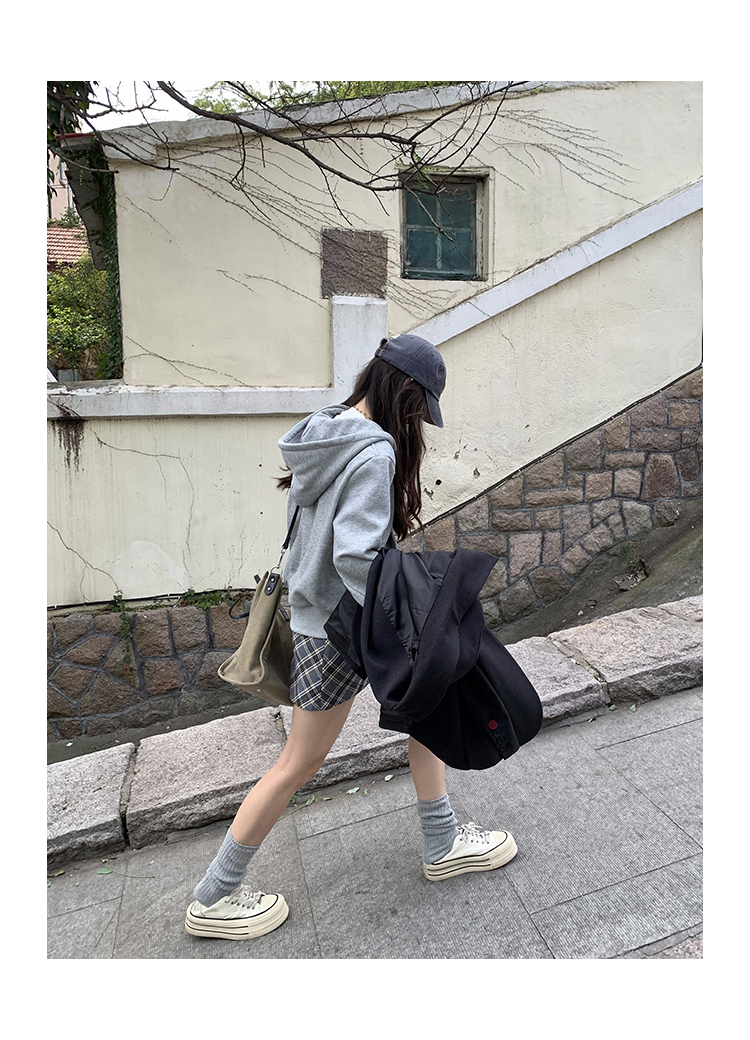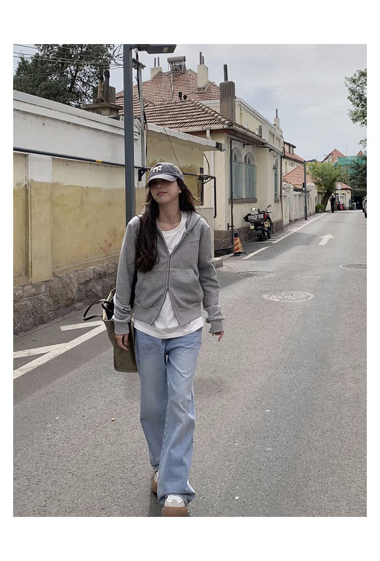 Wasteland Sports-style Hooded Sweatshirt Coat Spring and Autumn Korean Commuter oversize Slimming Grey Long-sleeved Top