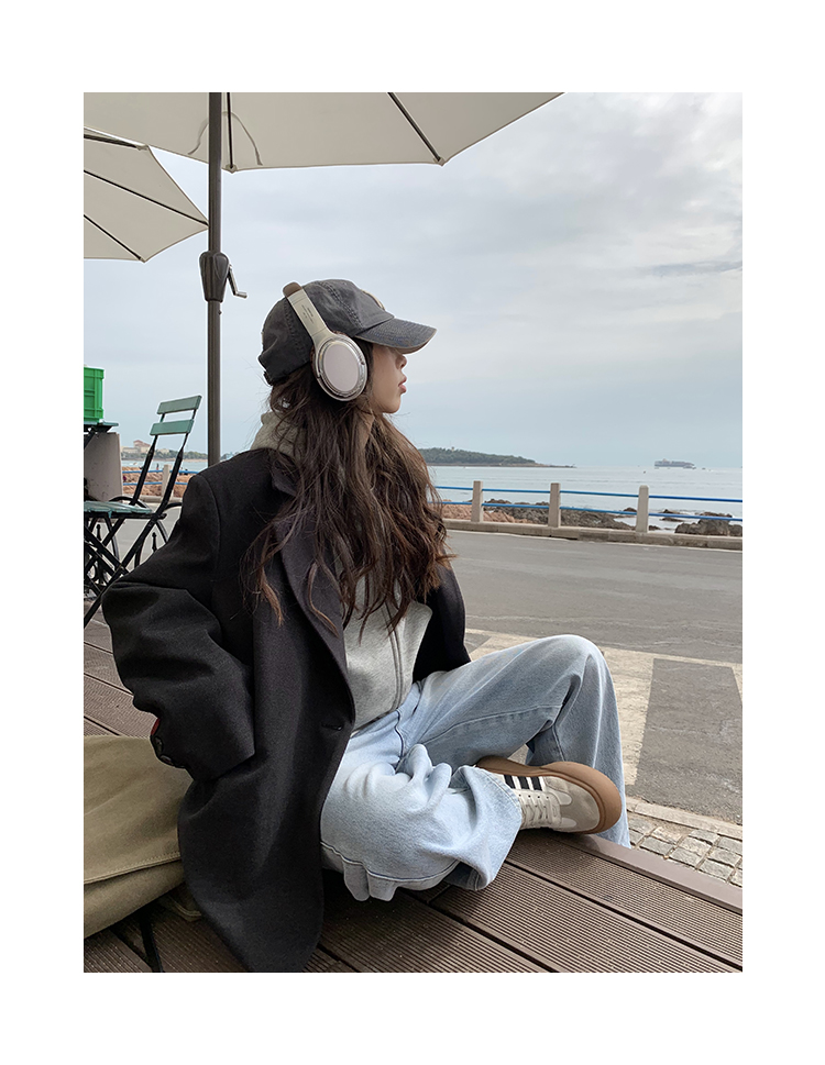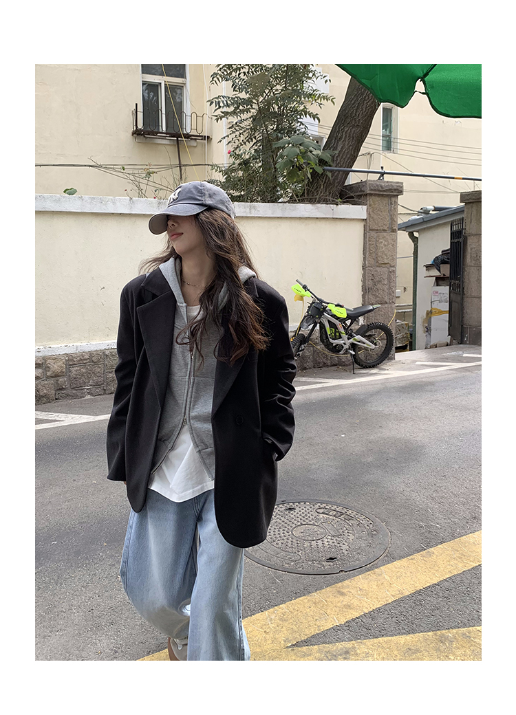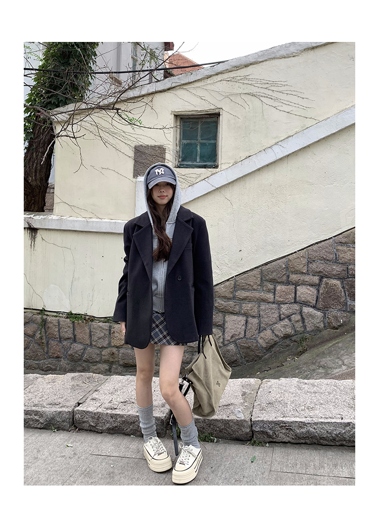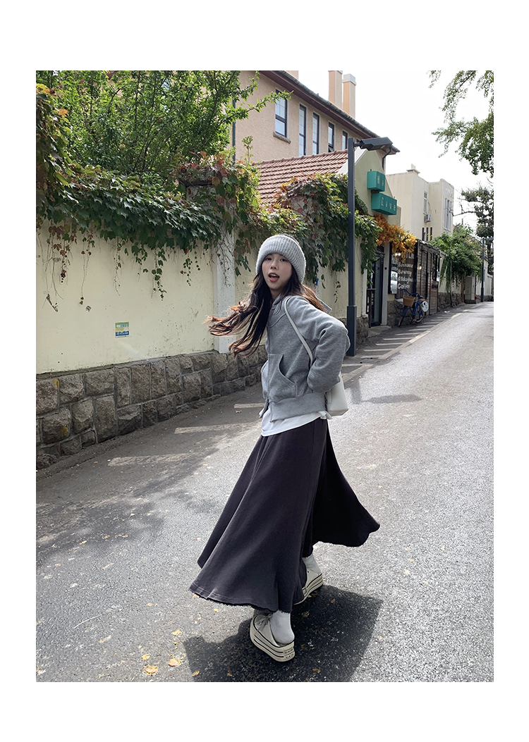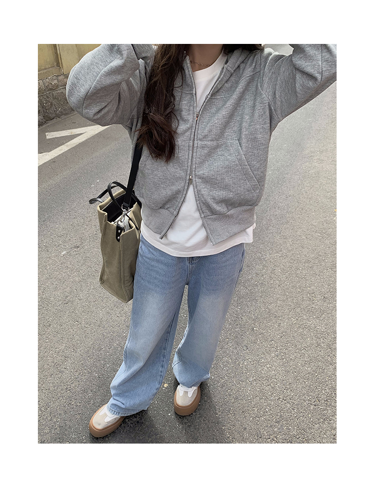 Wasteland Sports-style Hooded Sweatshirt Coat Spring and Autumn Korean Commuter oversize Slimming Grey Long-sleeved Top