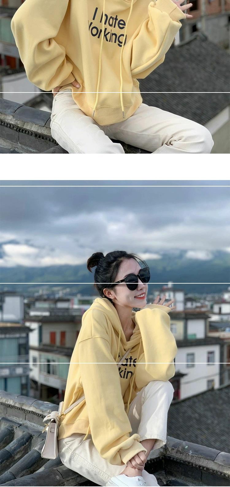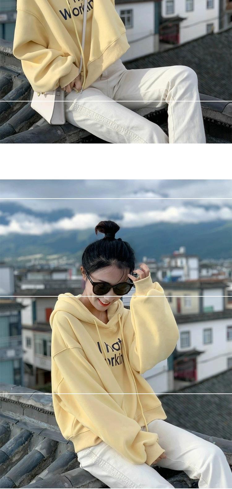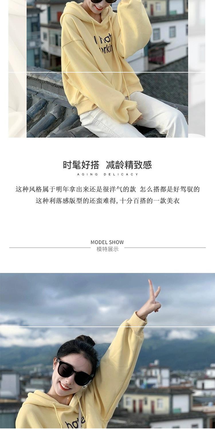 Fleece-lined Thickened Yellow Hooded Short Sweatshirt Women's 2024 Spring and Autumn New Explosions European Goods Small Long Sleeve Top