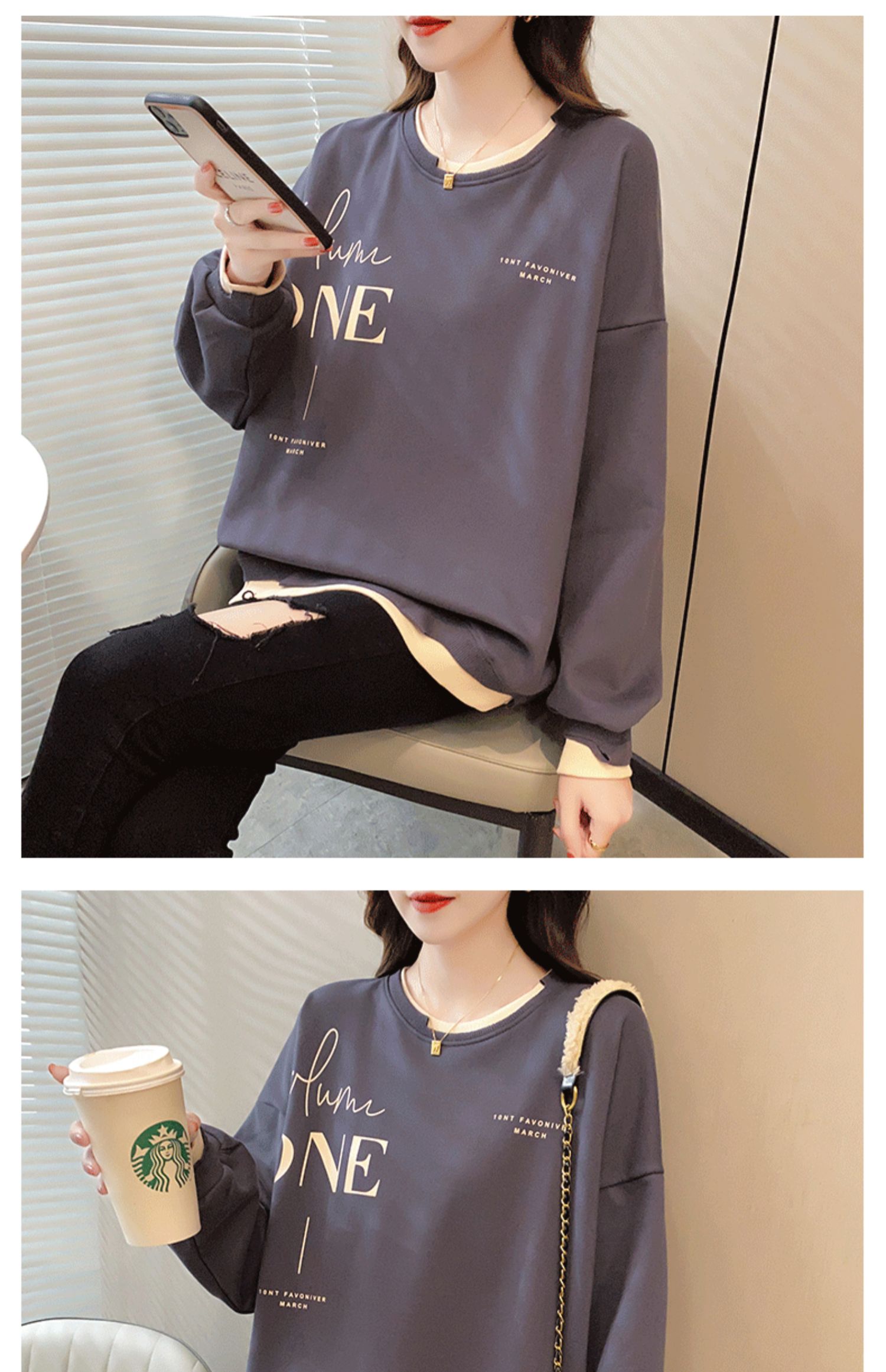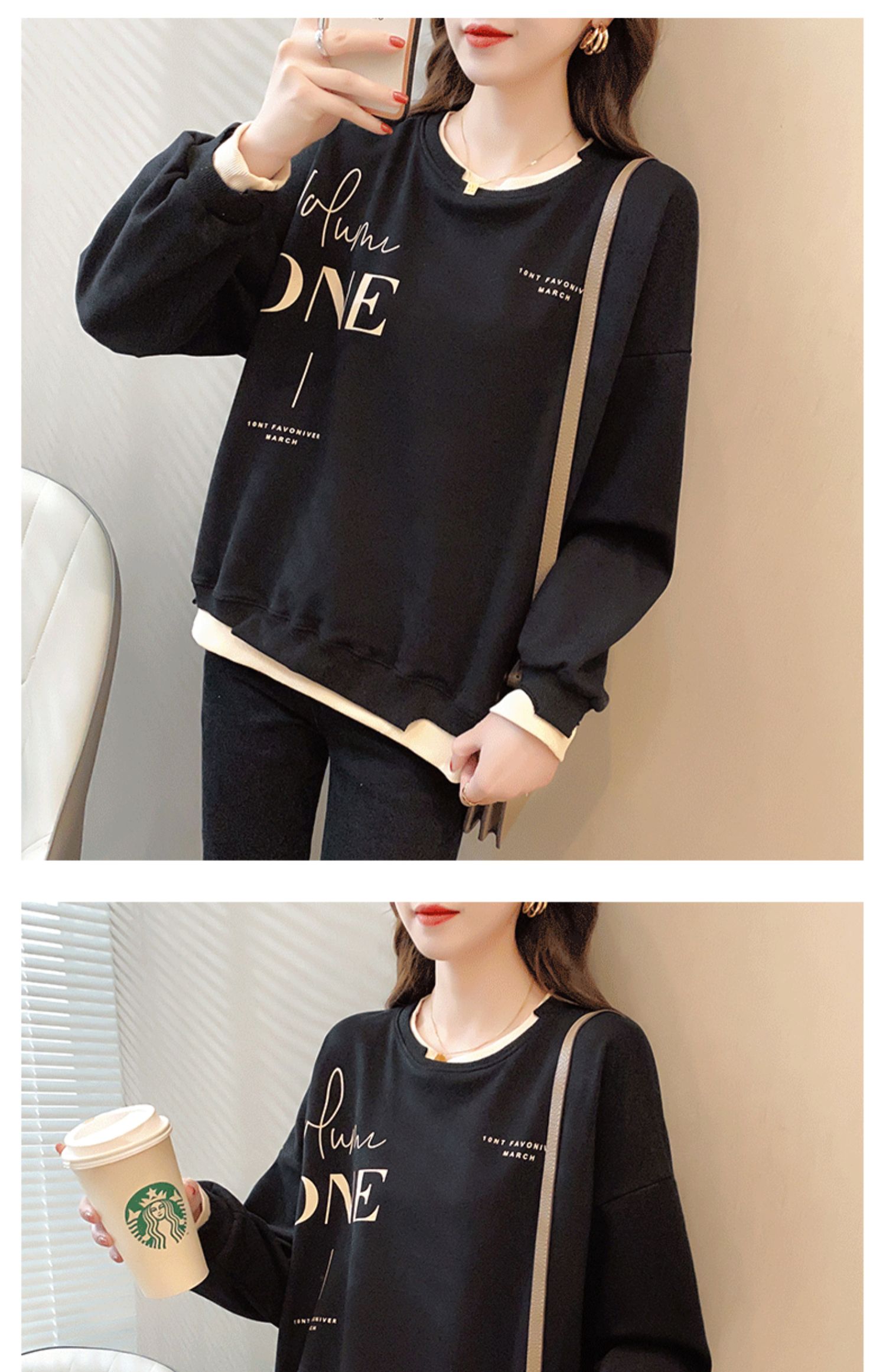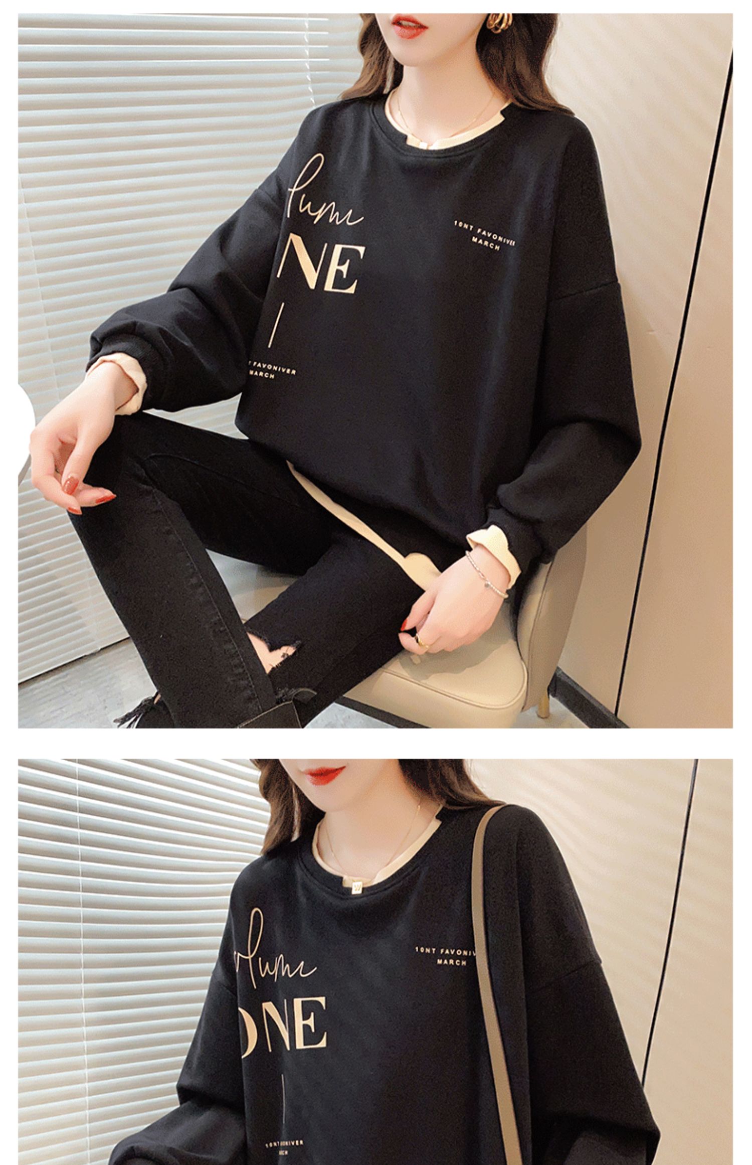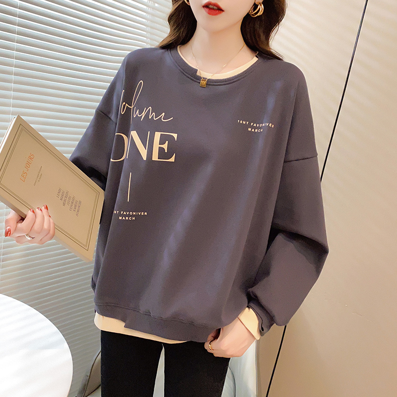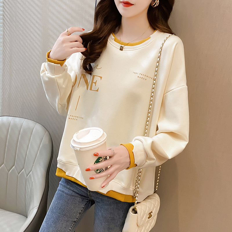 Early Autumn Sweatshirt Women's Spring and Autumn Korean Style Loose Design Sense Niche Thin Instagram Style Fake Two-piece Top Trendy