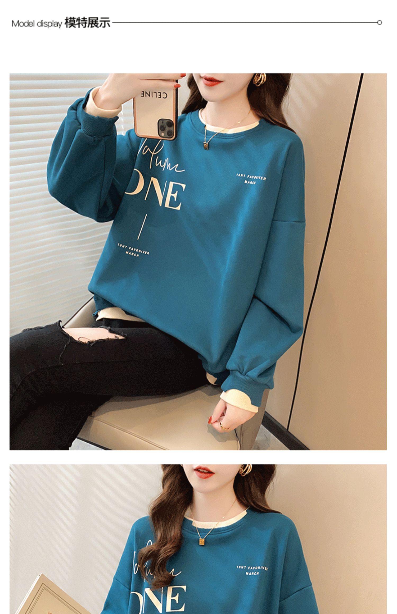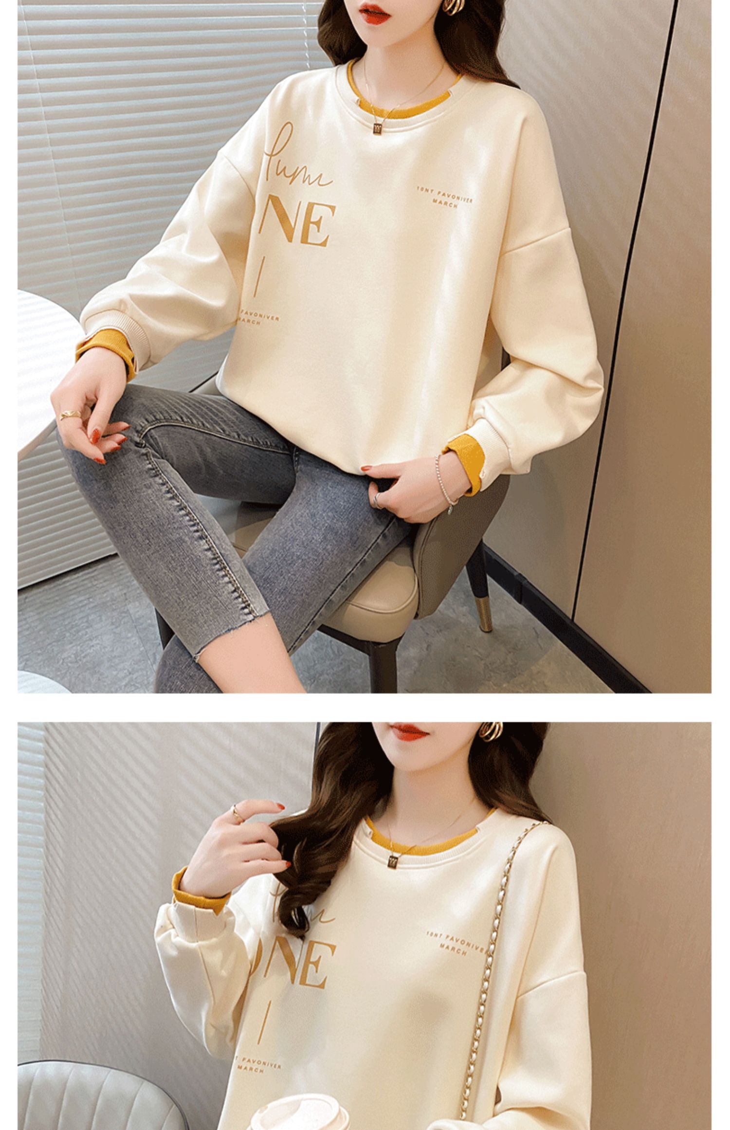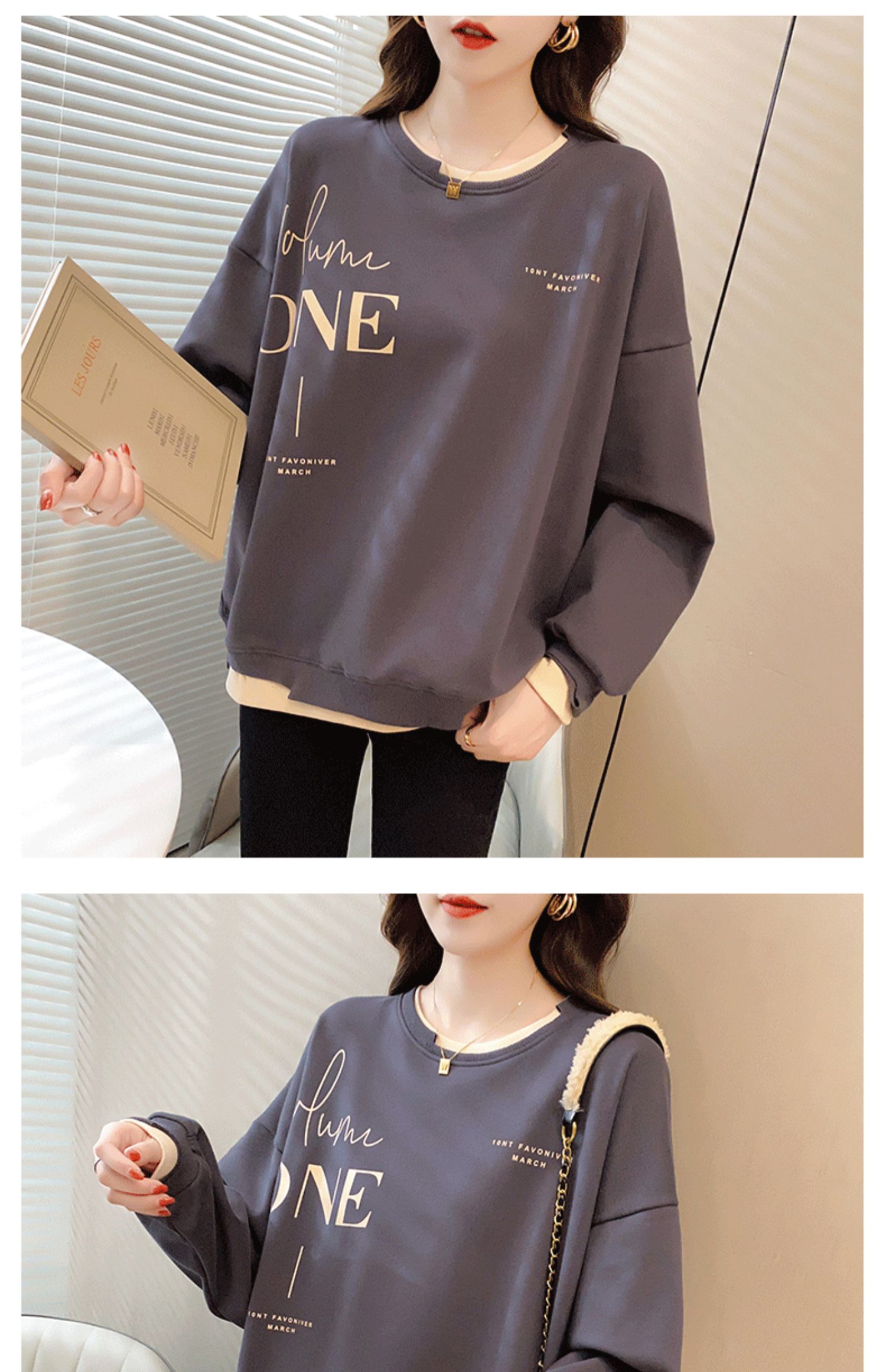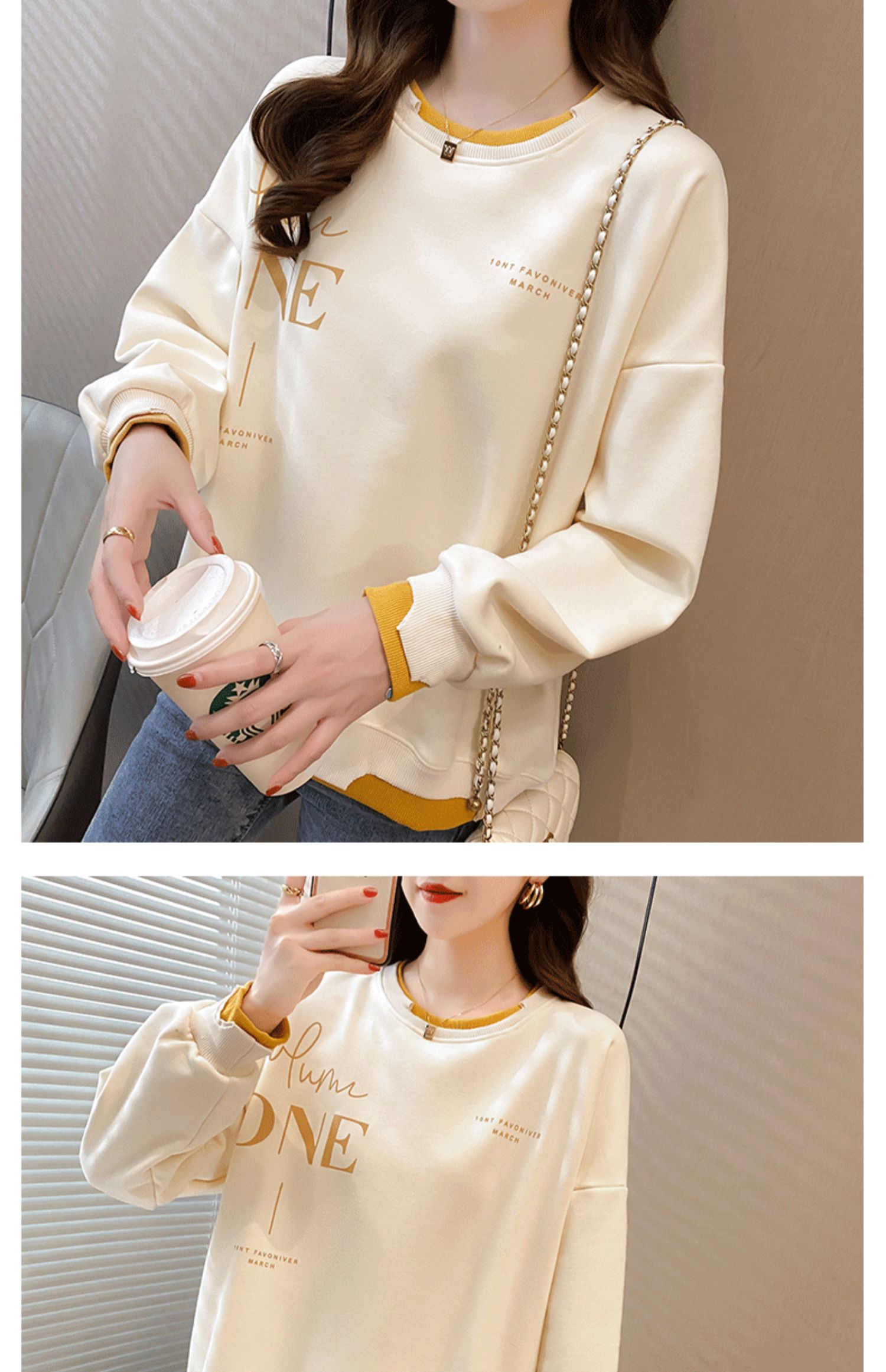 Early Autumn Sweatshirt Women's Spring and Autumn Korean Style Loose Design Sense Niche Thin Instagram Style Fake Two-piece Top Trendy