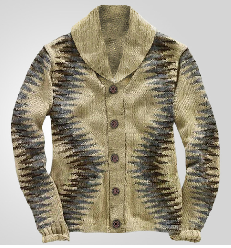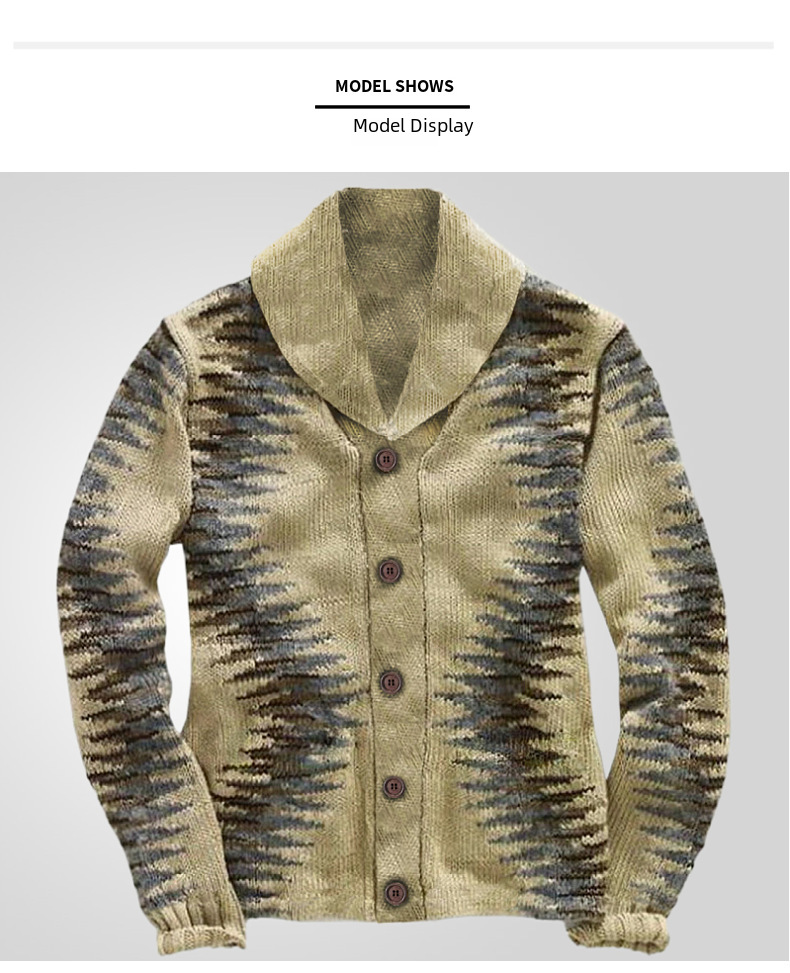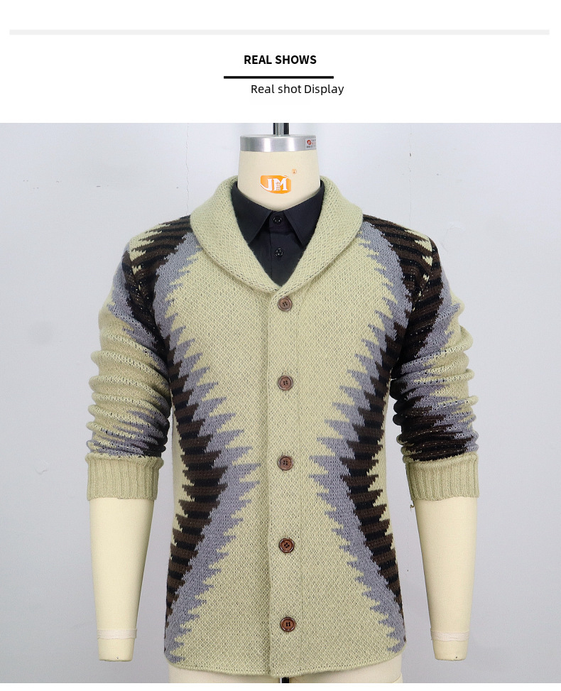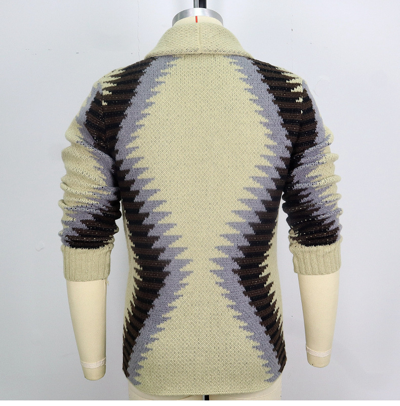 Cross-Border Men's autumn and winter retro thickened jacquard sweater thick needle heavy industry cardigan sweater coat SY0074