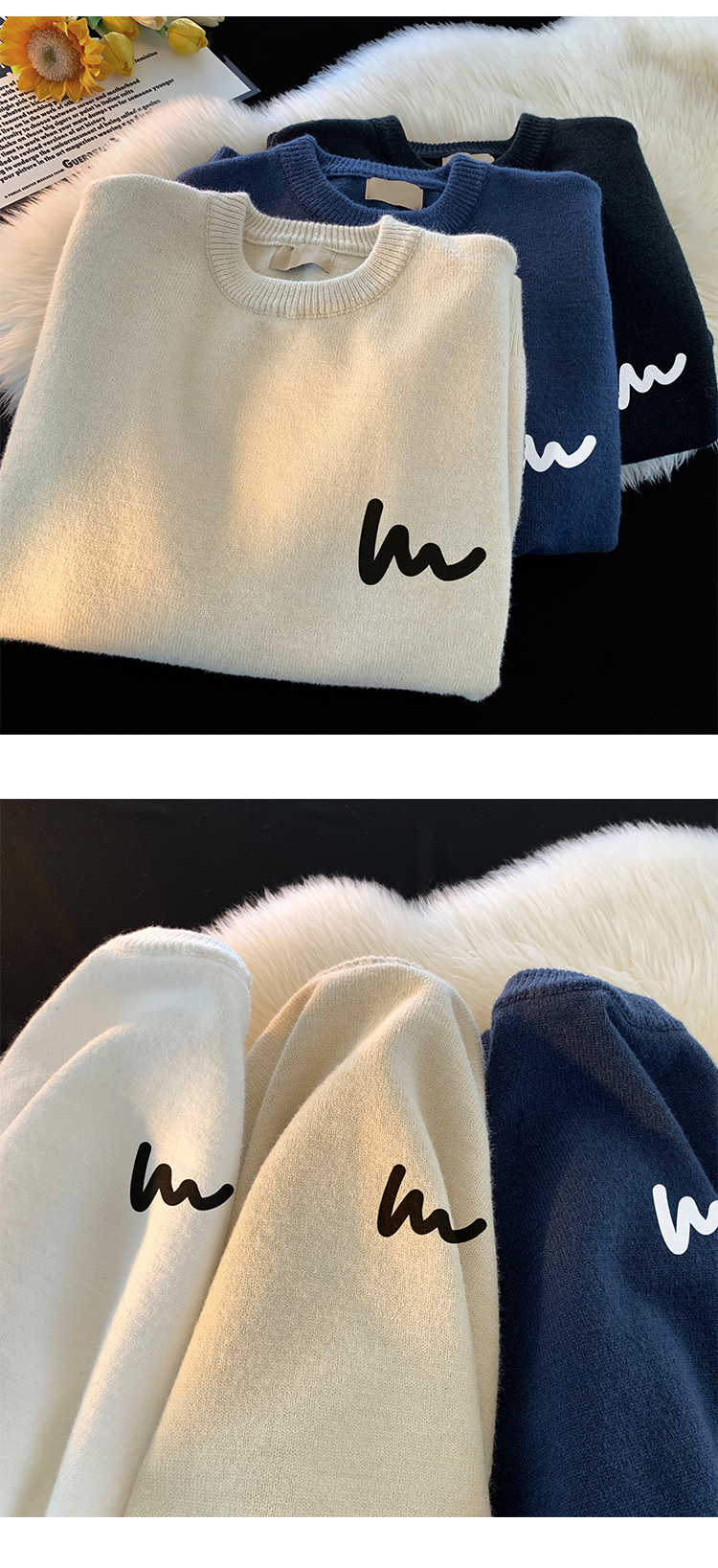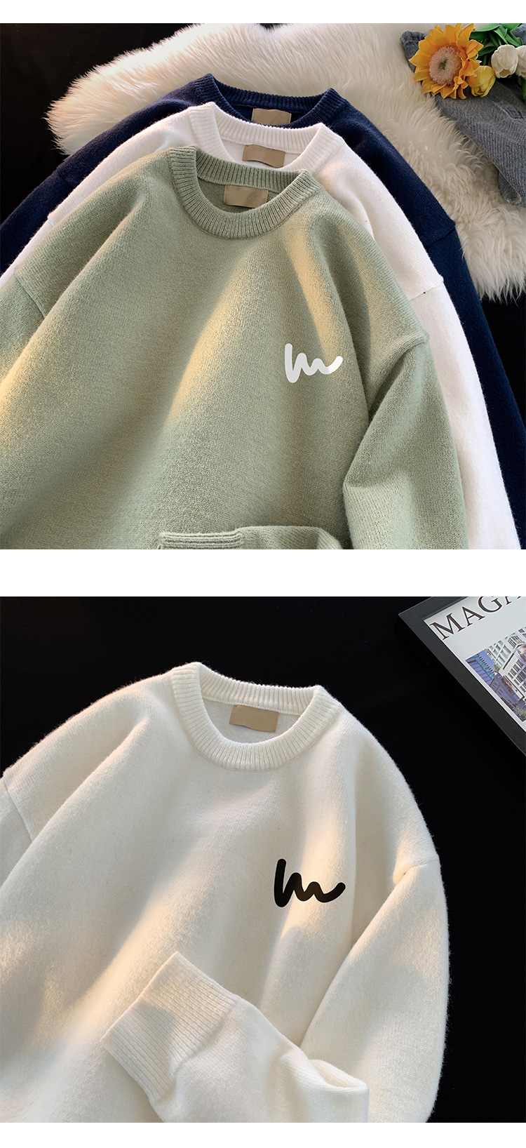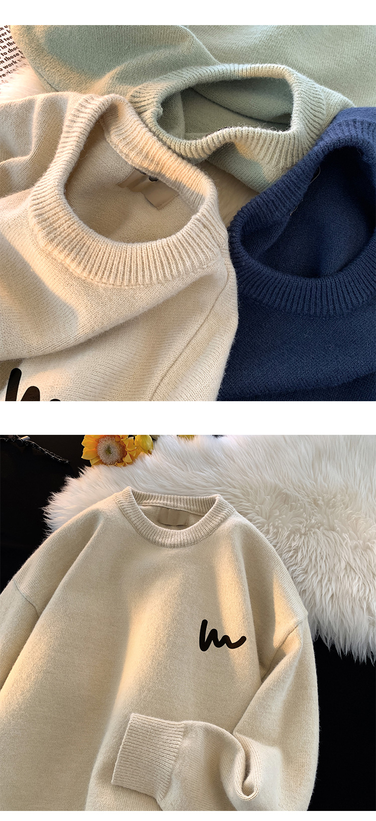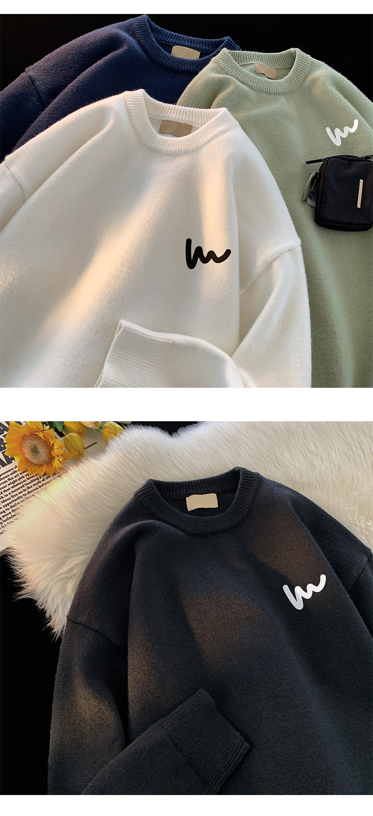 Round neck sweater men's 2023 new autumn and winter warm sweater bottoming shirt boys fashion brand thickened knitted coat