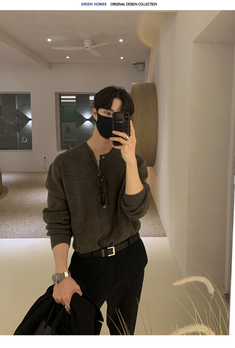 Bishe thin knitted cardigan coat Korean style trendy ins round neck sweater men's casual loose top