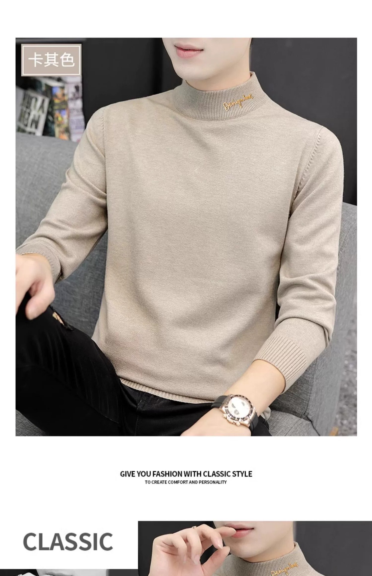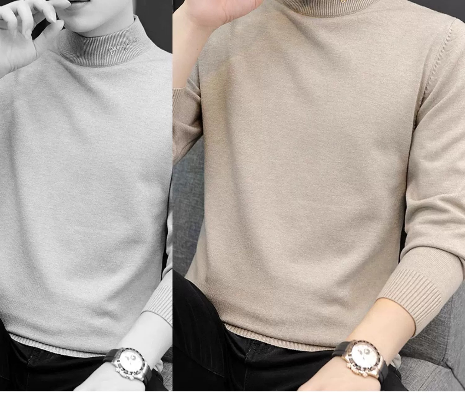 Half turtleneck sweater men's autumn and winter fleece-lined thickened bottoming shirt 2023 New Popular mid collar knitted sweater warm sweater