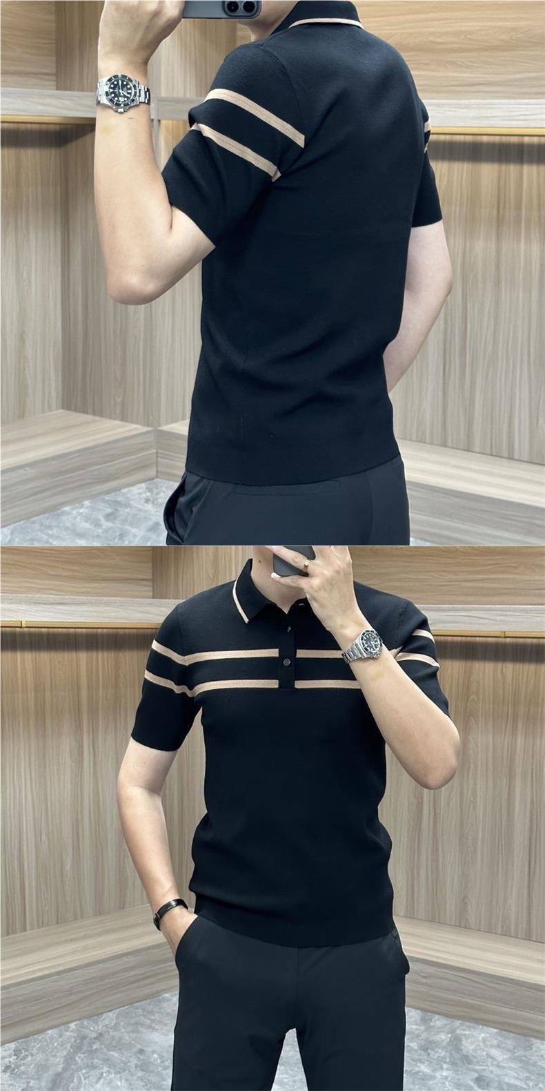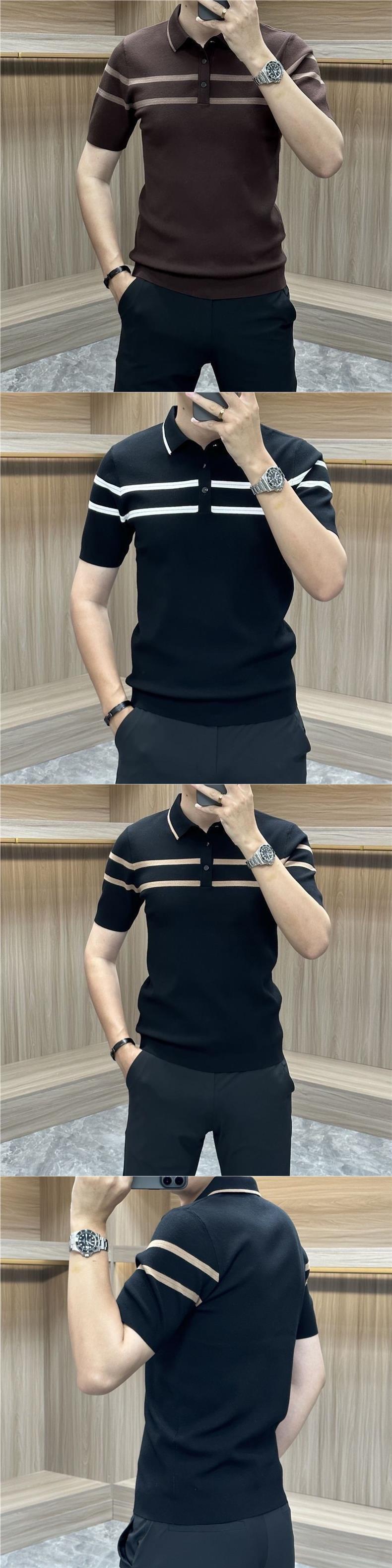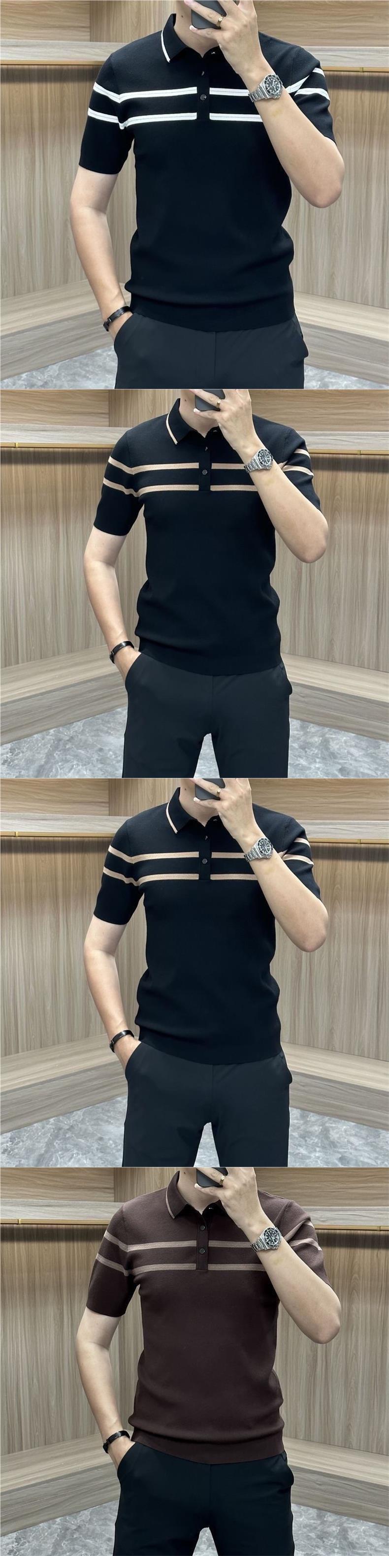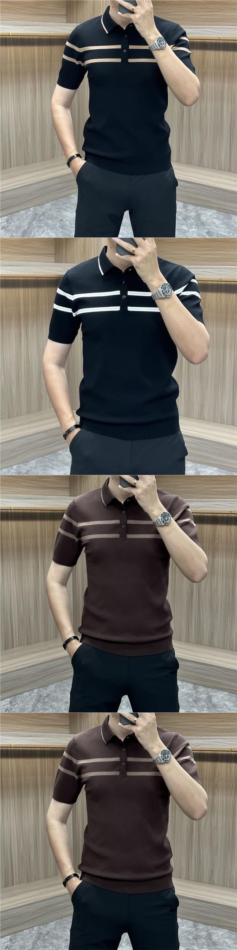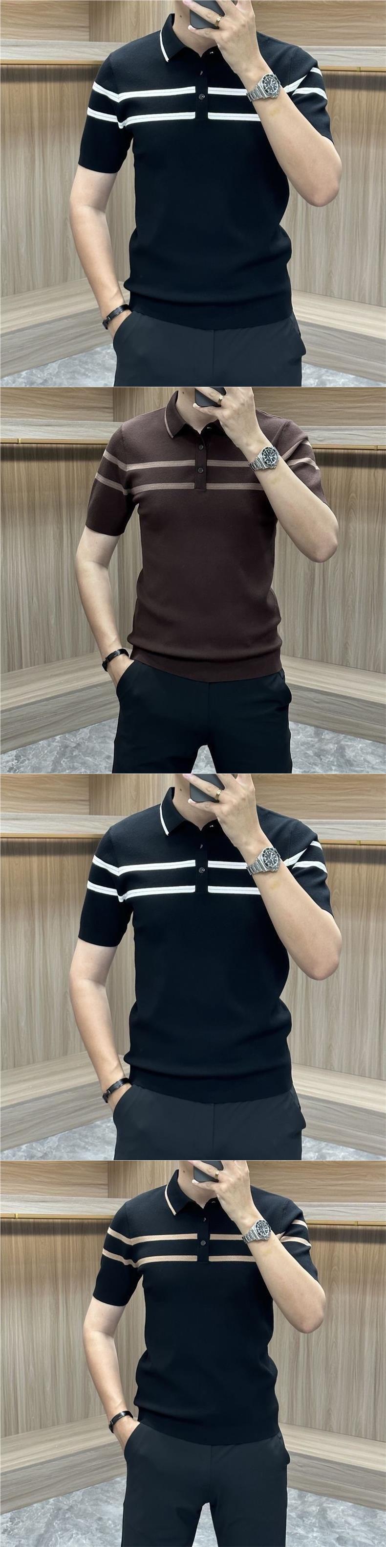 Summer New Men's Short-sleeved Ice Silk Knitwear Fashion Light Luxury Business Casual Comfortable All-match Polo Premium