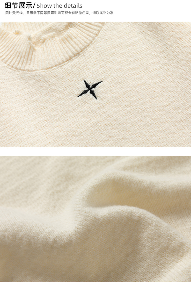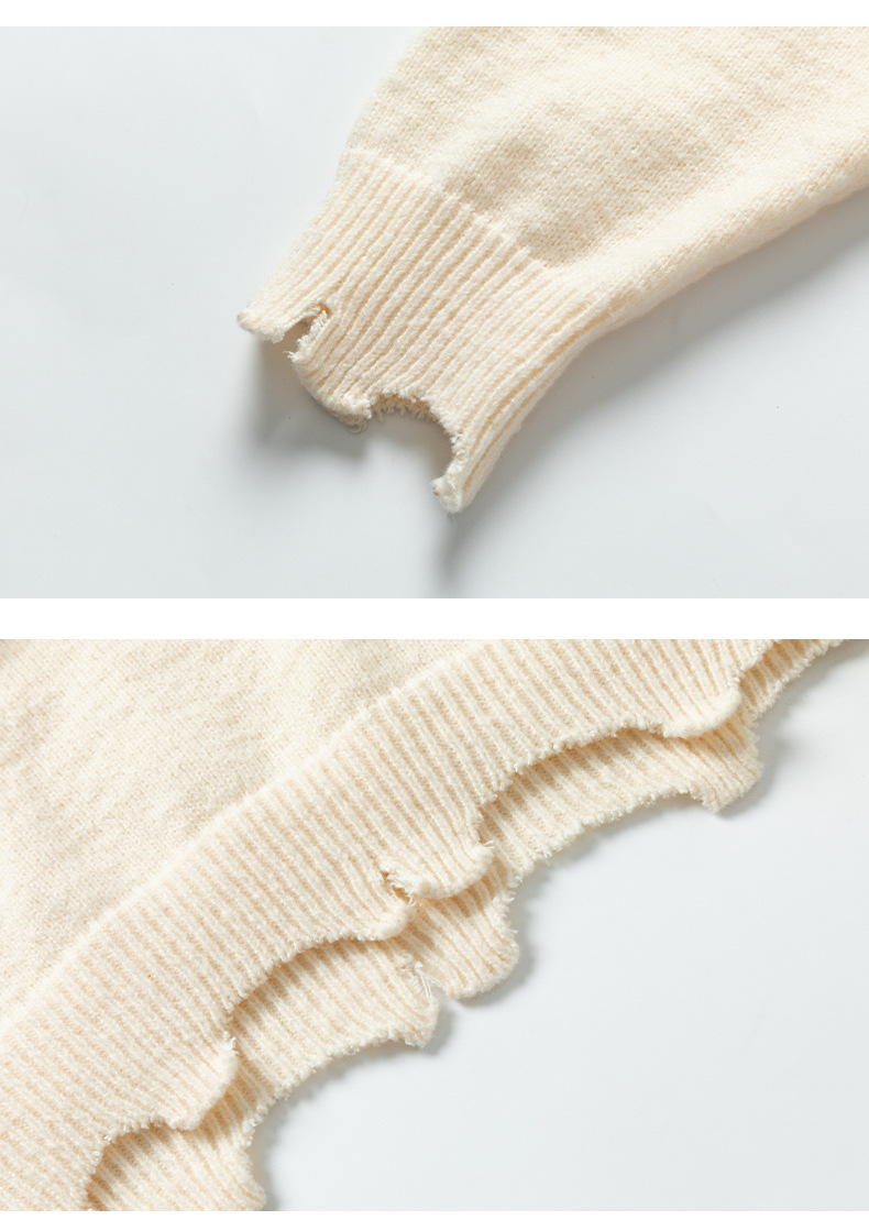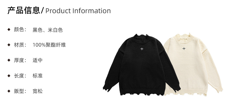 Irregular destruction frayed design sweater for men and women autumn and winter New American embroidery fashion brand loose round neck sweater