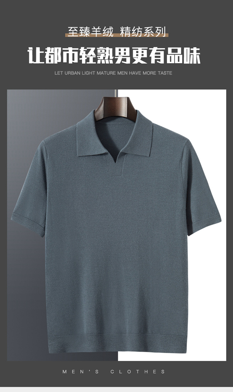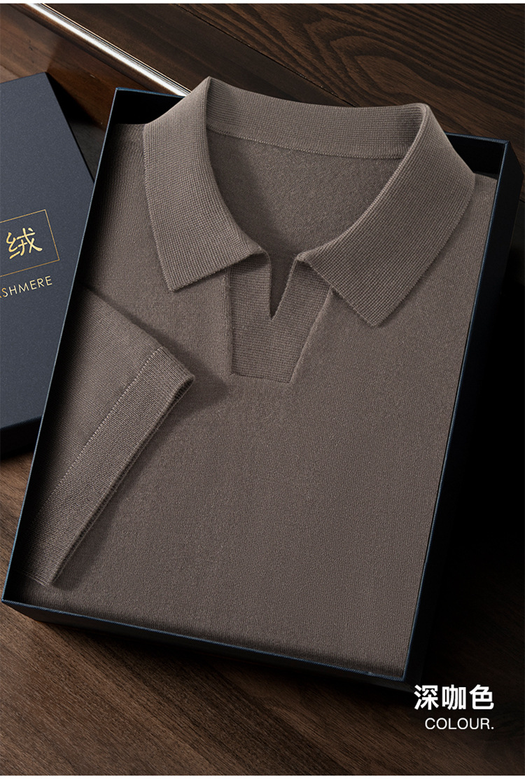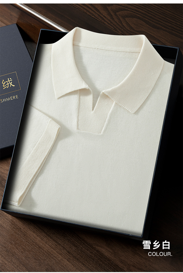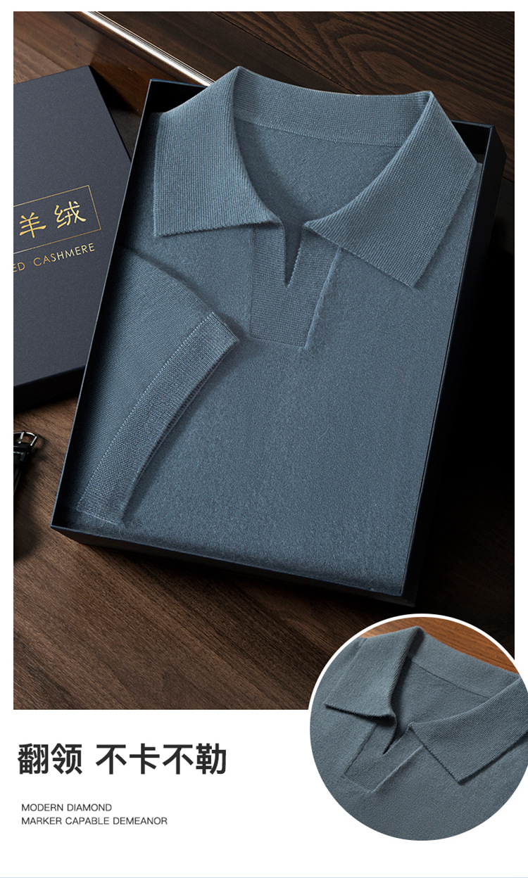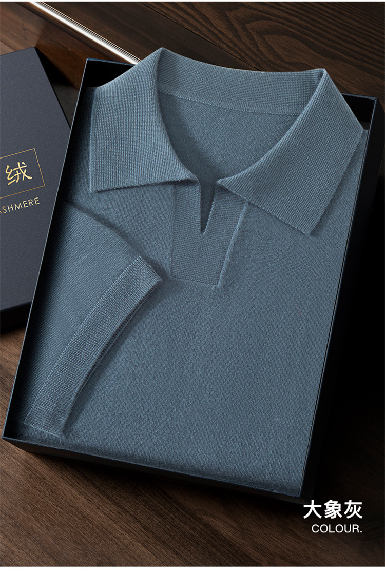 Cashmere half sleeve men's T-shirt 100% pure cashmere 2024 spring polo collar boutique thin knitted short sleeve