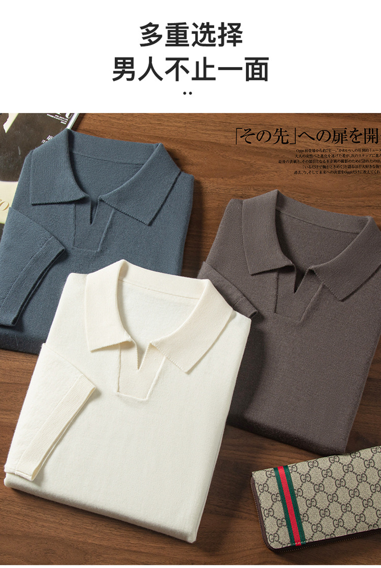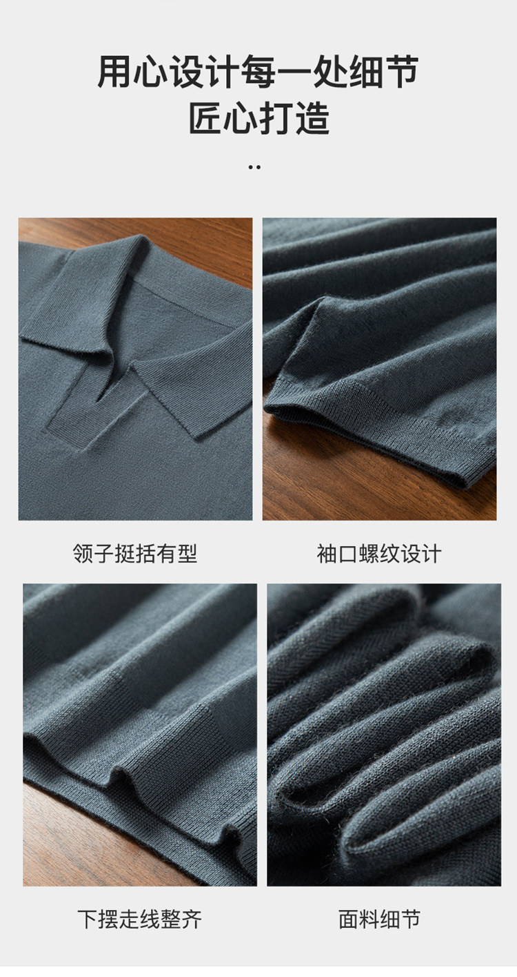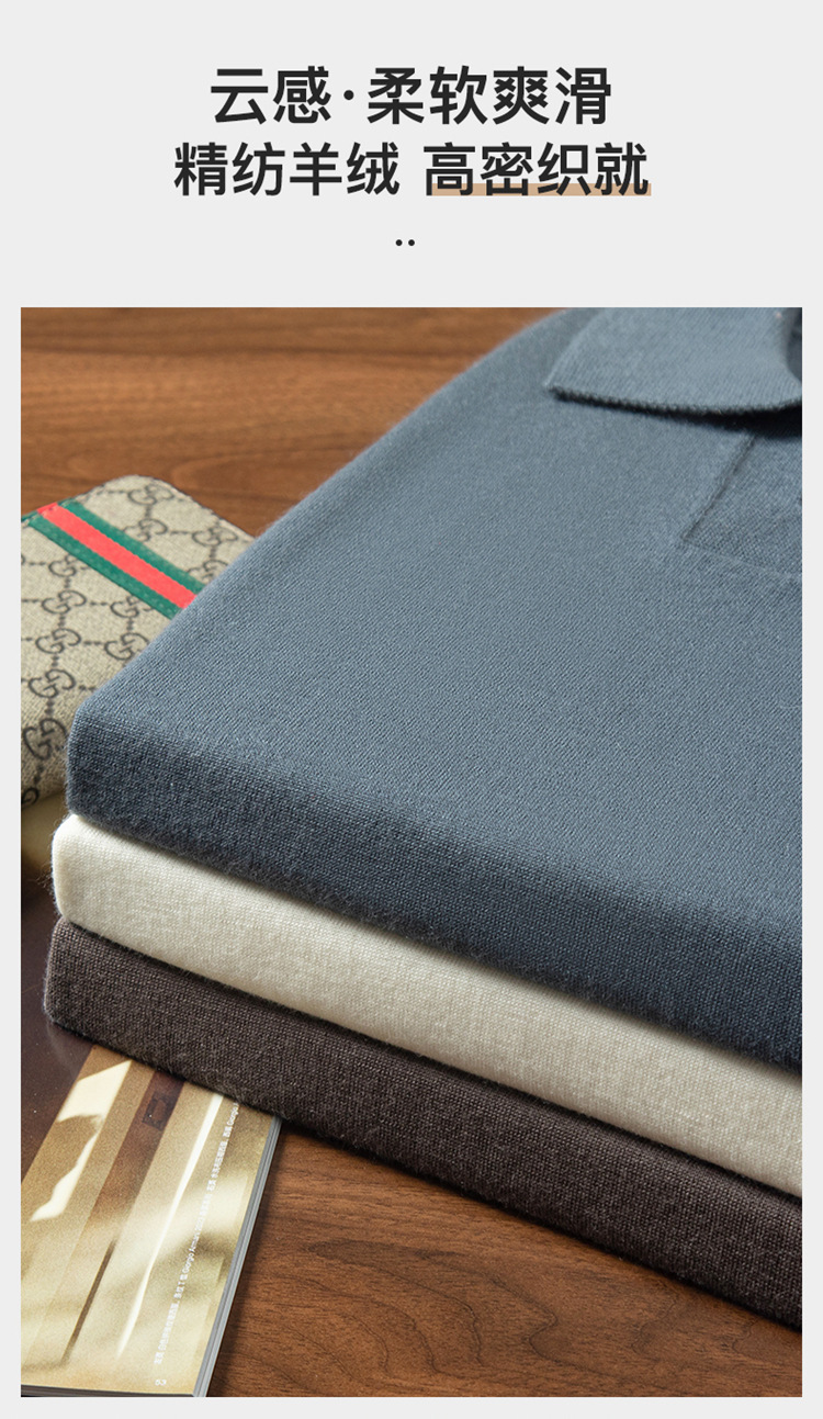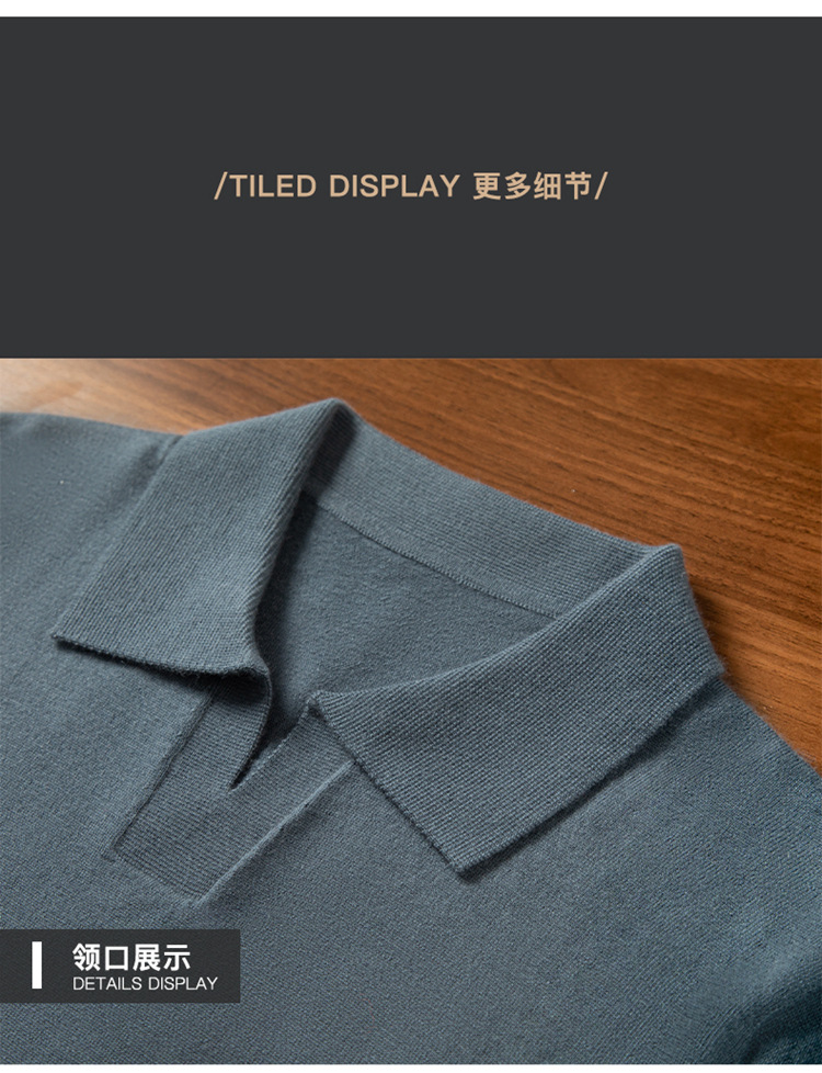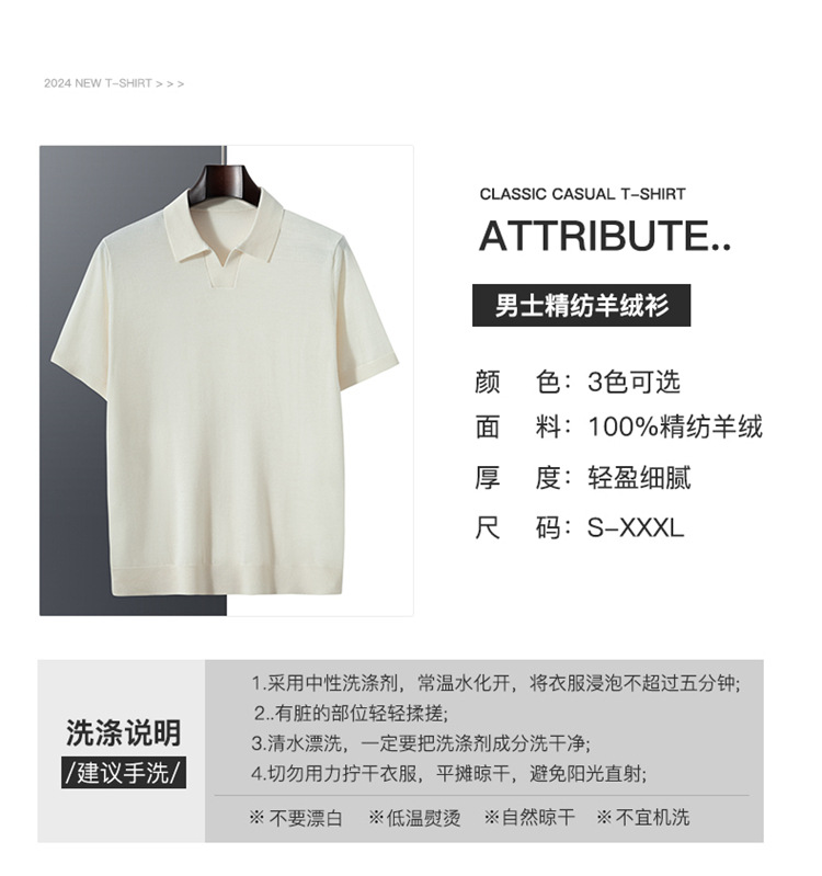 Cashmere half sleeve men's T-shirt 100% pure cashmere 2024 spring polo collar boutique thin knitted short sleeve