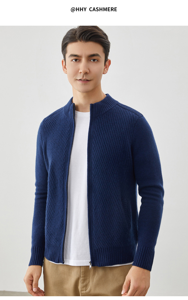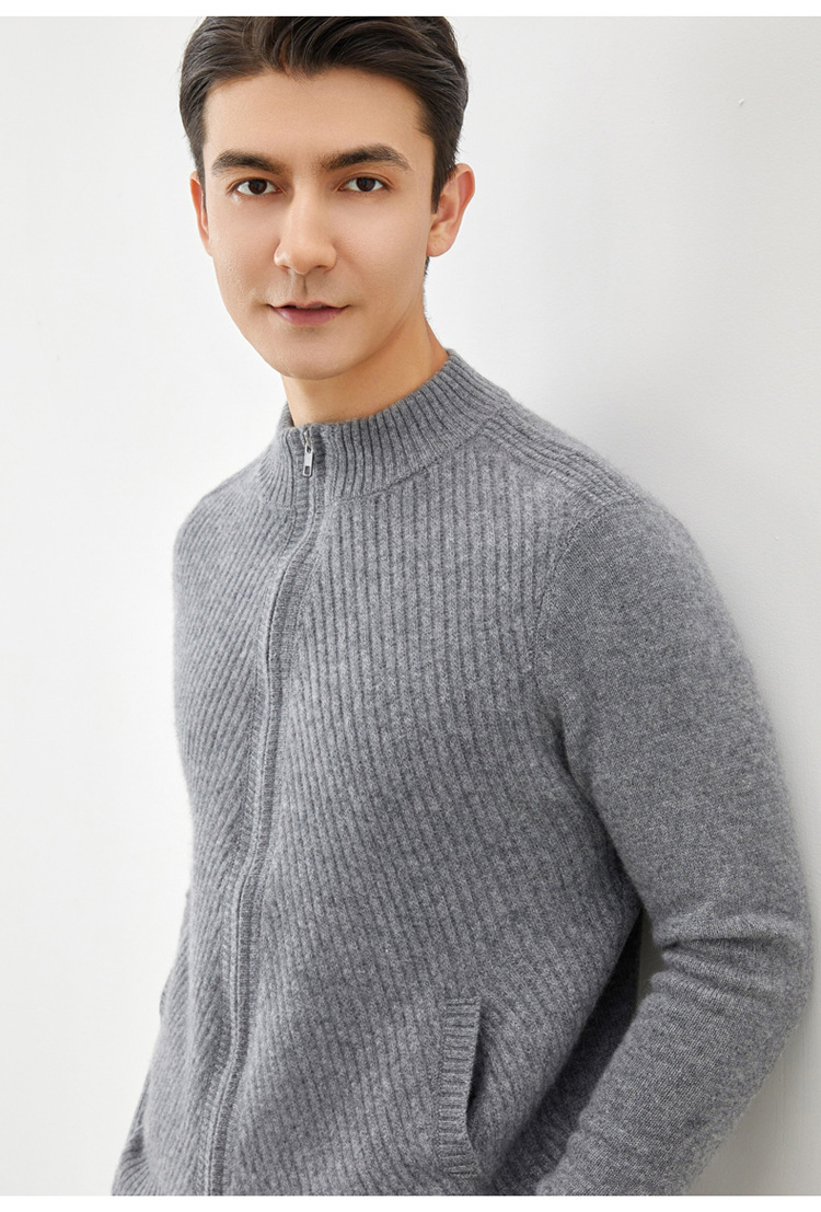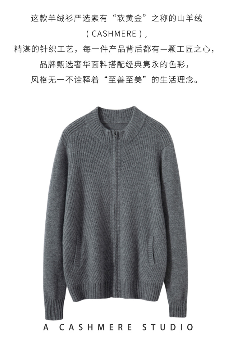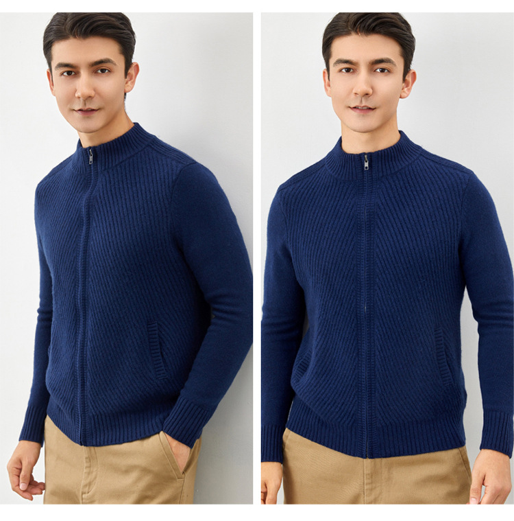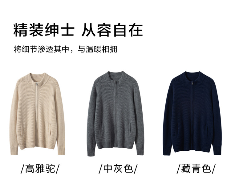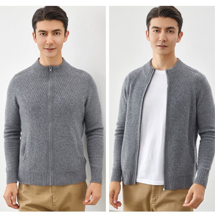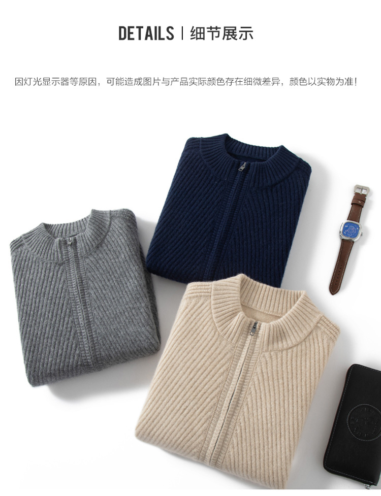 Worsted cashmere sweater autumn and winter new men's zipper cashmere knitted cardigan coat 2023 fashion outerwear sweater