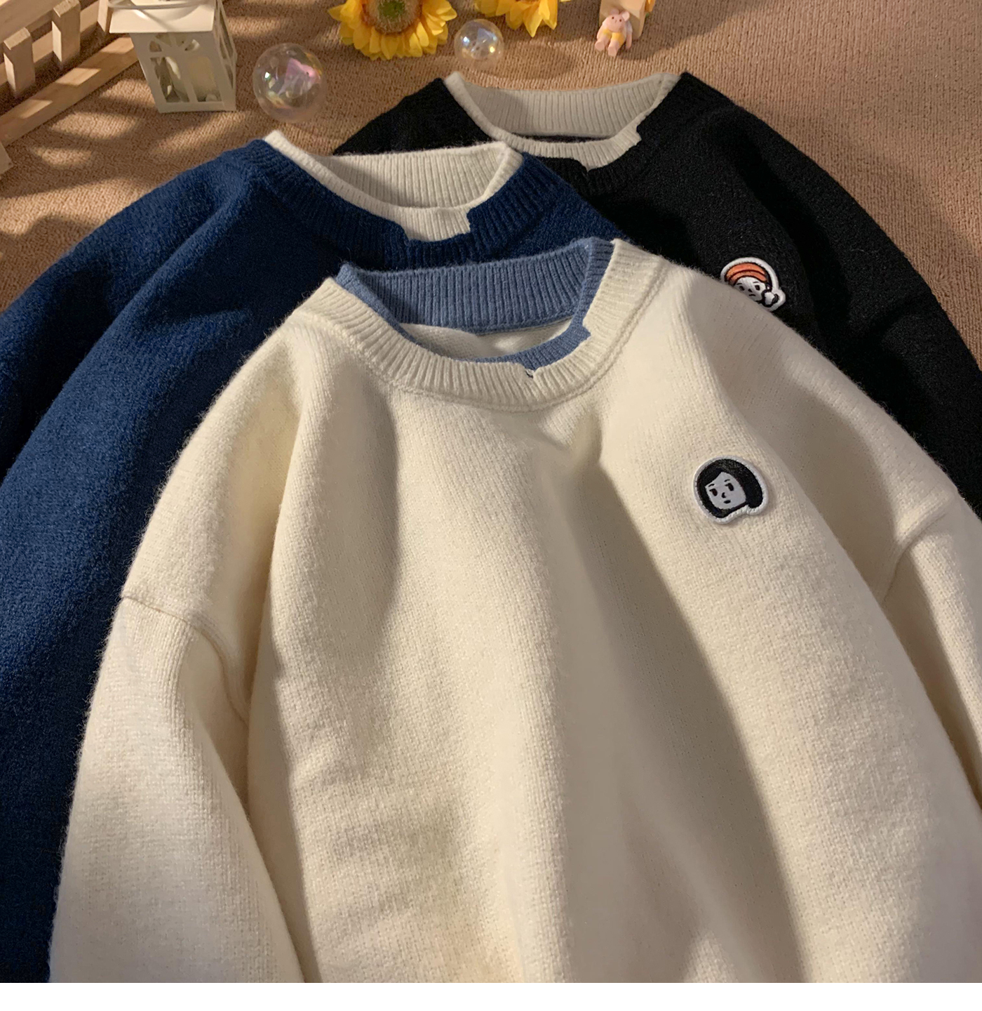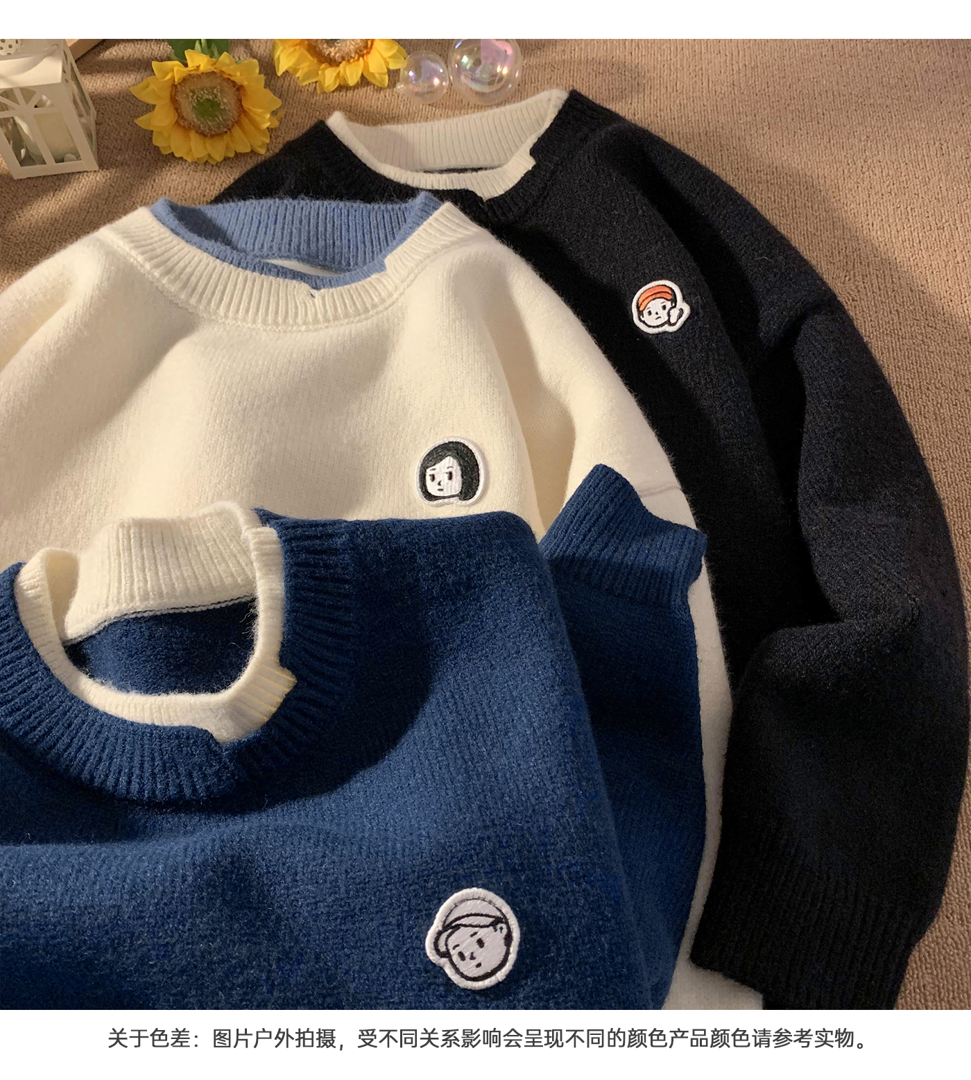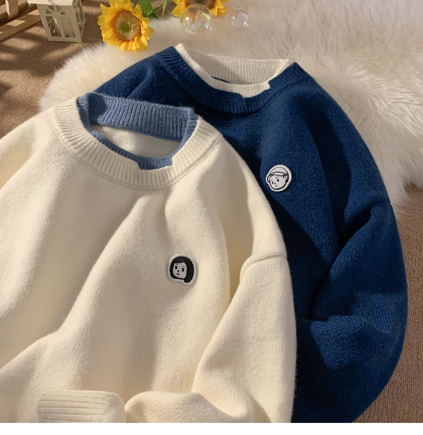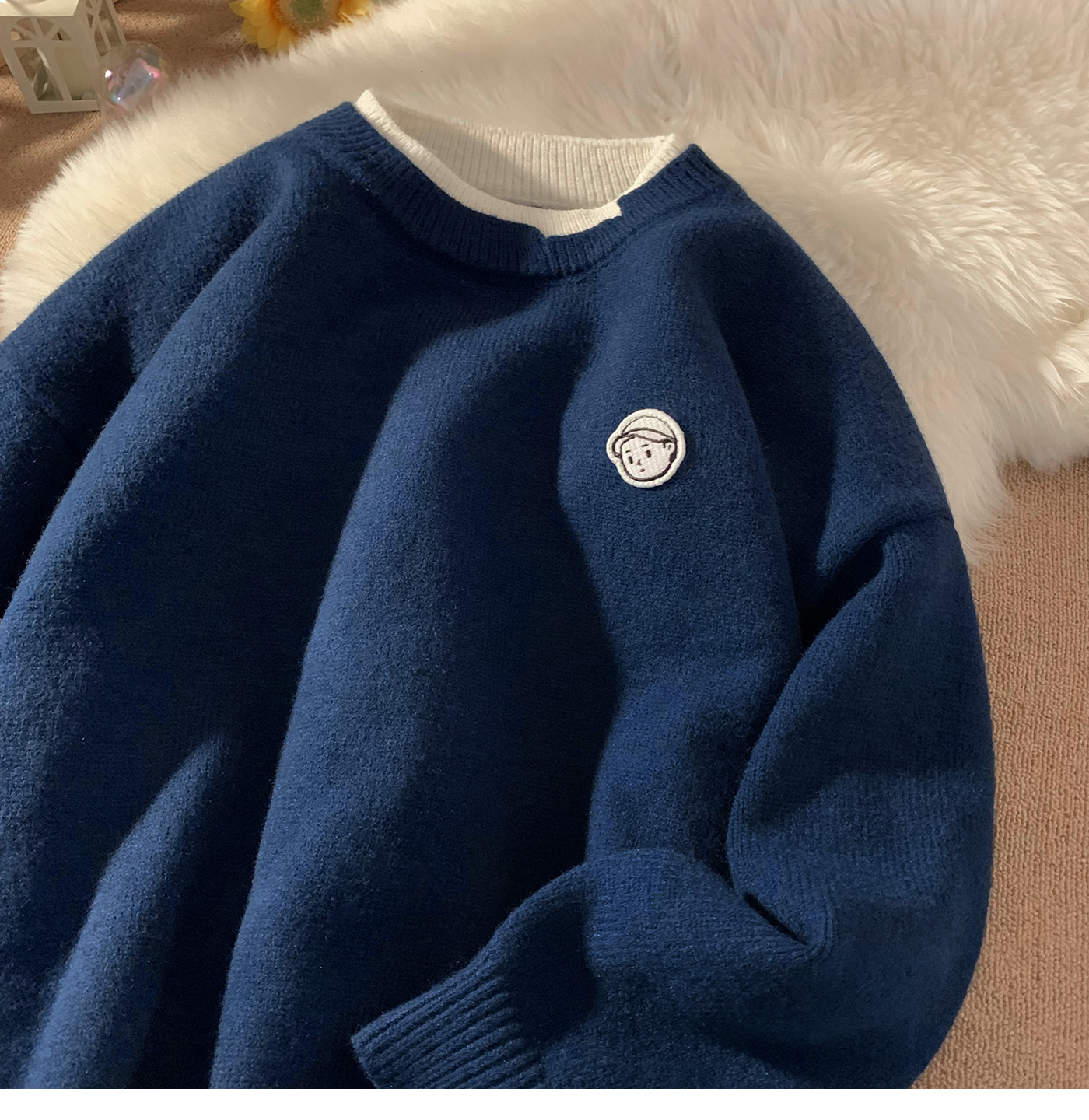 @ Hong Kong style Artistic Men's Japanese style fake two-piece sweater men's autumn and winter round neck sweater winter men's inner sweater