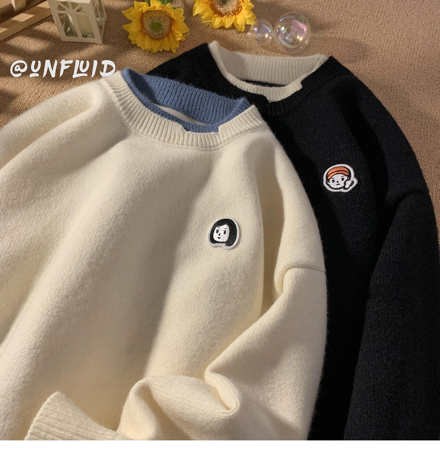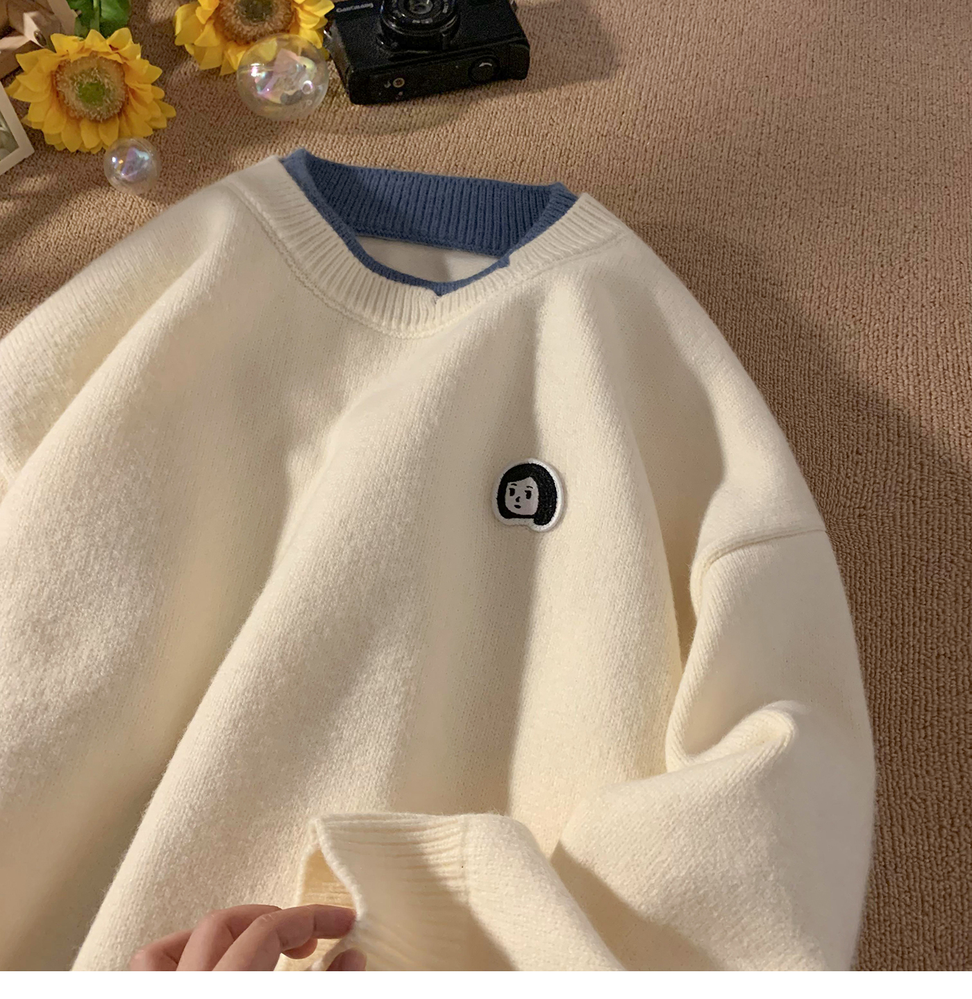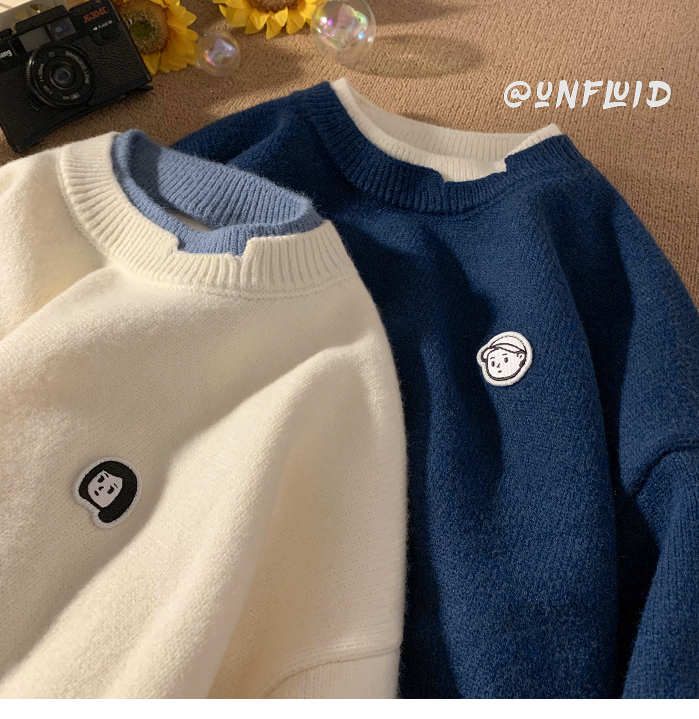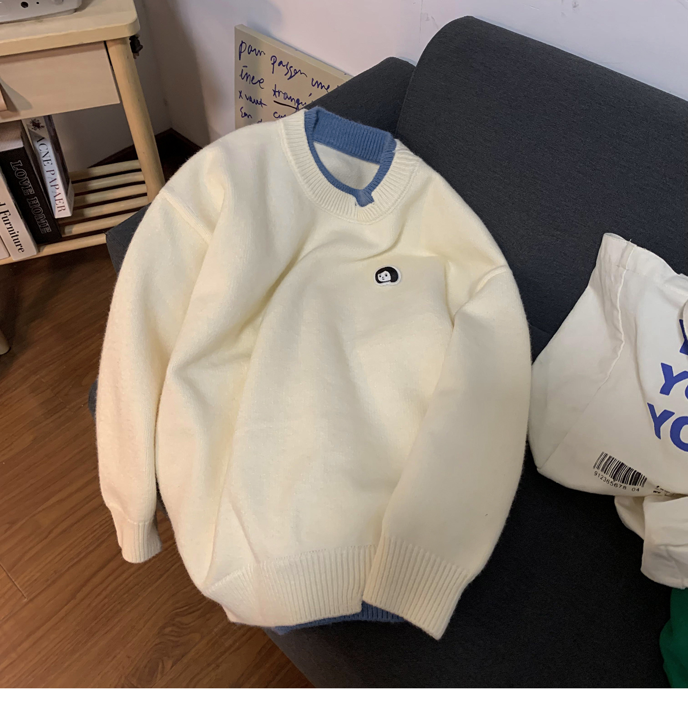 @ Hong Kong style Artistic Men's Japanese style fake two-piece sweater men's autumn and winter round neck sweater winter men's inner sweater