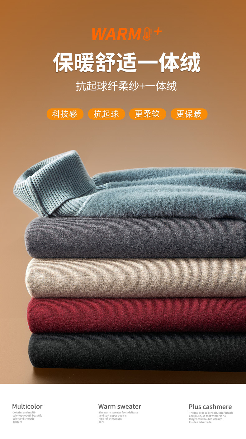 Turtleneck sweater men's autumn and winter mid collar fleece-lined thickened bottoming shirt warm sweater sweater sweater 2023 New