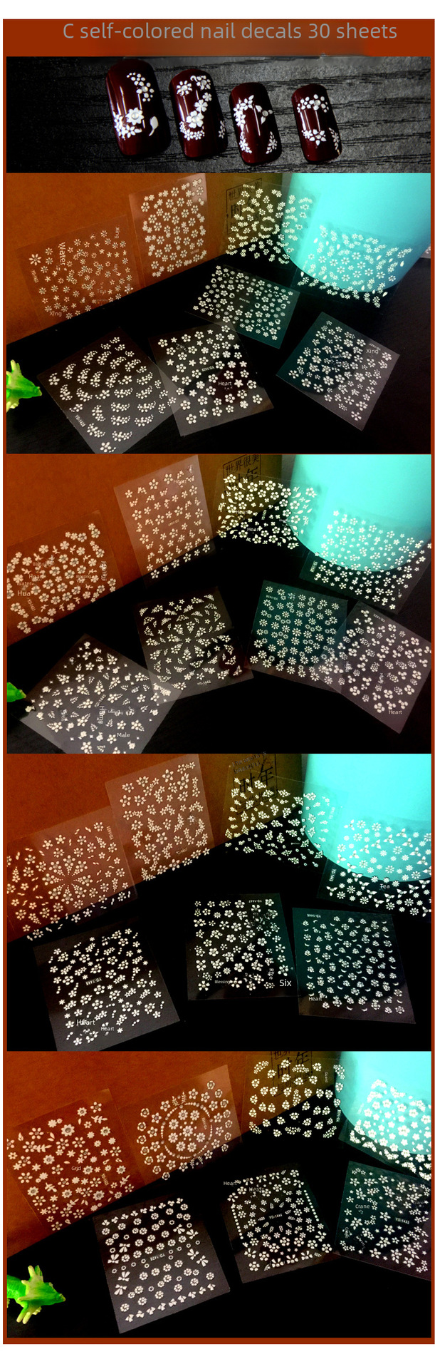 Bulk Purchase:With a bulk purchase of 50 sheets, this nail decal set offers great value for money. It's perfect for nail salons, beauty counters, or those who enjoy doing their nails regularly.