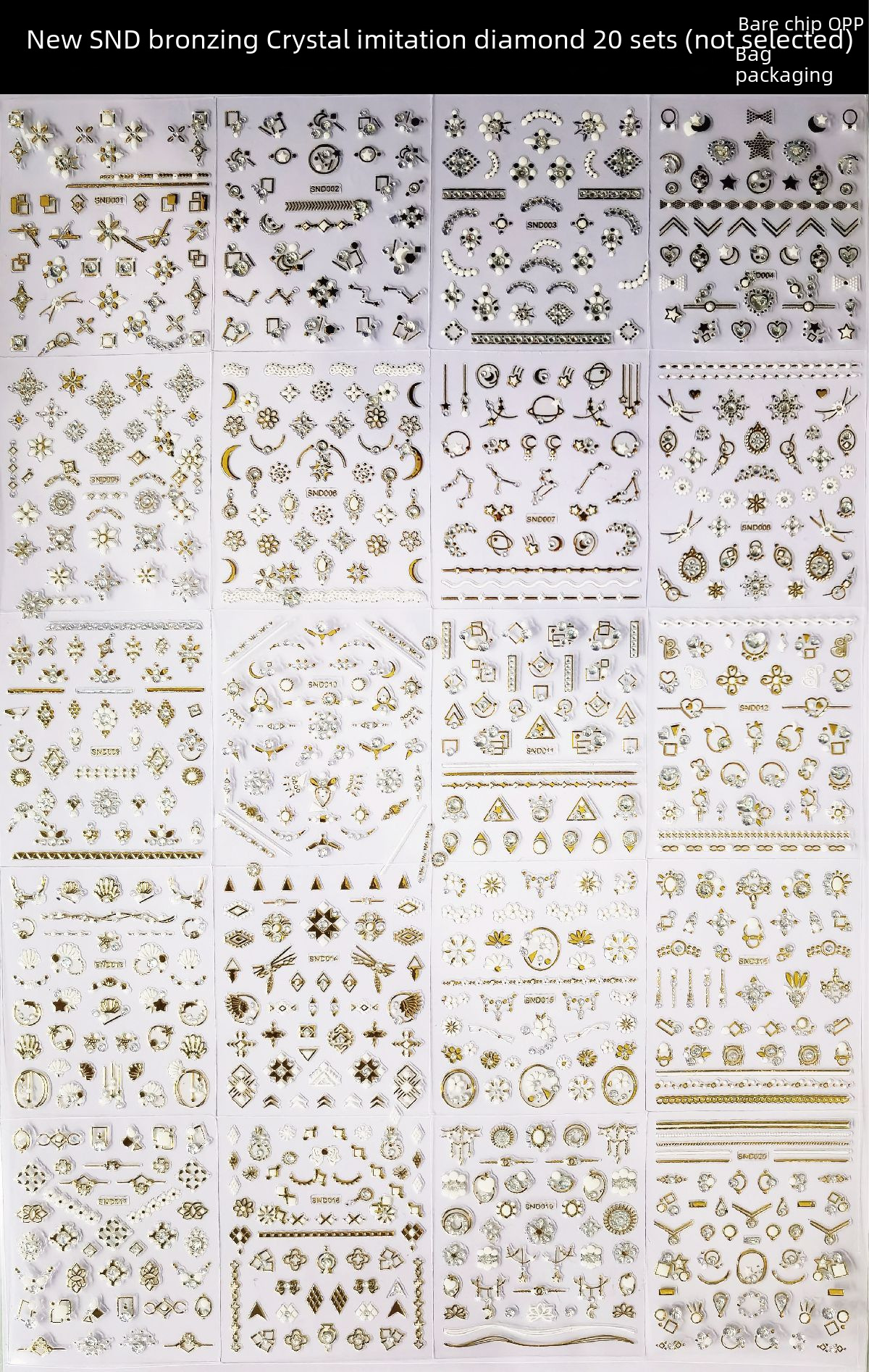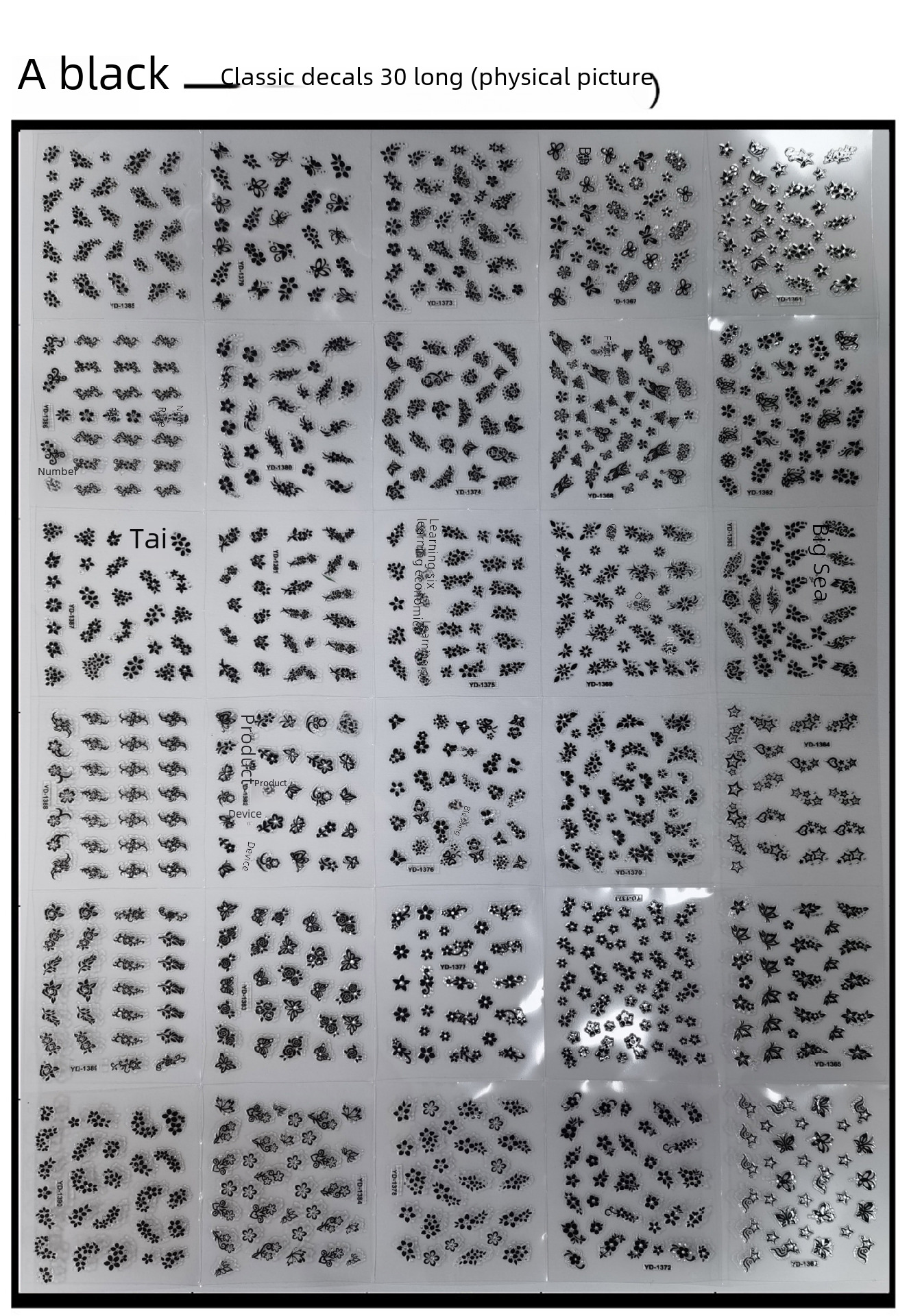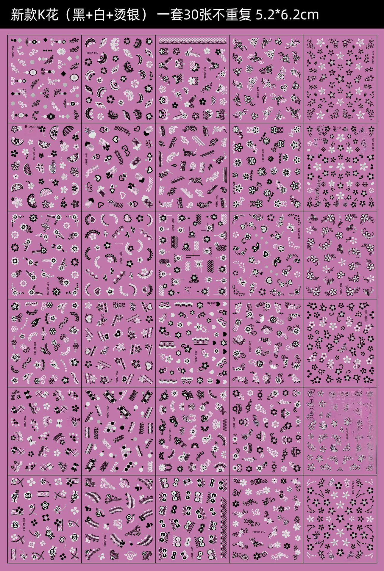 Foreign trade cross-border explosions 3D nail jewelry decals wholesale 30 nail stickers set black and white nail stickers mixed