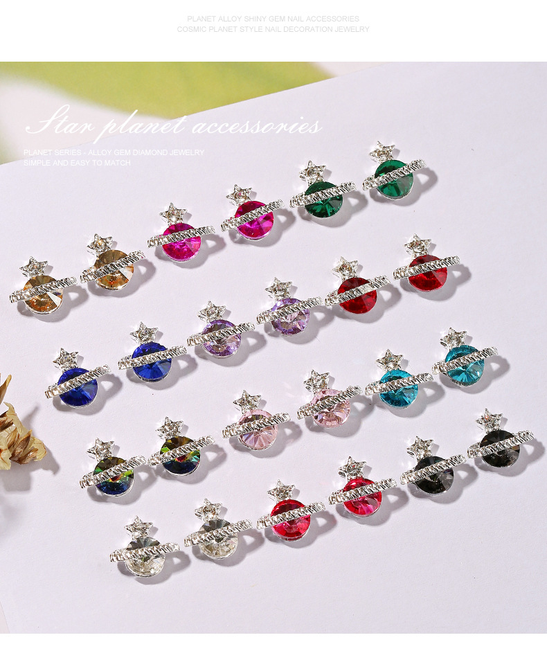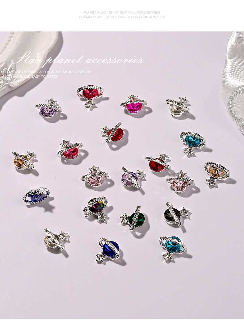 Cross-border hot sale Queen mother planet nail jewelry shiny multi-color light luxury diamond-embedded Saturn nail decoration wholesale
