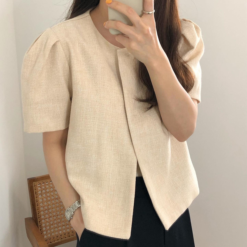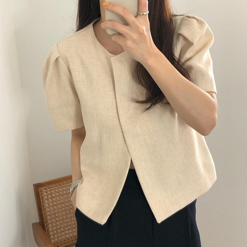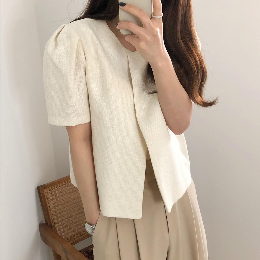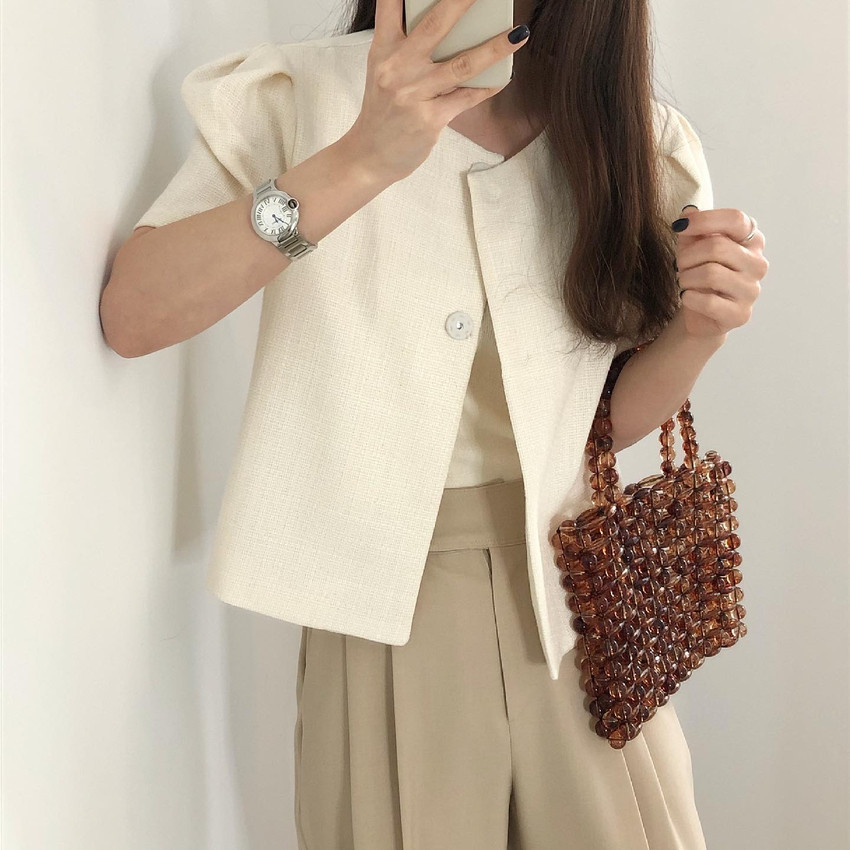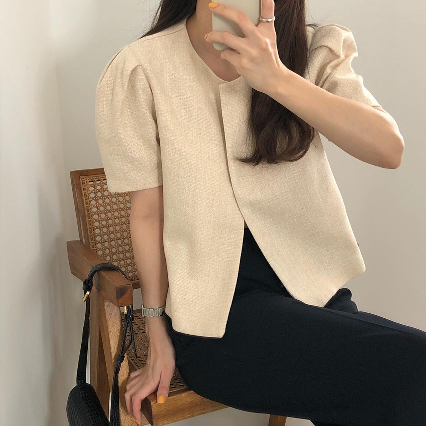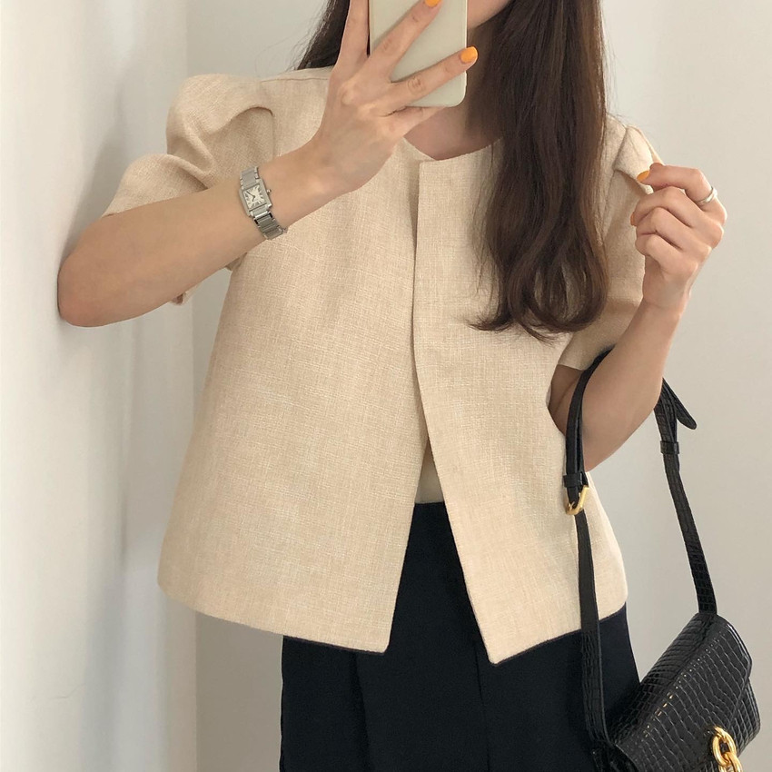 Suit Women's 2024 Summer New Two-button Crewneck Loose Puff Sleeve Cardigan Small Suit Jacket Top