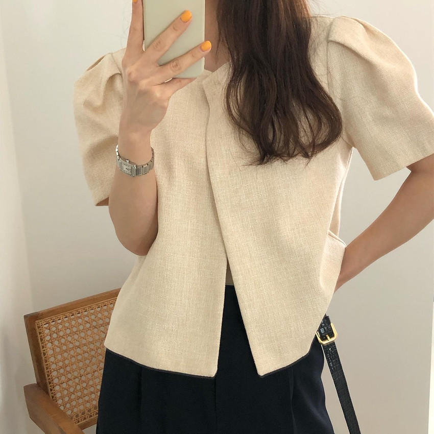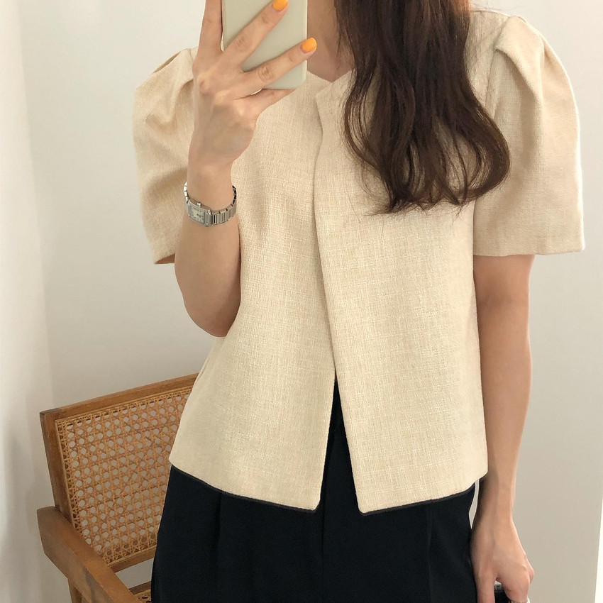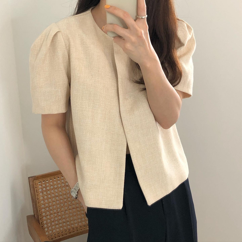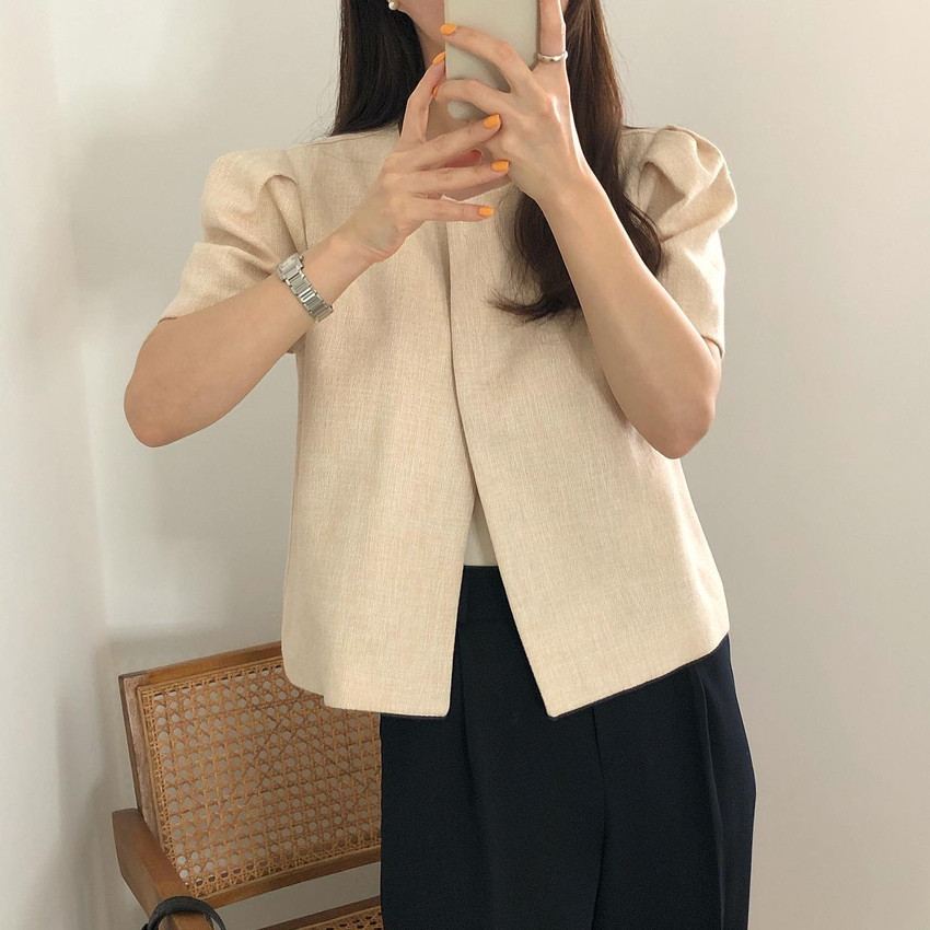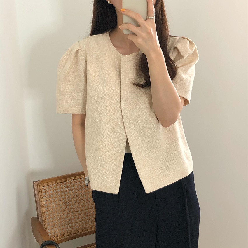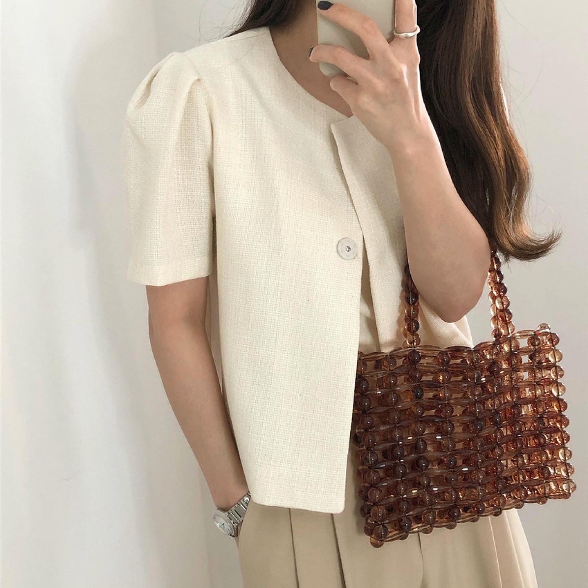 Suit Women's 2024 Summer New Two-button Crewneck Loose Puff Sleeve Cardigan Small Suit Jacket Top